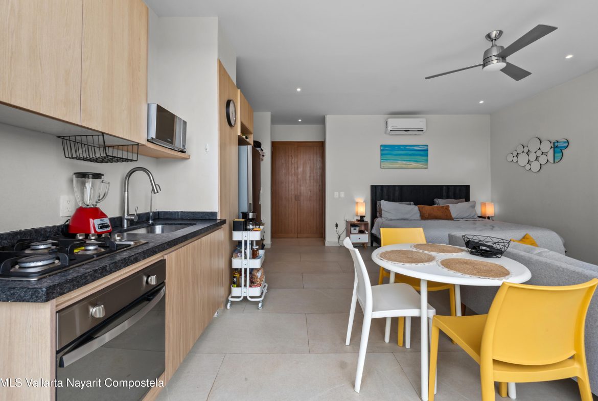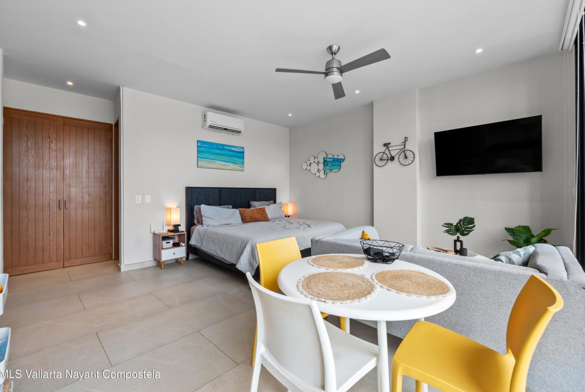 Experience boutique coastal living at Makare Bucerias, a luxury development just steps from the beach and the Golden Zone. This stylish studio features a modern kitchen, in-suite laundry, fast Wi-Fi, and smart TV. Residents enjoy a spectacular rooftop infinity pool overlooking the bay, sun deck, and 24/7 security. With world-class dining, vibrant markets, and beachside cafes all within walking distance, Makare blends modern comfort with the relaxed charm of Bucerias, perfect for investment, vacation, or your own seaside retreat.