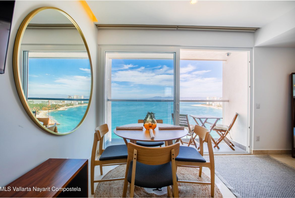 Studio with a stunning Ocean view on the 20th floor! Prepare yourself to invest in one of the best units to generate rental income while you reserve the dates that you’d like to come to PV. This unit is located in Harbor 171 north tower in the hotel zone of Vallarta. This beachfront complex is the newest beachfront addition in PV!Location and ammenities will make this unit to be rented most of the year. It offers a rooftop pool and gym with amazing views of the ocean and the whole bay, on the ground floor level a lobby and 3 more pools, one of them is a lap pool and security 24/7