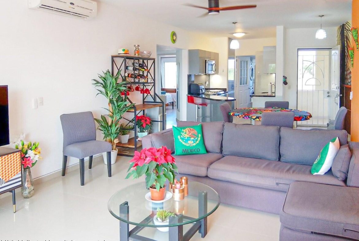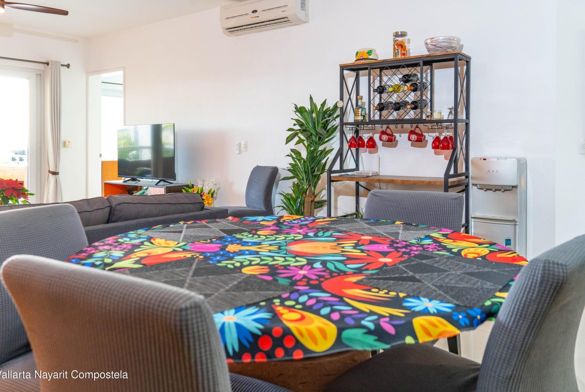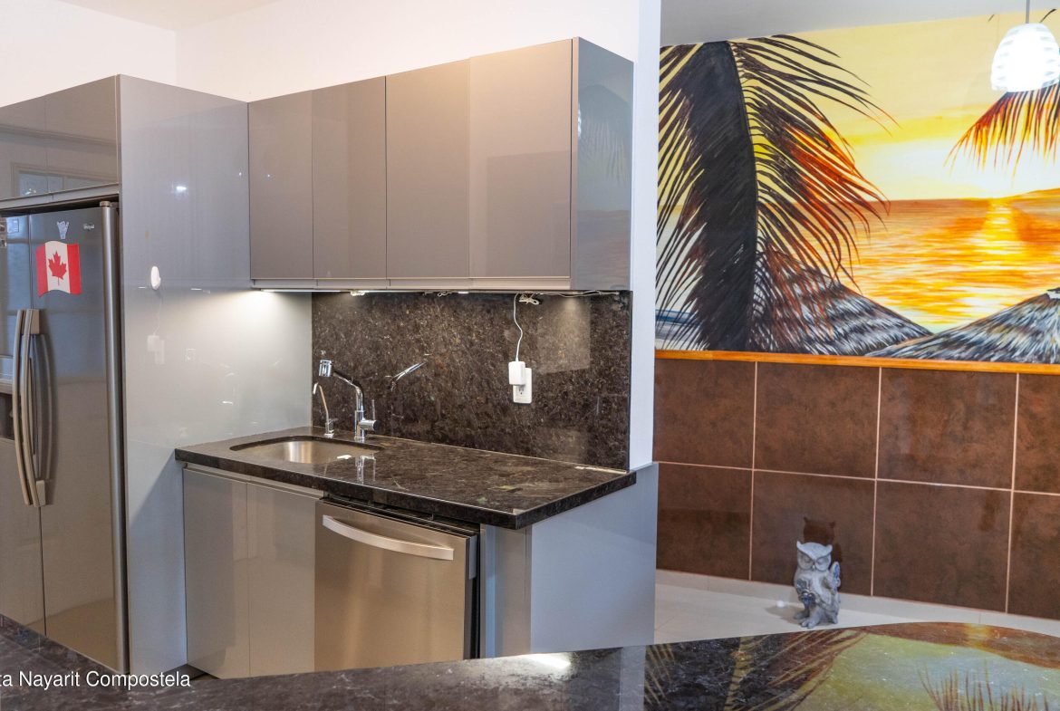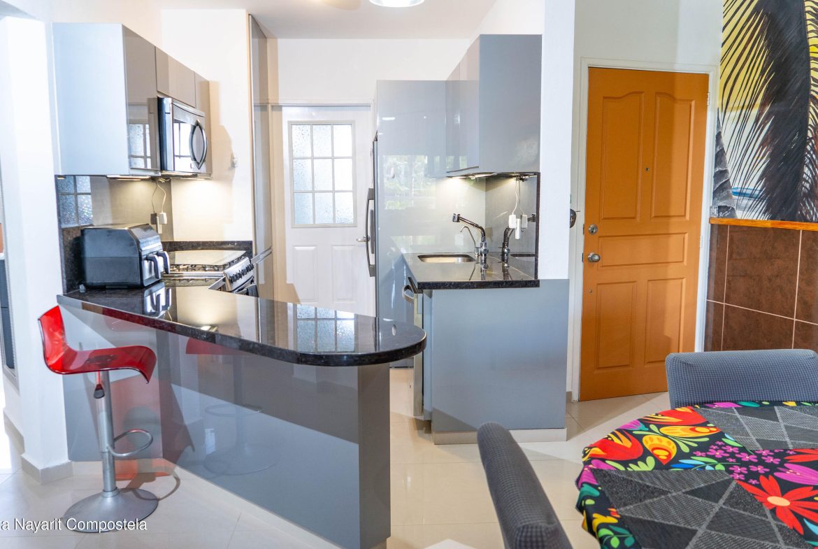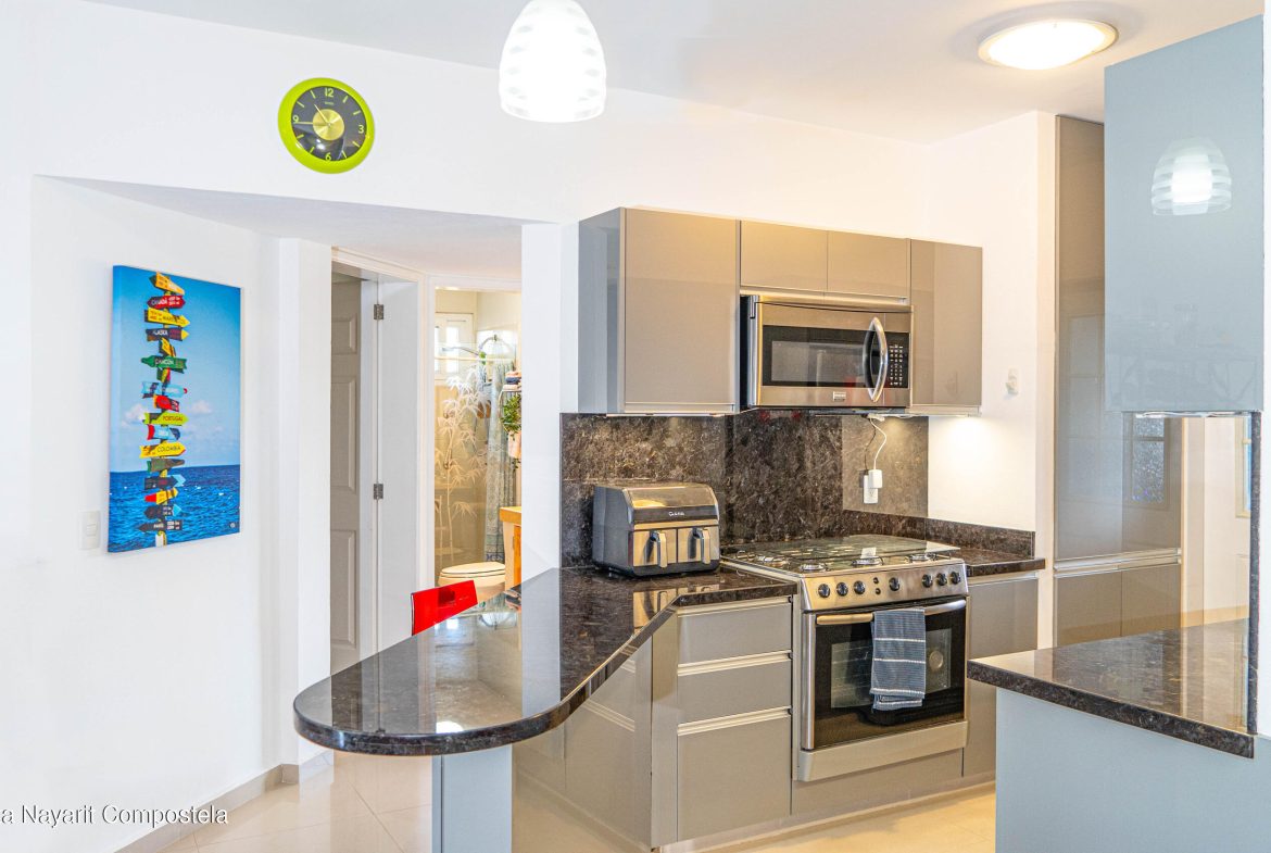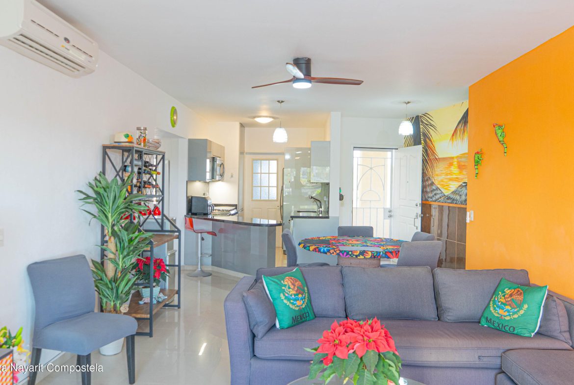 Cozy and fully furnished, this condominium in Flamingos Club Residencial offers a lifestyle within a safe and pleasant community, in one of the most up-and-coming and prestigious areas of Bucerias. Its location makes this condominium a great option, as it has easy access to main roads and is close to various important services, such as supermarkets, banks, hospitals, restaurants, and the vibrant beach life that Bucerias and its surroundings offer. The condominium is located on the second floor and features 3 bedrooms, 2 bathrooms, and spacious, functional, and comfortable living areas. It includes a fully equipped kitchen with granite countertops, air conditioning, and ceiling fans, as well as a laundry room with a gas washer and dryer, a terrace with a beautiful and
