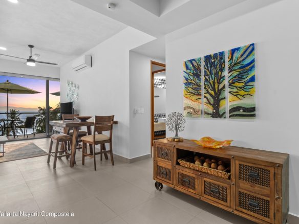condominio de 1 rec 1 bano totalmente amueblado, estacionamiento techado y una bodega, acceso a la playa de hotel paradise village, alberca comun y vista a la marina privada de paradise village, terraza techada con facil acceso a la alberca en planta baja.inmejorable ubicacion cerca de tiendas y hospital.