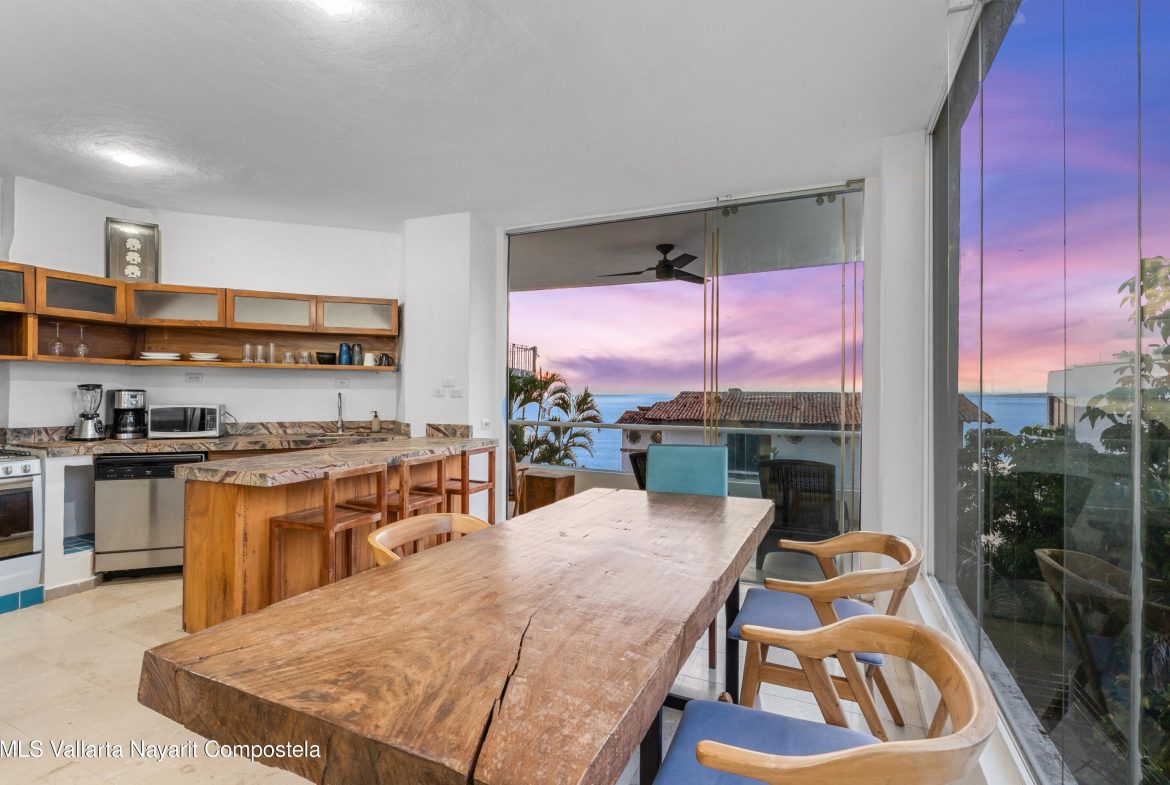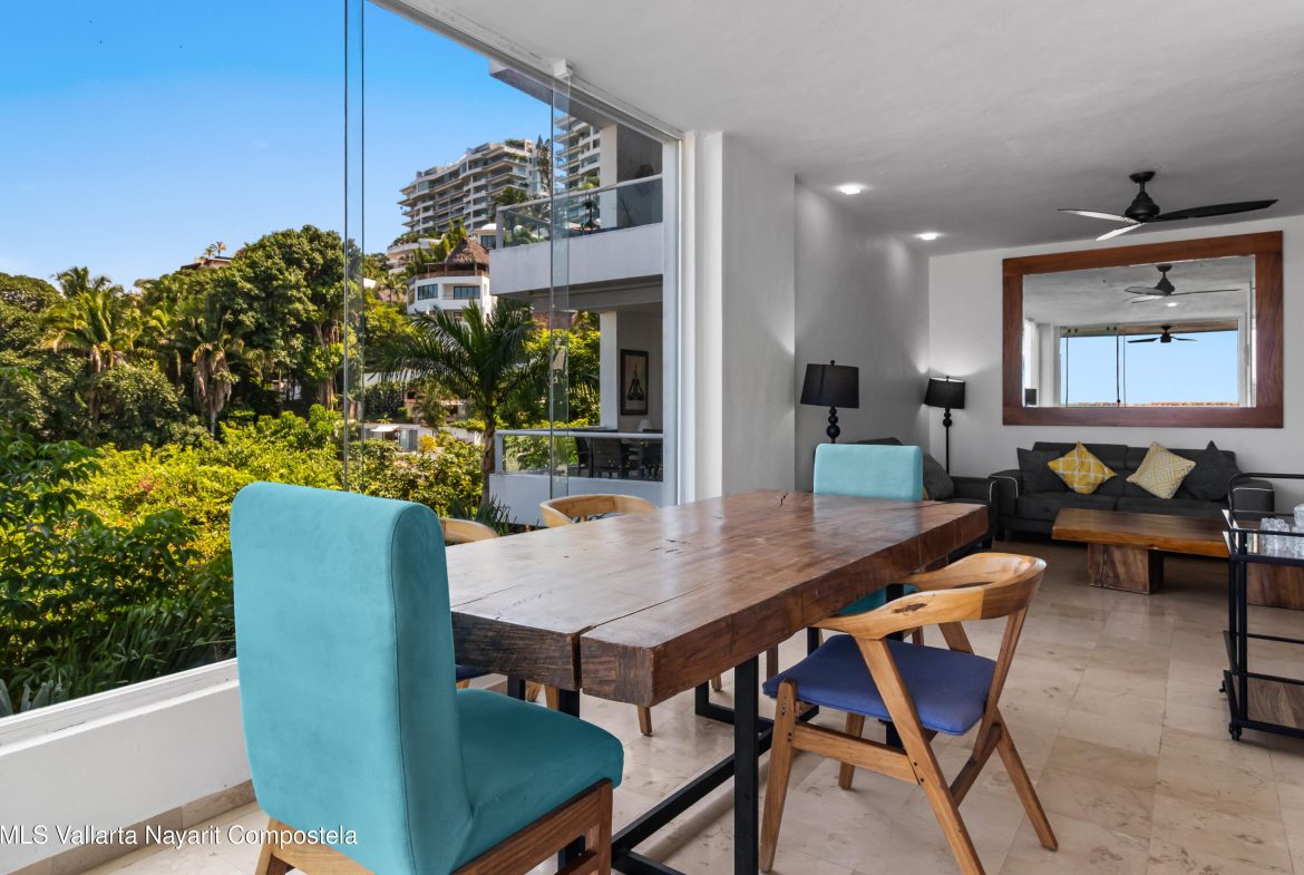 Spanish:Unidad 203 – Este espectacular condominio de 2 recamaras y 2 banos en Las Penas de Teresa ofrece vistas impresionantes y un amplio patio con un diseno encantador. Ubicado en la exclusiva zona de Amapas, combina privacidad, confort y el autentico estilo de vida de Puerto Vallarta.English:Experience the beauty of Puerto Vallarta from this stunning 2-bedroom, 2-bathroom condo at Las Penas de Teresa. Nestled in the exclusive Amapas hillside, it offers tranquility and easy access to the Romantic Zone. The highlight is a spacious patio where the Pacific sparkles beyond Vallarta’s iconic red-tile rooftops–your postcard view, every day.