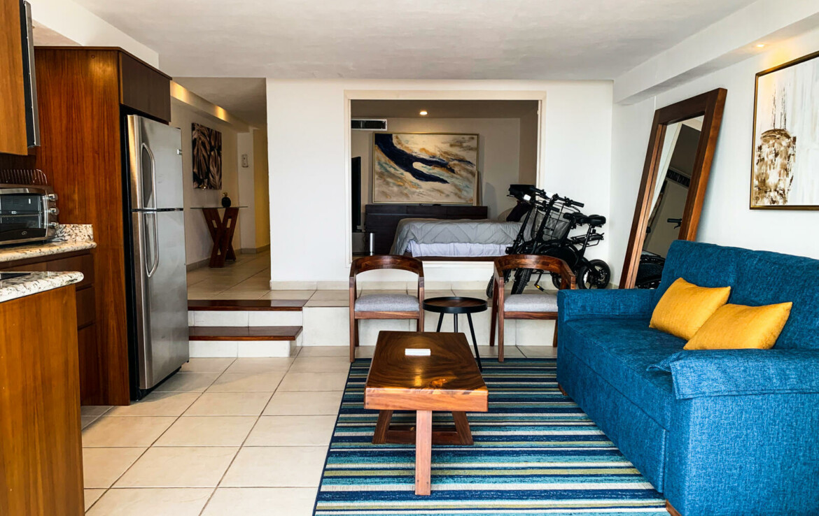 The view from this Torre Condomar condo in Puerto Vallarta, Mexico’s famous Hotel Zone could be yours to behold. Relax on your balcony while taking in where the sparkling waters of Banderas Bay and the silhouette of the Sierra Madre Mountains meet a bright blue sky. Whether you have the morning sea breeze to greet you, or the glowing rays of sunset to send you into an exciting evening, this spectacular view promises the magic memories of a lifetime. High-powered air conditioning for a breezy atmosphere adjustable to your liking and high-speed fibre optic internet, HD television, and local cable TV to keep you connected.