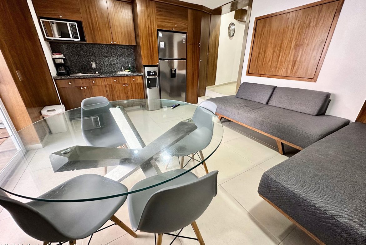 Disfruta del estilo de vida en la playa en su maxima expresion con este impresionante condominio de 2 habitaciones, que ofrece vistas panoramicas a la bahia. Imagina pasar tus tardes en la terraza, viendo como el sol se tine de colores vibrantes, o admirando las luces de la ciudad al caer la noche. Este moderno y completamente amueblado condominio esta ubicado en una zona privilegiada de la Zona Hotelera Norte, cerca de restaurantes exclusivos como Campomar, La Vaca Argentina y Food Park, asi como de tiendas de lujo como La Isla Shopping Village, Costco, Walmart y Galerias. Es el lugar perfecto para aquellos que buscan un estilo de vida relajado y contemporaneo, que combine la comodidad del hogar con la belleza unica del oceano.