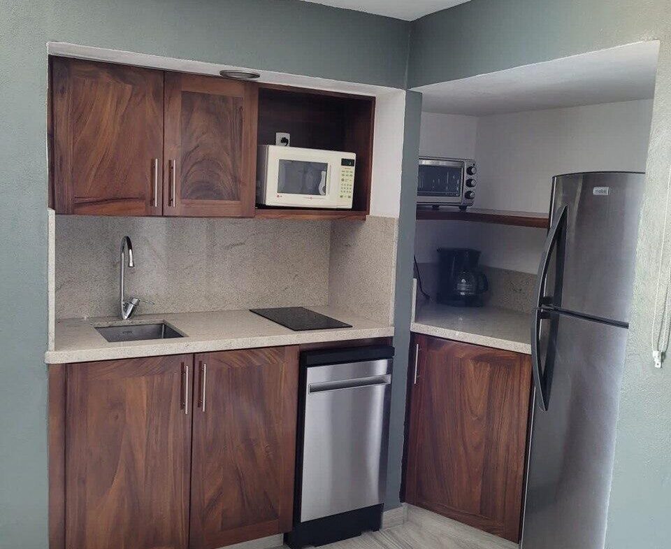 Beautiful and affordable 1BR/1 BTH Condo in the Hotel Zone of Puerto Vallarta. Very near to the beach and La Isla Shopping Mall, restaurants & super market. Features: 7th floor, corner unit, fully furnished. Electricity is included at HOA along with all utilities, balcony, security 24/7, rental income potential.Hermosa Condominio en la Zona Hotelera de Puerto Vallarta compuesto de ! recamara y ! baA+/-o. Muy cerca del mar y de La Isla asi como de restaurantes y supermercado. Situado en el piso 7 cuenta con balcon, vista parcial al mar, totalmente amueblado y equipado listo para habitarse inmediatamente con electricidad incluida en las cuotas de mantenimiento.