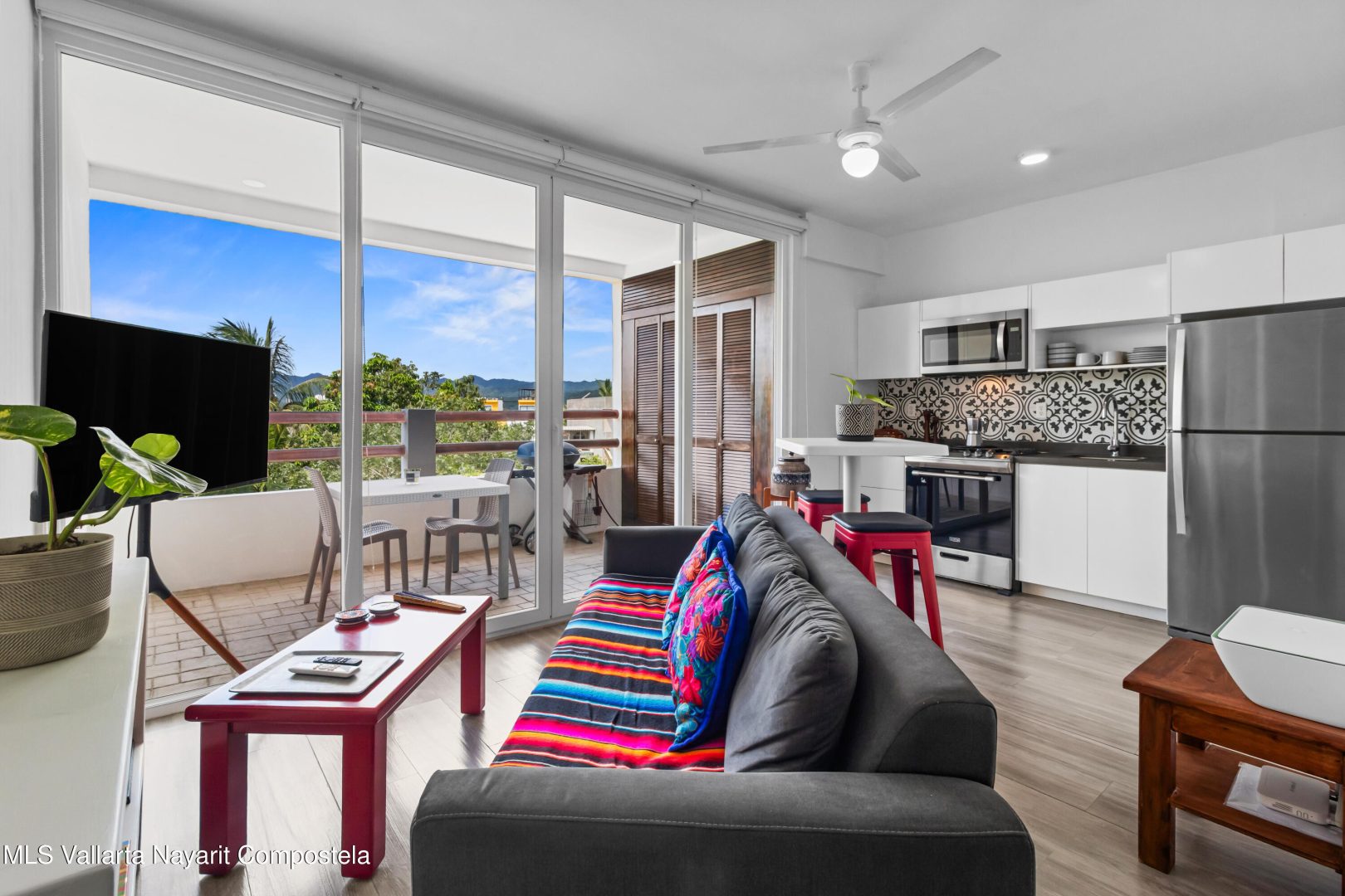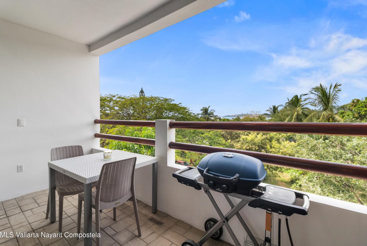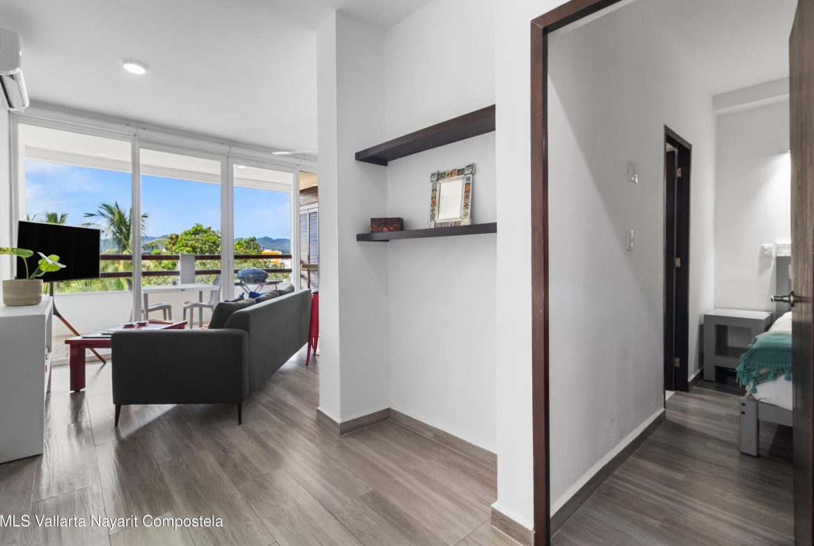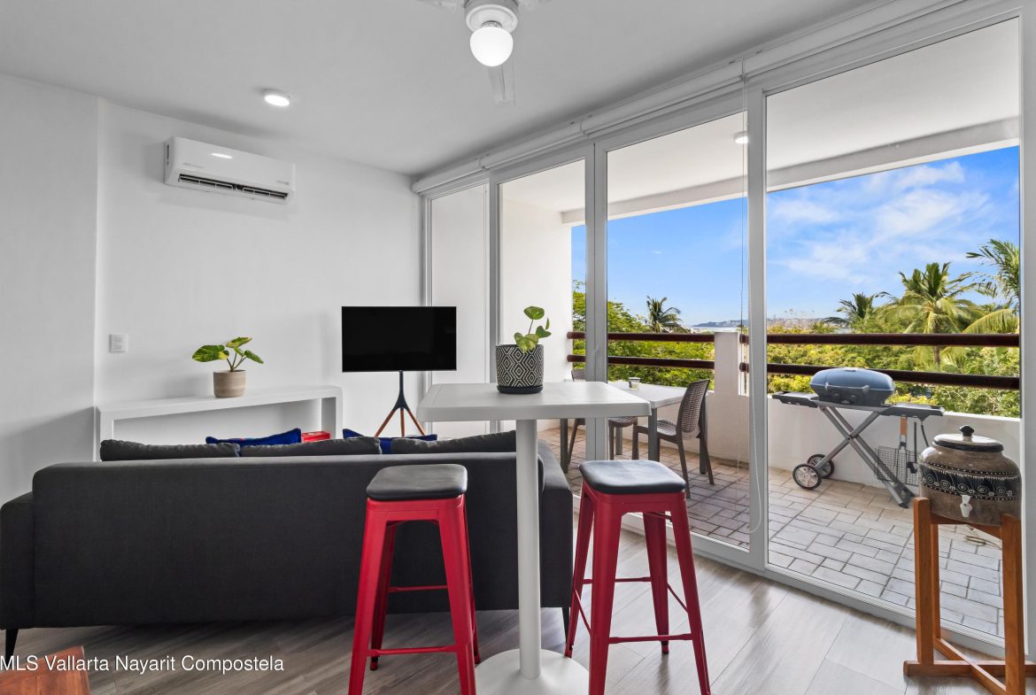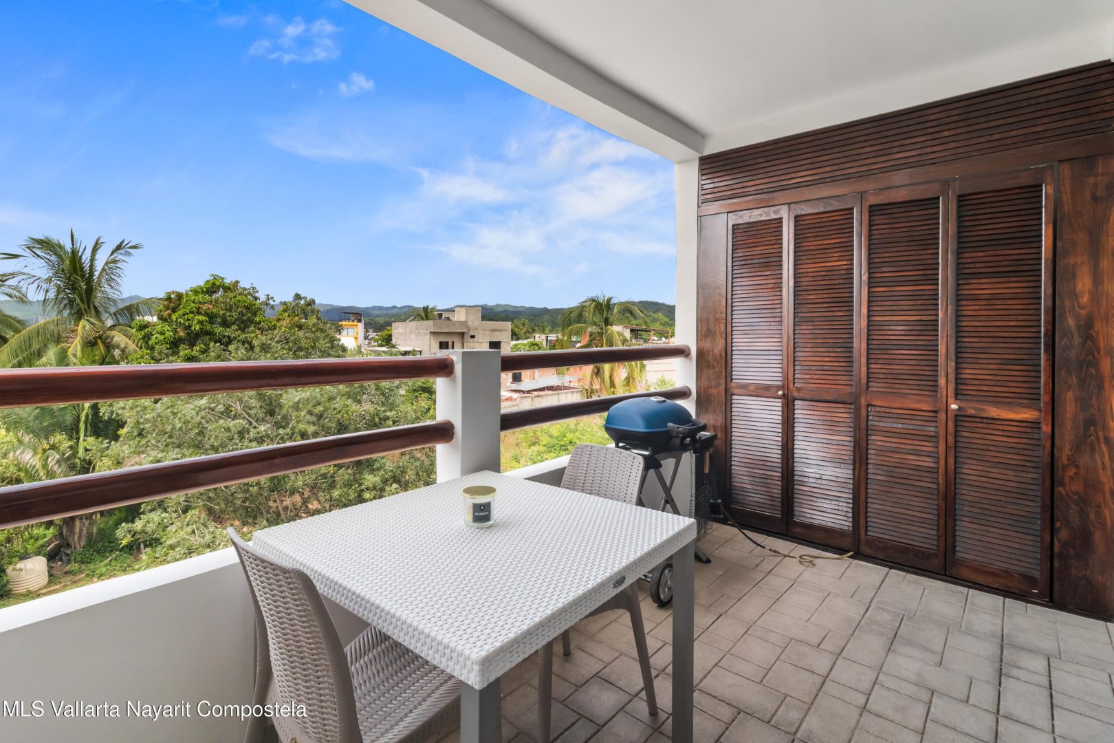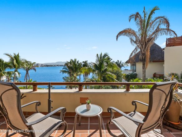 Live where every day feels like a vacation. This beautifully furnished 1-bedroom, 1-bath condo places the Bay of Banderas directly outside your living room and terrace ocean views to enjoy sunrise and sunset. The turnkey unit includes ample indoor living space and a large terrace perfect for morning coffee or evening cocktails.The secure, 24-hour guard-gated community provides peace of mind plus exceptional shared amenities: a large, resort-style pool with sun loungers and shaded seating, a spectacular rooftop with 360 views of the bay, and well-maintained common areas. Practical conveniences include two deeded parking spaces, a huge double-wide storage closet, and easy access to local shopping and dining. You’re a short 20-minute walk (5 minutes by car) to Bucerias’ Golden Zone