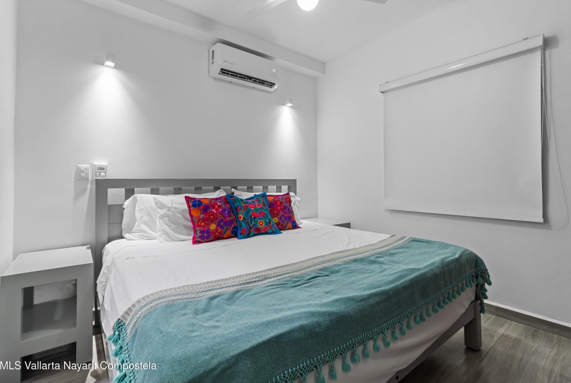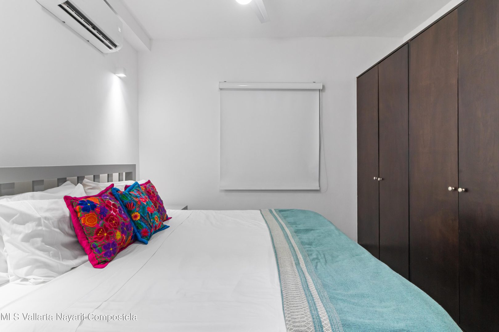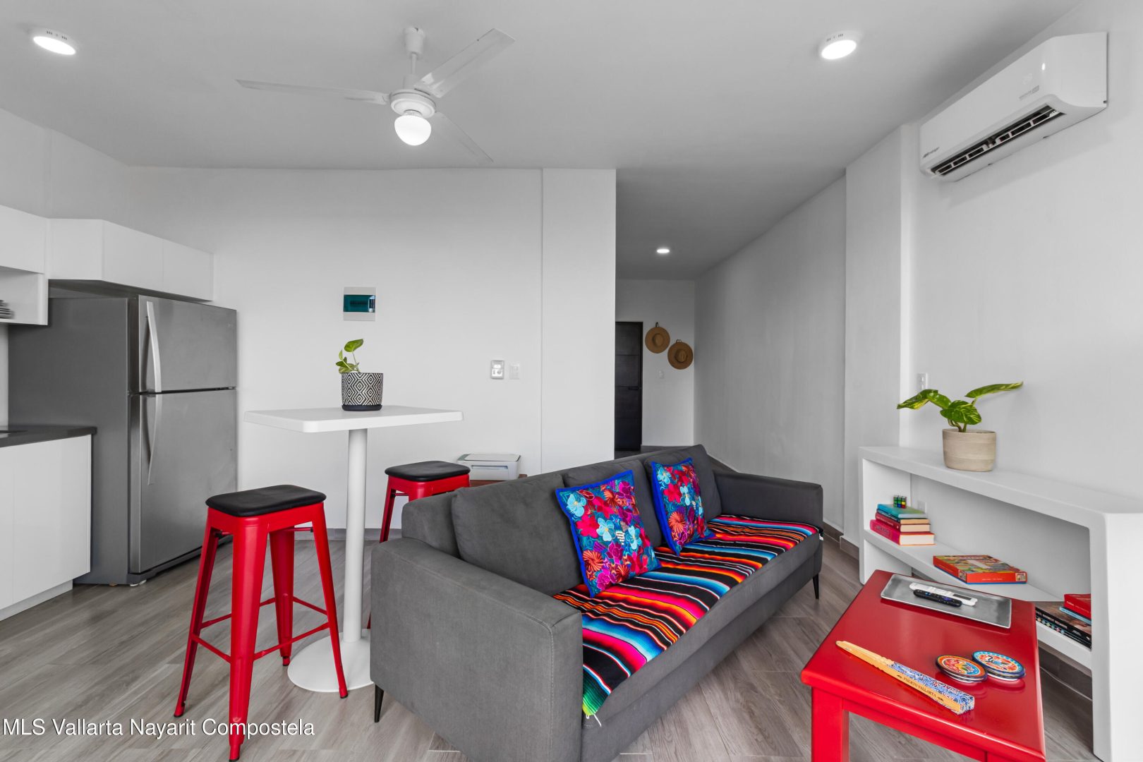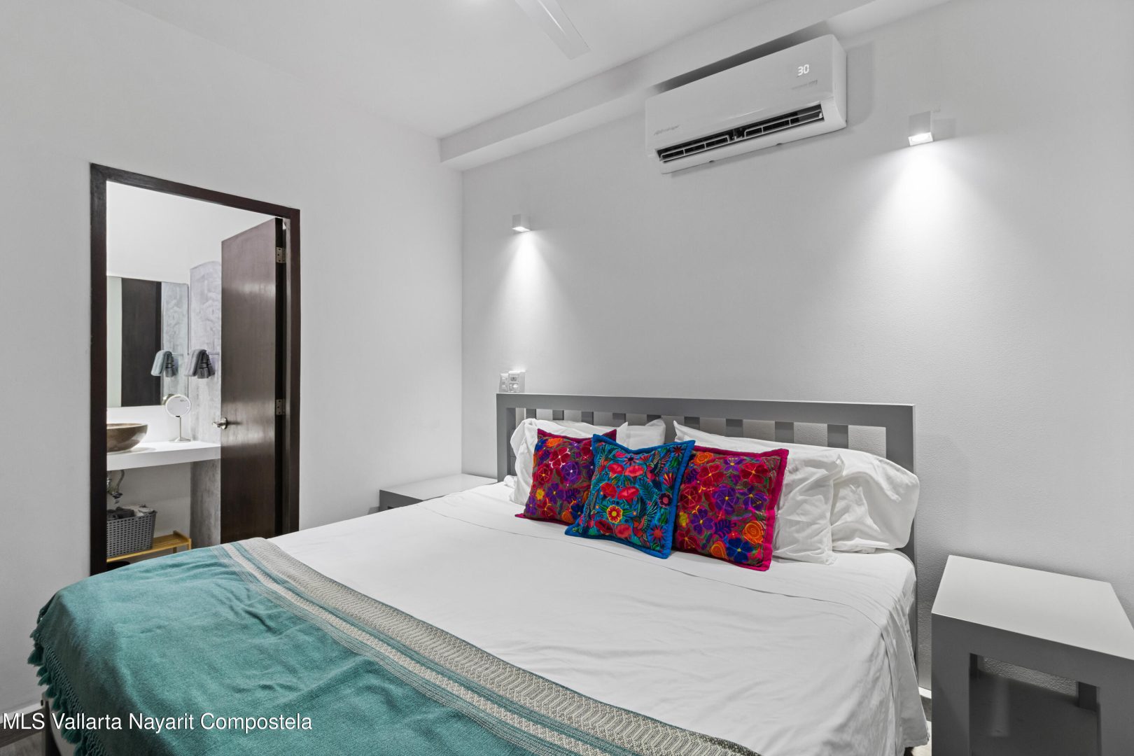 Live where every day feels like a vacation. This beautifully furnished 1-bedroom, 1-bath condo places the Bay of Banderas directly outside your living room and terrace ocean views to enjoy sunrise and sunset. The turnkey unit includes ample indoor living space and a large terrace perfect for morning coffee or evening cocktails.The secure, 24-hour guard-gated community provides peace of mind plus exceptional shared amenities: a large, resort-style pool with sun loungers and shaded seating, a spectacular rooftop with 360 views of the bay, and well-maintained common areas. Practical conveniences include two deeded parking spaces, a huge double-wide storage closet, and easy access to local shopping and dining. You’re a short 20-minute walk (5 minutes by car) to Bucerias’ Golden Zone
