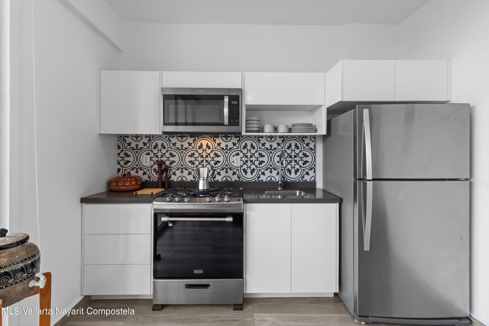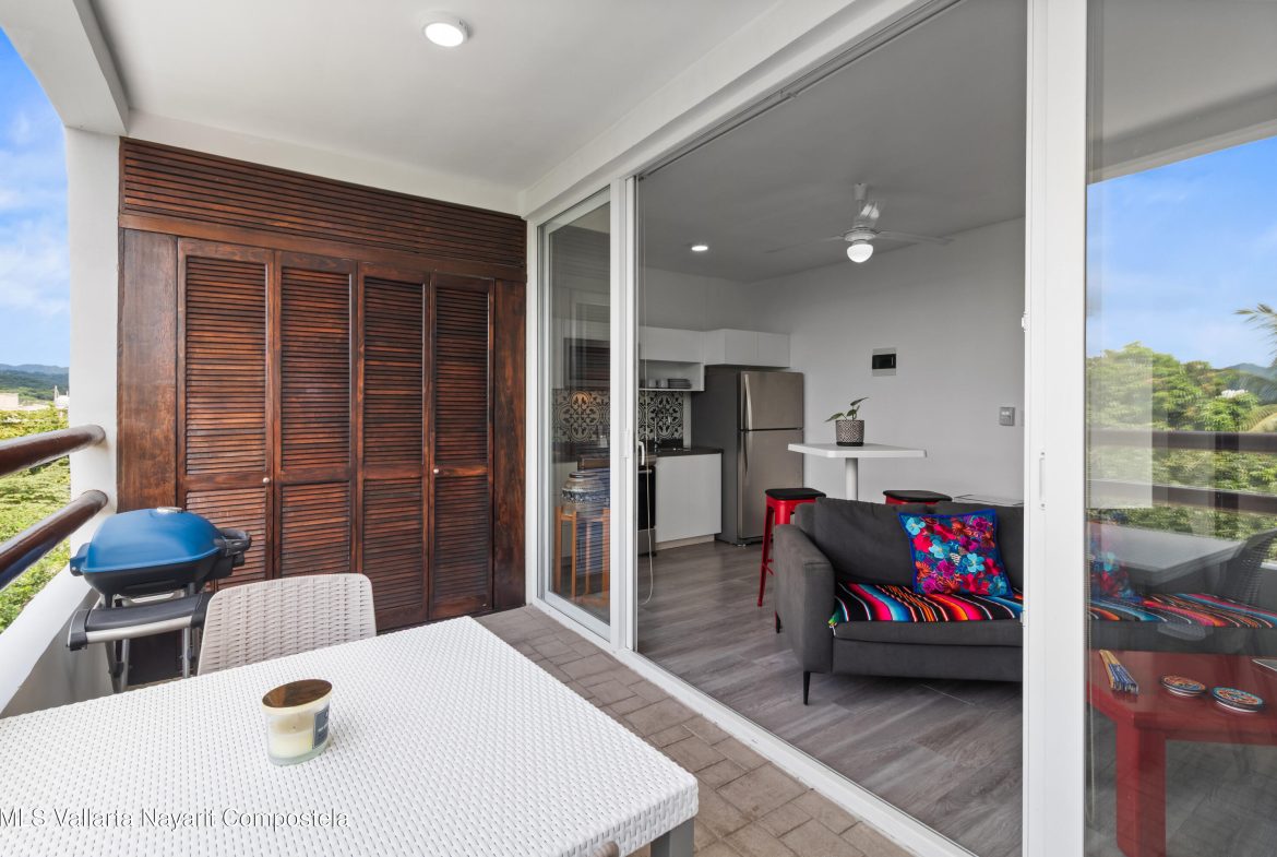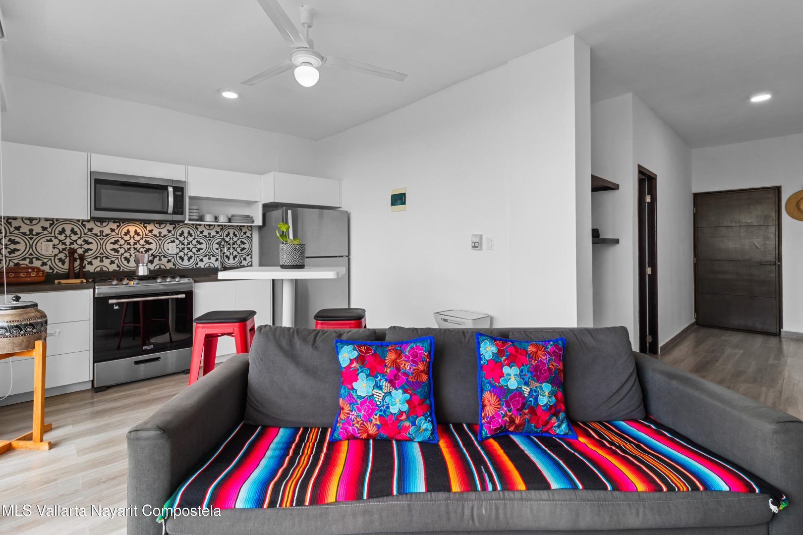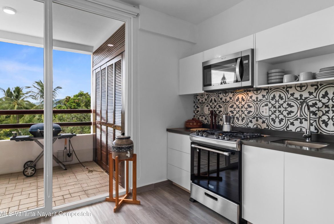 Live where every day feels like a vacation. This beautifully furnished 1-bedroom, 1-bath condo places the Bay of Banderas directly outside your living room and terrace ocean views to enjoy sunrise and sunset. The turnkey unit includes ample indoor living space and a large terrace perfect for morning coffee or evening cocktails.The secure, 24-hour guard-gated community provides peace of mind plus exceptional shared amenities: a large, resort-style pool with sun loungers and shaded seating, a spectacular rooftop with 360 views of the bay, and well-maintained common areas. Practical conveniences include two deeded parking spaces, a huge double-wide storage closet, and easy access to local shopping and dining. You’re a short 20-minute walk (5 minutes by car) to Bucerias’ Golden Zone