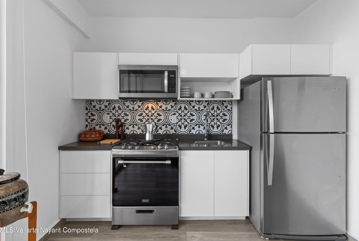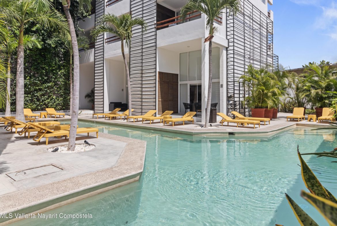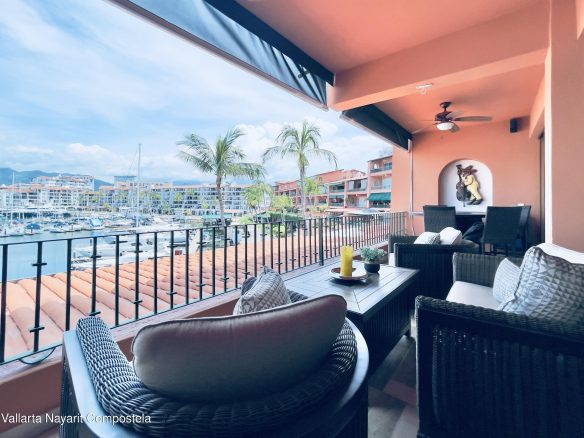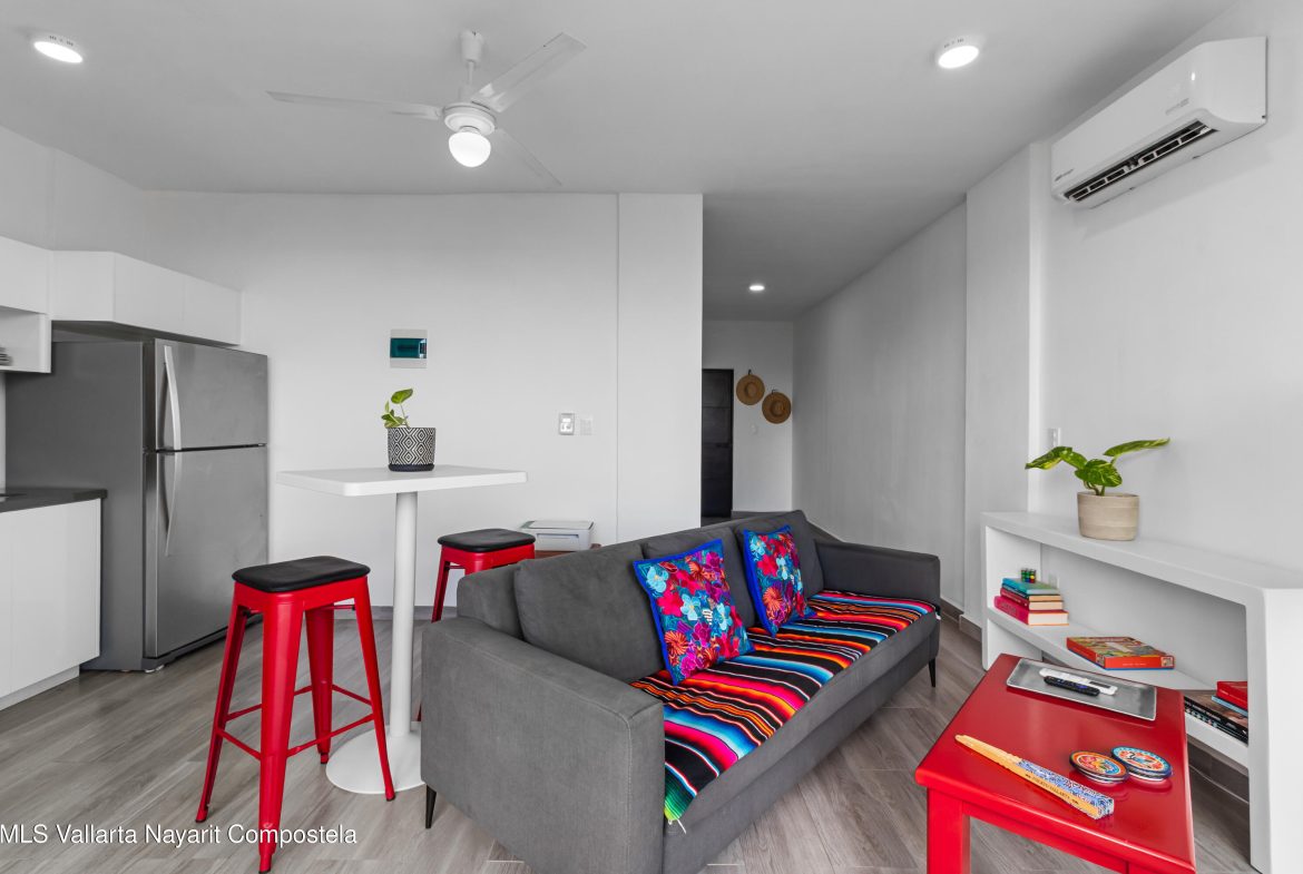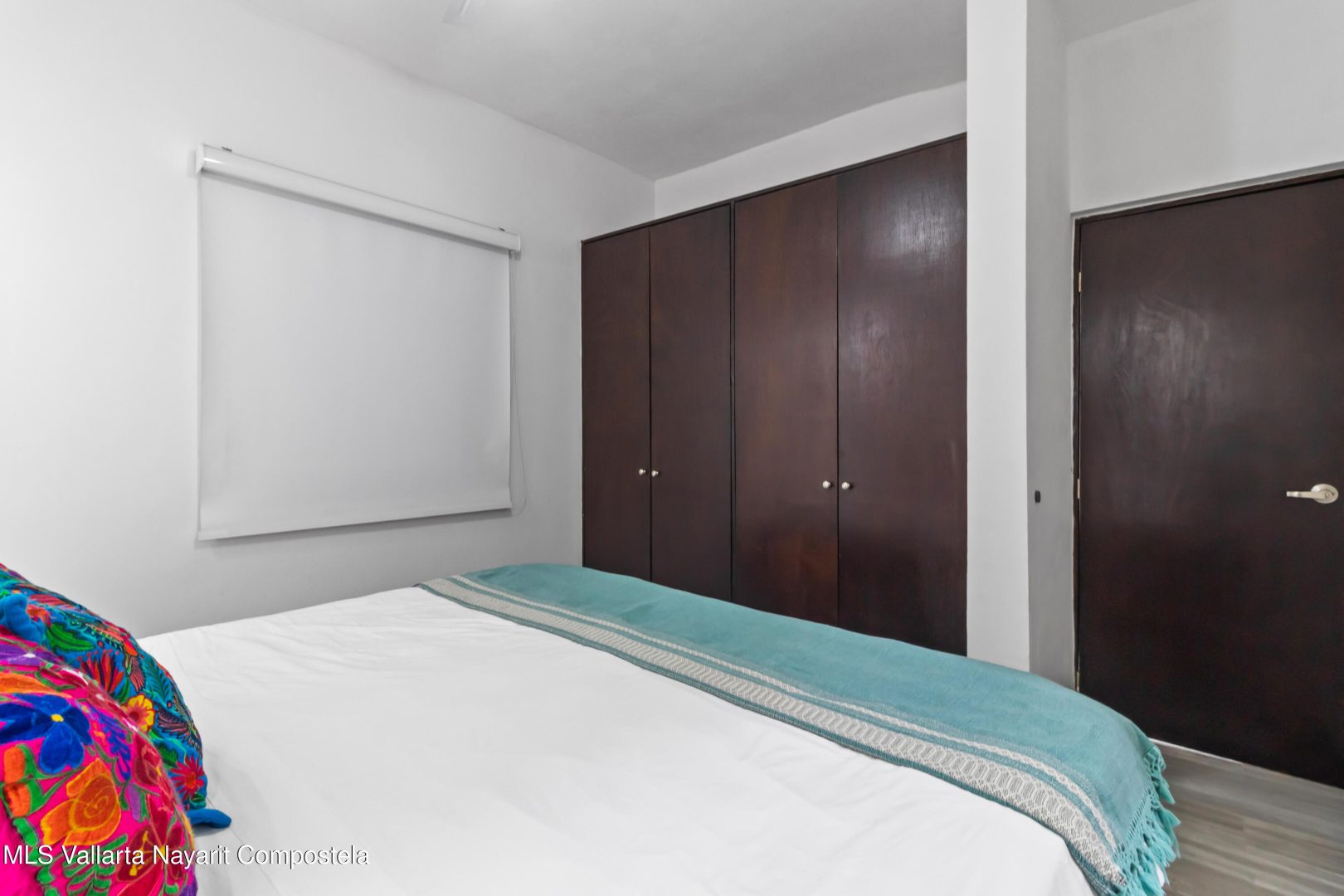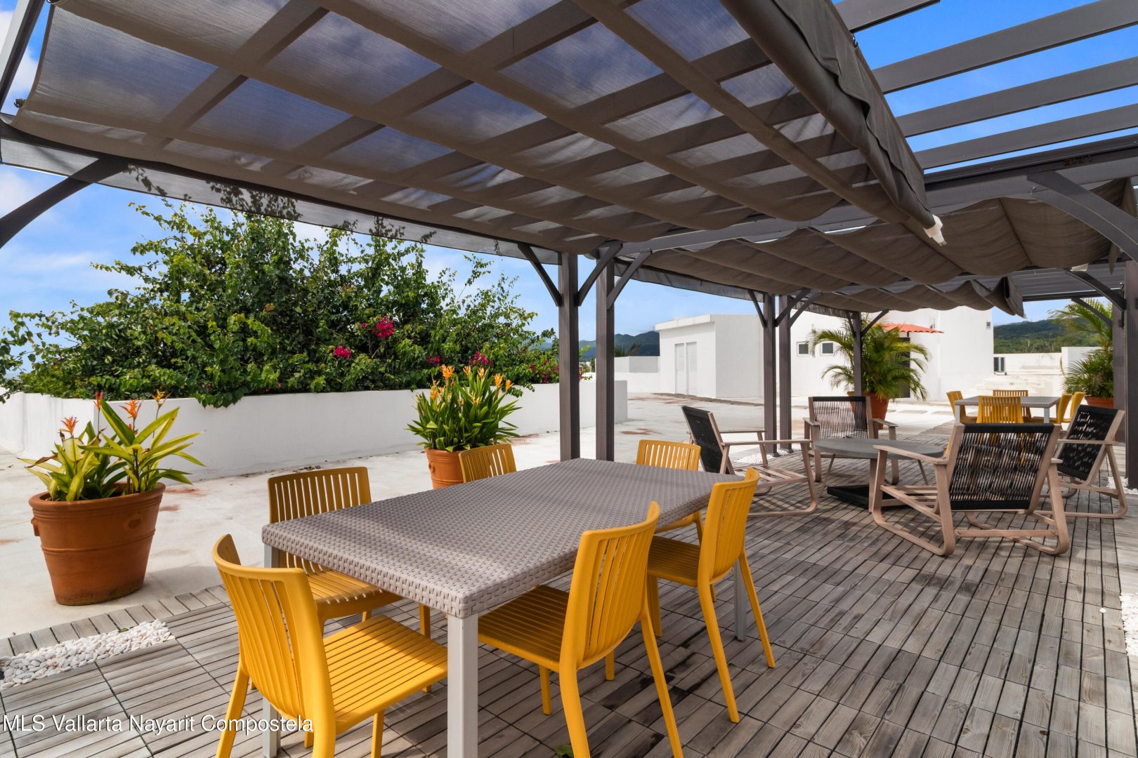 Live where every day feels like a vacation. This beautifully furnished 1-bedroom, 1-bath condo places the Bay of Banderas directly outside your living room and terrace ocean views to enjoy sunrise and sunset. The turnkey unit includes ample indoor living space and a large terrace perfect for morning coffee or evening cocktails.The secure, 24-hour guard-gated community provides peace of mind plus exceptional shared amenities: a large, resort-style pool with sun loungers and shaded seating, a spectacular rooftop with 360 views of the bay, and well-maintained common areas. Practical conveniences include two deeded parking spaces, a huge double-wide storage closet, and easy access to local shopping and dining. You’re a short 20-minute walk (5 minutes by car) to Bucerias’ Golden Zone