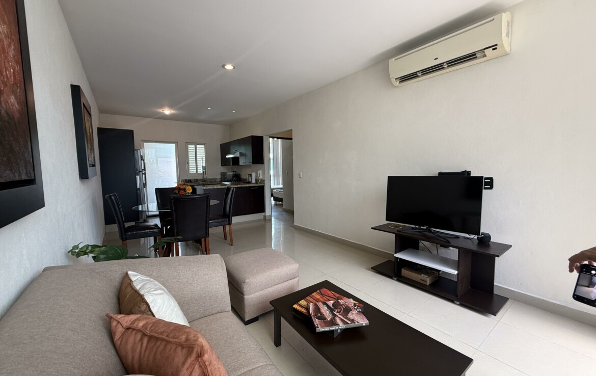 LISTING SE FIRMO EN MXN por: 3,700,000 MXN.El precio en USD esta solo como referencia, la vendedora quiere MXN . Listo para mudarte: departamento de 2 habitaciones y 2 banos que se vende amueblado, ideal para vivir comodo, invertir o rentar a corto y largo plazo. La ubicacion es imbatible: a pasos de Costco y La Comer, y a solo 15 minutos del centro de Puerto Vallarta. Estas muy cerca del corredor gastronomico de Versalles, con cafeterias y restaurantes de moda.