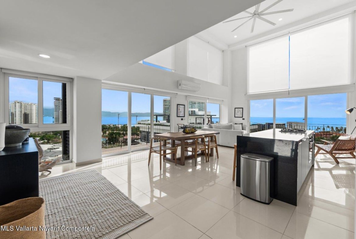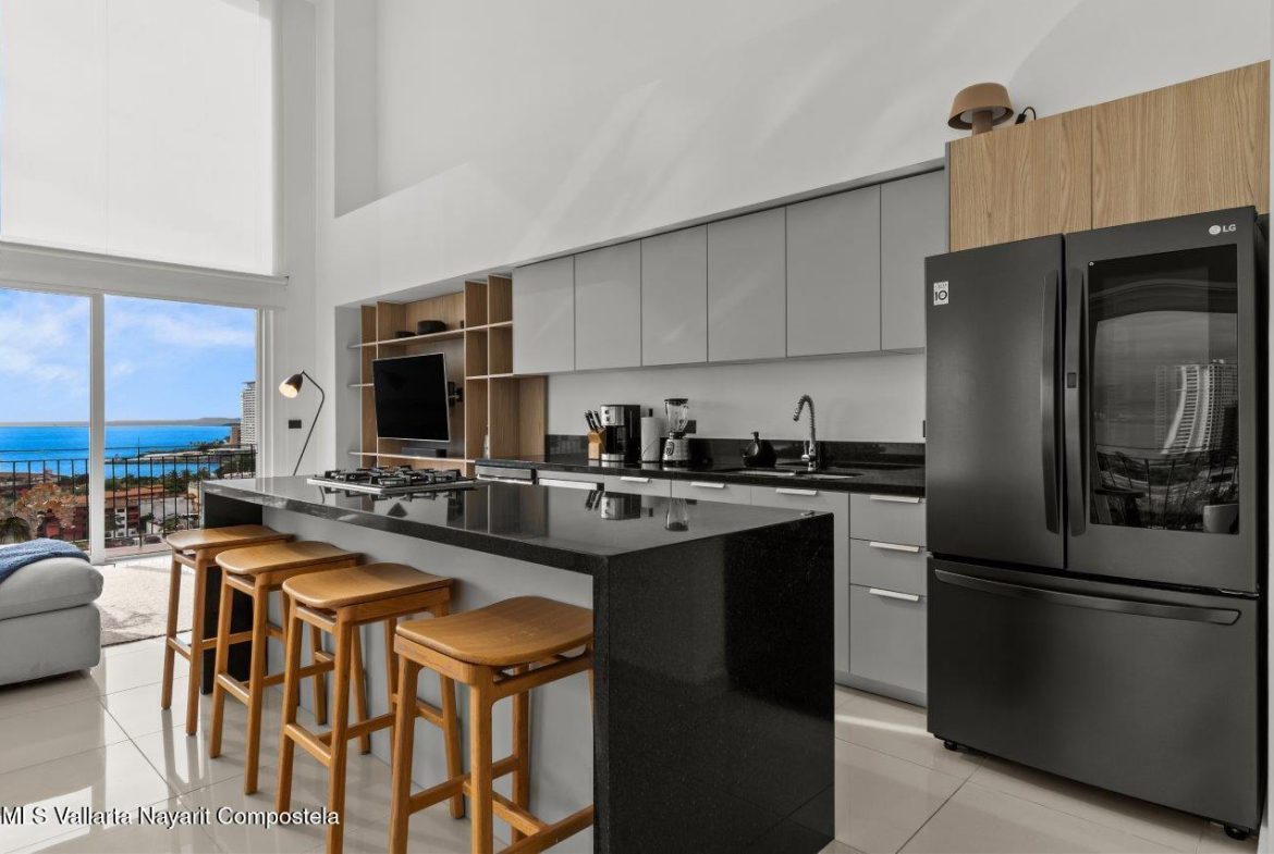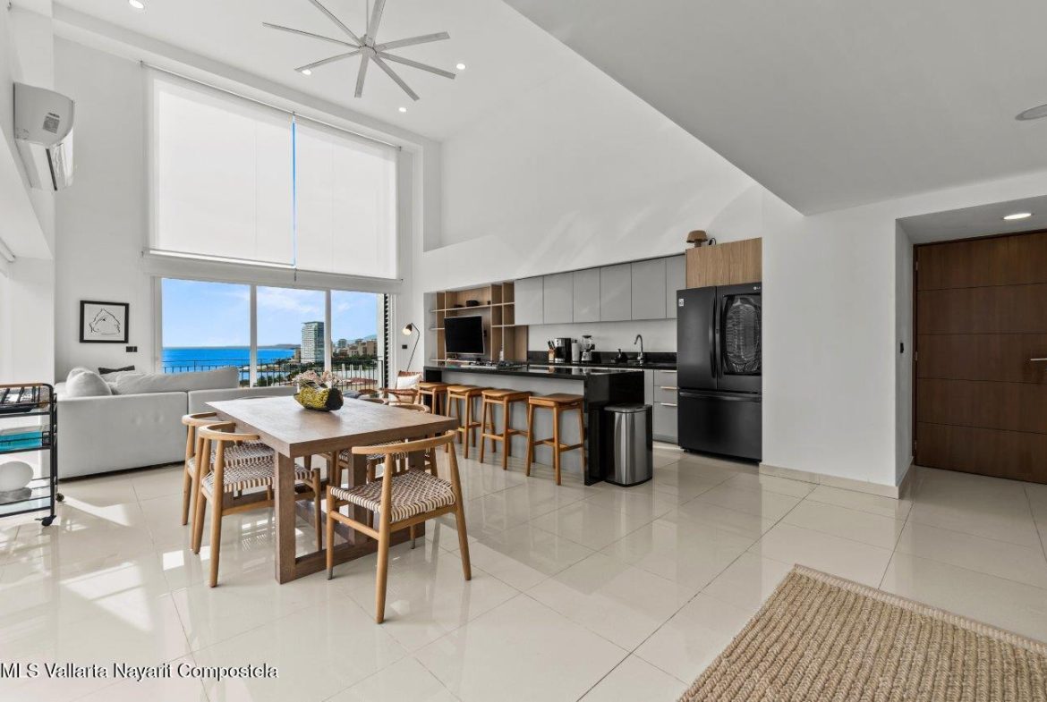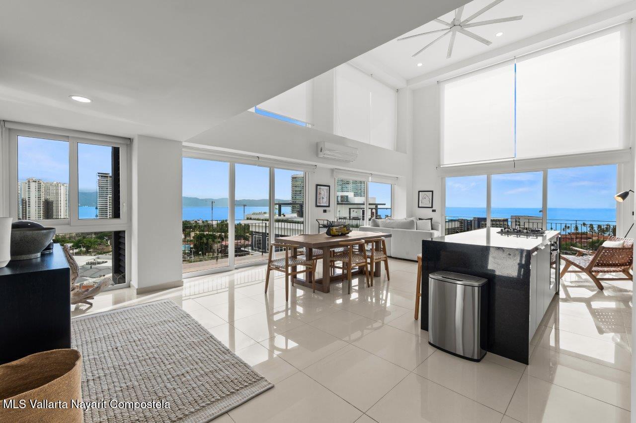 Disfruta de maravillosos atardeceres y de las vistas increibles hacia el mar y a la montana desde este Hermoso y amplio Penthouse de 2 niveles en Zona Hotelera Norte, cuenta con 2 master suites con bano privado y walking closet cada una, mas otra recamara con closet y un tercer bano completo, amplia area de sala – comedor con techo de doble altura, cocina equipada con electrodomesticos de alta gama, 2 terrazas en donde podras disfrutar de los amaneceres majestuosos que nos ofrece Puerto Vallarta. El complejo cuenta con alberca y una comoda y acogedora terraza en el ultimo piso, equipada con parilla, sillas y camastros acuaticos. Mas un area comun en el cuarto piso en donde se ubica el gimnasio, ludoteca y espacios abiertos para practicar ping-pong, yoga y mucho mas.