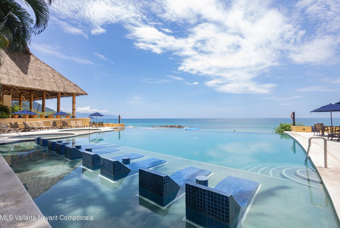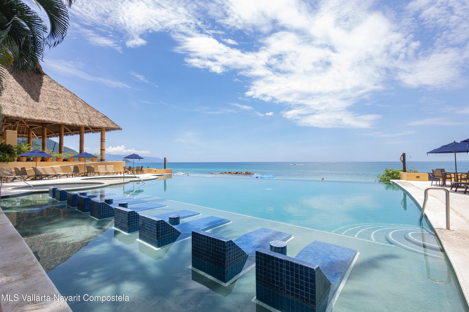 Experience the perfect balance of luxury, comfort, and absolutely stunning ocean views in this one of a kind, beachfront masterpiece.Welcome to Unit 703 at the exclusive Condominio Los Palmares, a rare listing opportunity on what is arguably the most beautiful and prestigious beach in all of Banderas Bay. With 187 m of beautifully designed living space and a smart, stylish layout, this residence is ideal for full-time living or unforgettable vacations.This spectacular home features 2 spacious bedrooms and 2 full bathrooms, including a primary suite with a private jacuzzi and floor to ceiling windows that showcase the crazy beautiful, panoramic views of the Pacific Ocean. Both bedrooms and the open concept living area offer breathtaking front row seats to the sea.