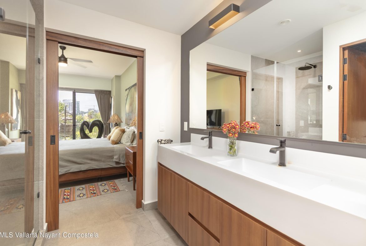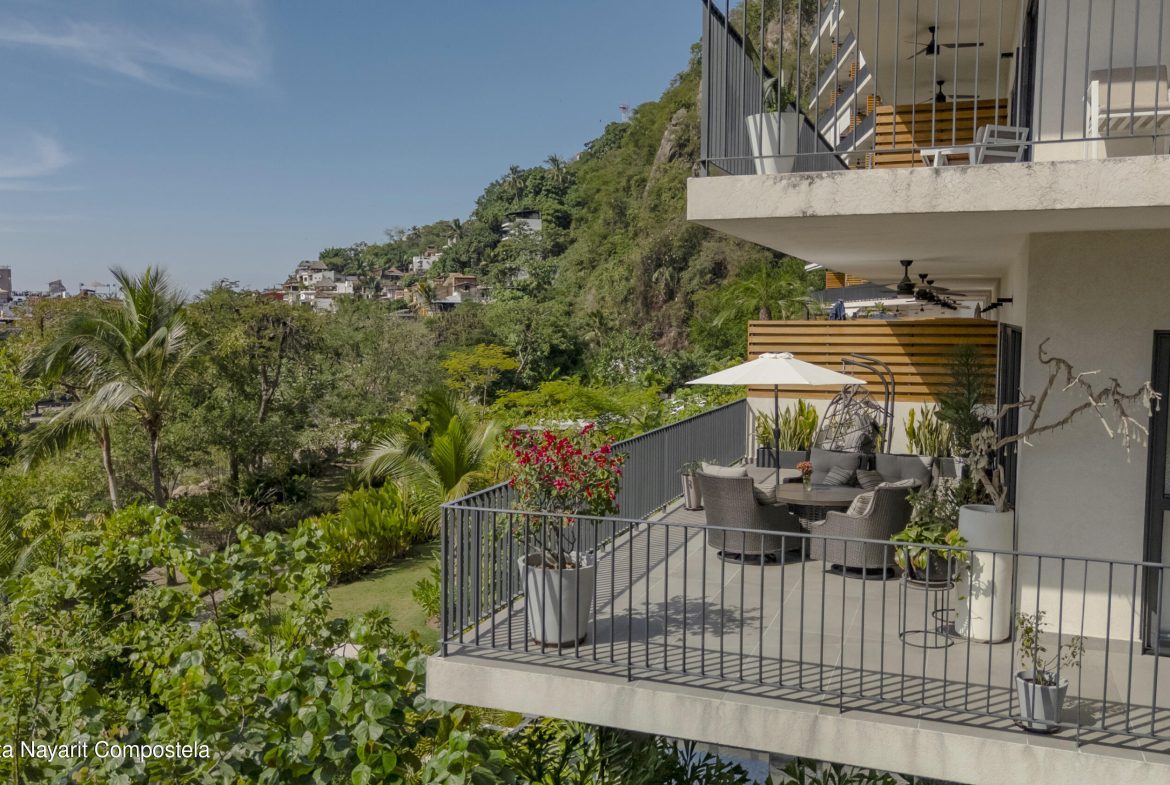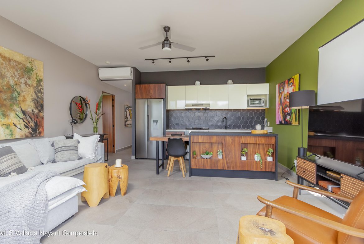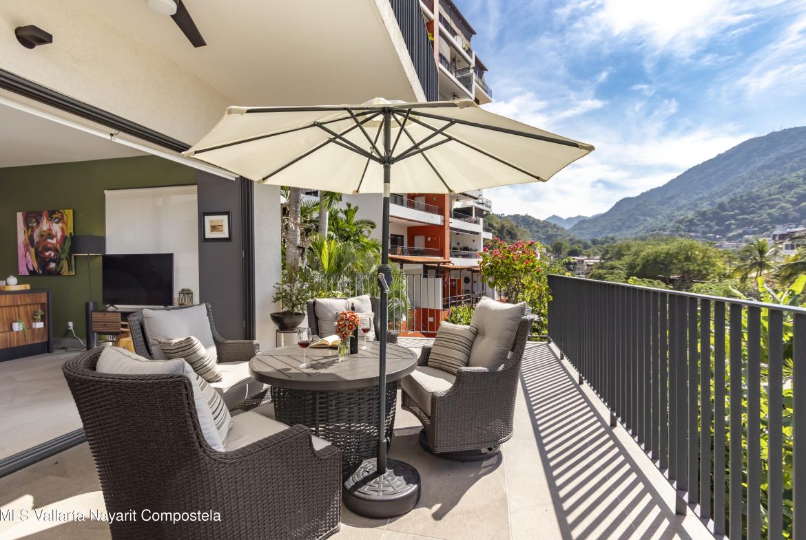 Ubicada a orillas del Rio Cuale, la Unidad 212 del Condominio Oasis es una luminosa residencia esquinera de 2 recamaras y 2 banos que ofrece tranquilas vistas al rio, las montanas circundantes y el pueblo. Una excepcional terraza envolvente de 50 m, una de las mas grandes del edificio, proporciona abundante luz natural y un amplio espacio al aire libre, ideal para disfrutar del amanecer.La sala de estar de concepto abierto cuenta con una cocina renovada con gabinetes a medida, una gran isla y un comedor adicional, ideal tanto para el entretenimiento como para la vida diaria. La recamara principal tiene acceso directo a la terraza, lo que realza el estilo de vida interior y exterior y la conexion con el entorno natural.Condominio Oasis es una comunidad riberena con todos los servicios