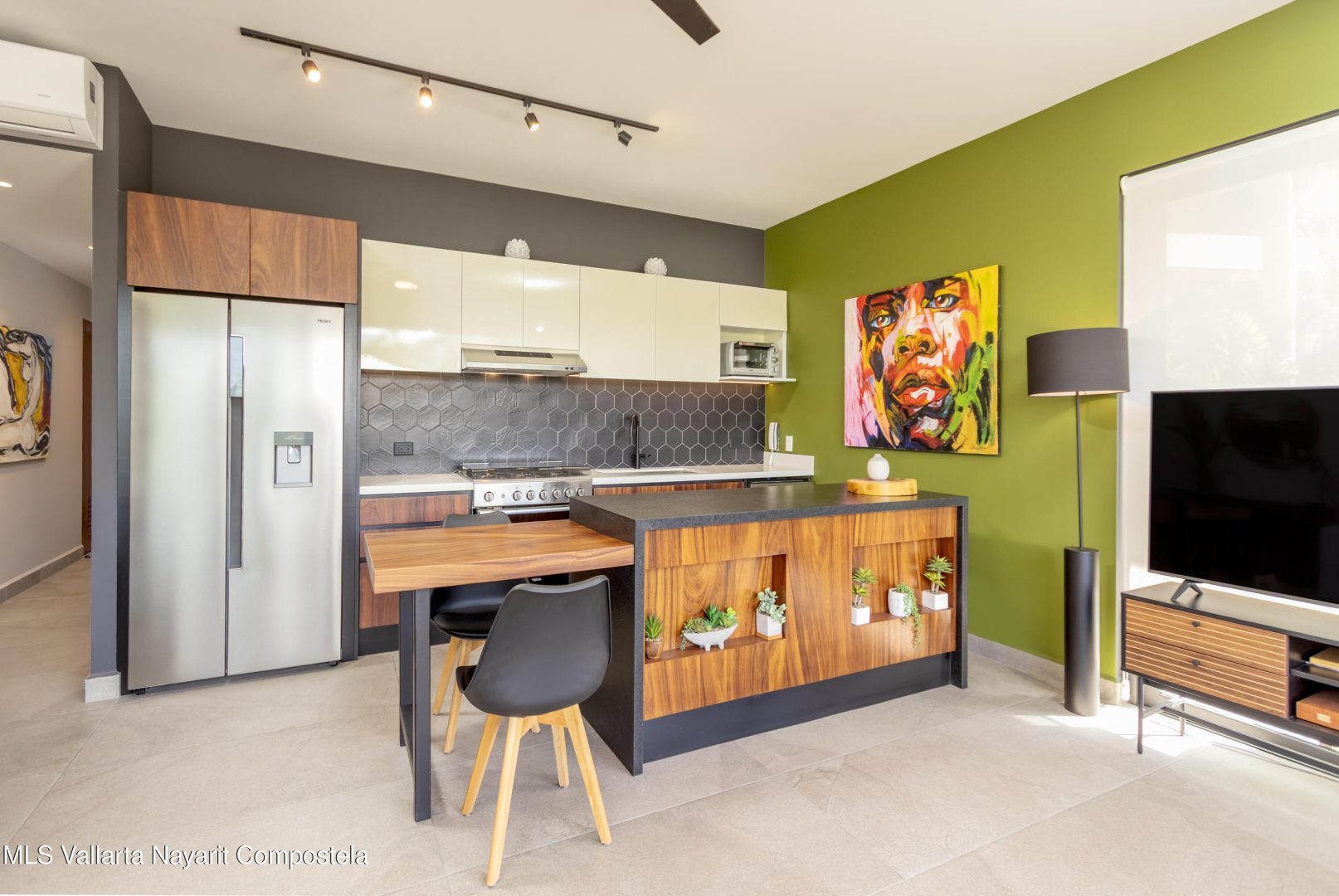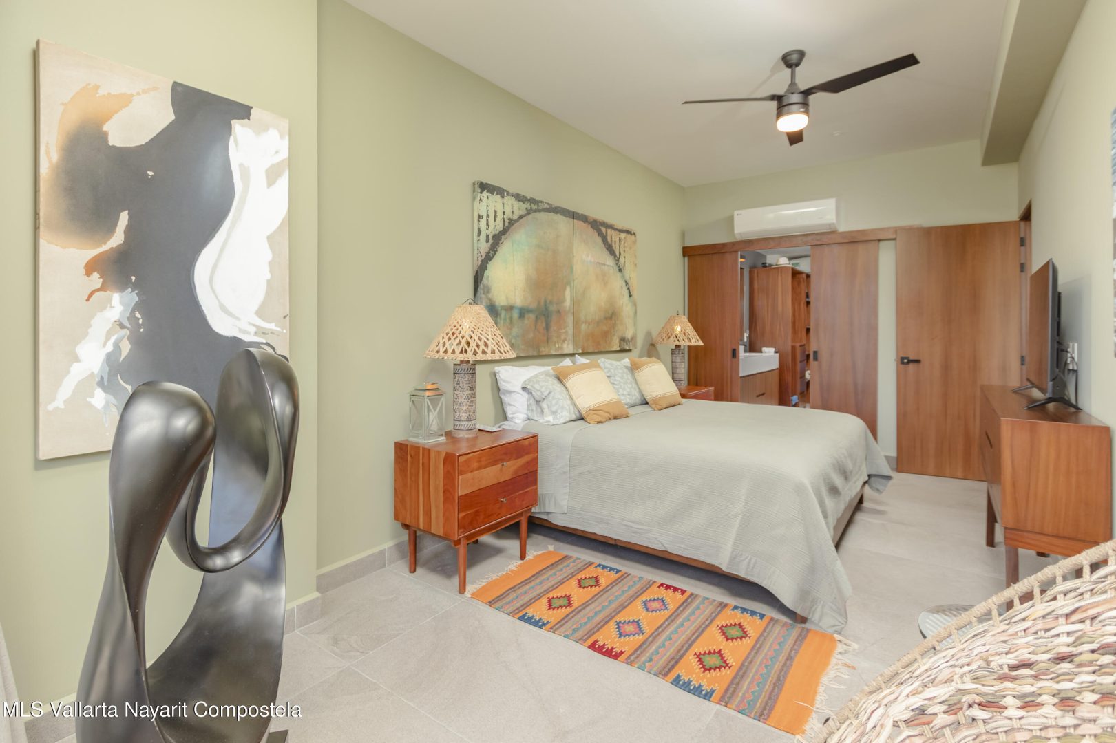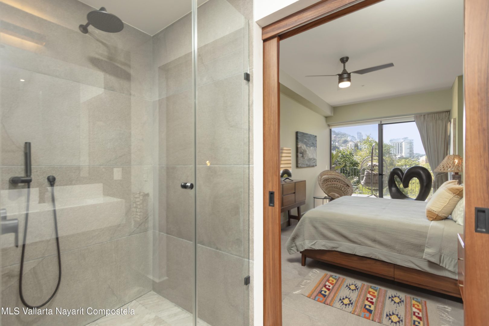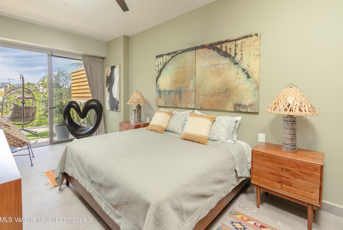 Ubicada a orillas del Rio Cuale, la Unidad 212 del Condominio Oasis es una luminosa residencia esquinera de 2 recamaras y 2 banos que ofrece tranquilas vistas al rio, las montanas circundantes y el pueblo. Una excepcional terraza envolvente de 50 m, una de las mas grandes del edificio, proporciona abundante luz natural y un amplio espacio al aire libre, ideal para disfrutar del amanecer.La sala de estar de concepto abierto cuenta con una cocina renovada con gabinetes a medida, una gran isla y un comedor adicional, ideal tanto para el entretenimiento como para la vida diaria. La recamara principal tiene acceso directo a la terraza, lo que realza el estilo de vida interior y exterior y la conexion con el entorno natural.Condominio Oasis es una comunidad riberena con todos los servicios