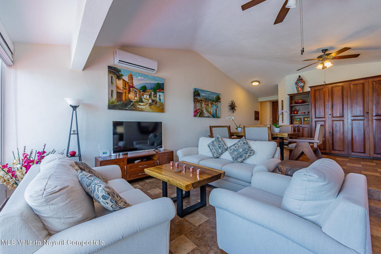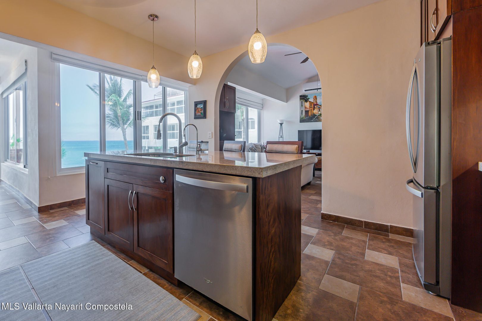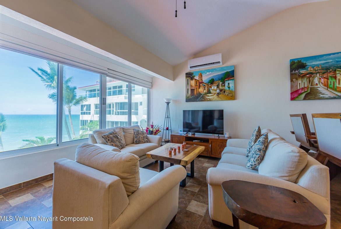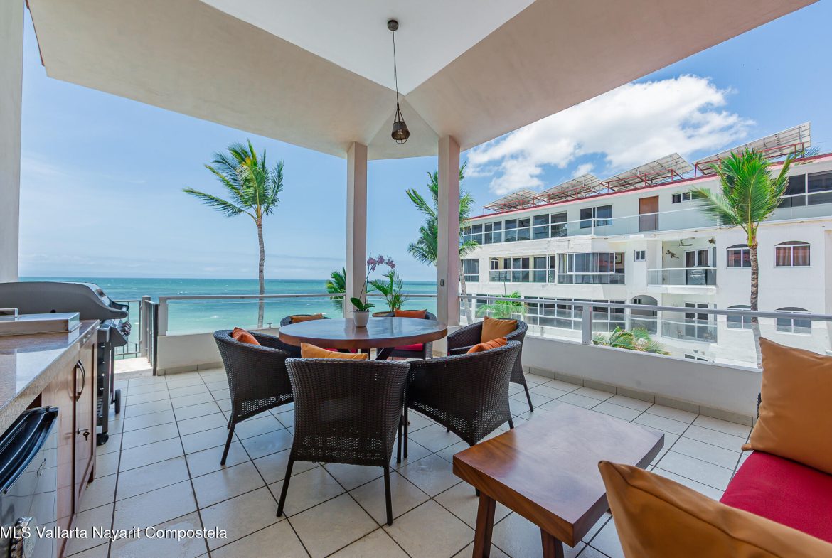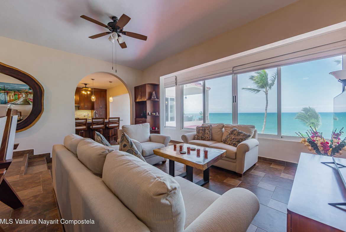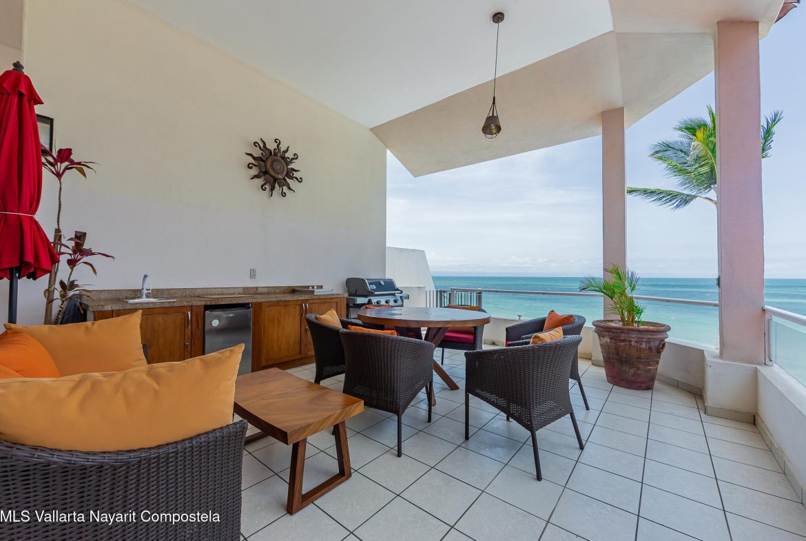 English below. Este no es un condominio cualquiera. Ubicado en el codiciado edificio Suites Atlas, este exclusivo penthouse frente al mar ofrece dos condominios independientes con una sola escritura, lo que lo convierte en la opcion ideal para quienes necesitan espacio adicional o una fuente de ingresos integrada.This isn’t your average condo. Located in the coveted Suites Atlas building, this unique beachfront penthouse gives you two separate condos on a single deed, making it the ultimate setup for anyone needing extra space or a built-in income stream.The main unit is a stunning 1,700 sq. ft. home with two bedrooms and 2.5 baths, with vaulted ceilings. The open living area flows out to a terrace with an outdoor kitchen, perfect for watching sunsets over the Bay of Banderas.