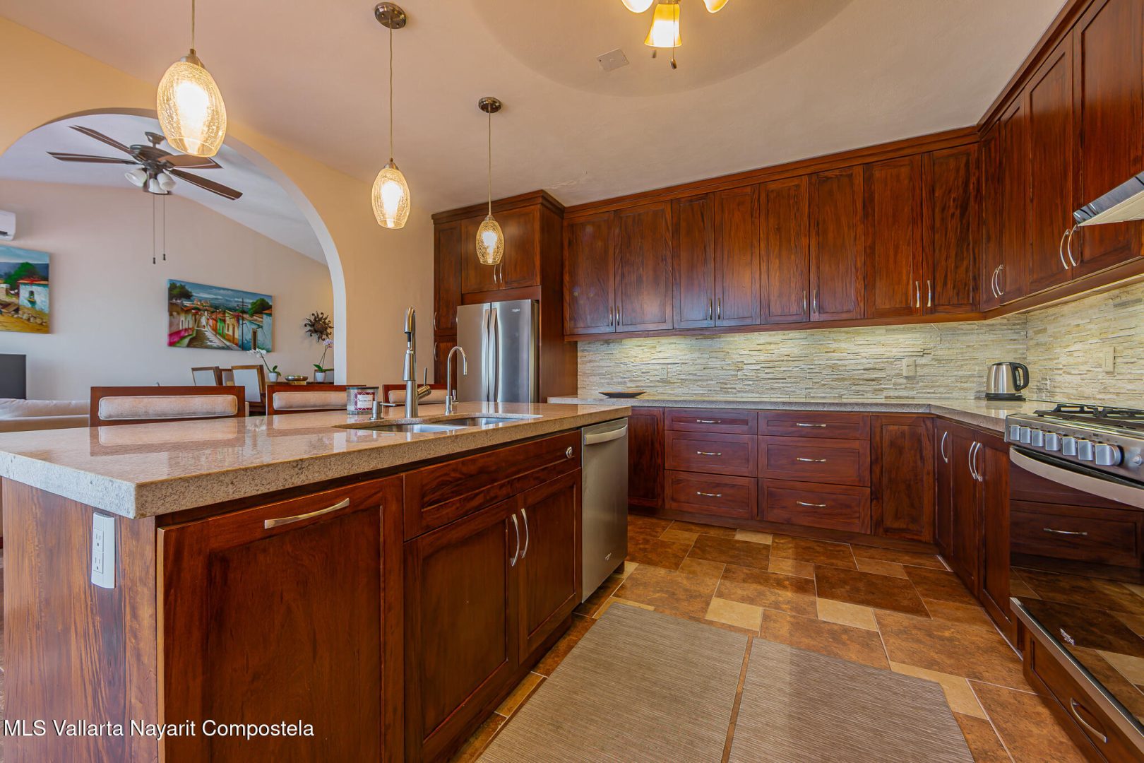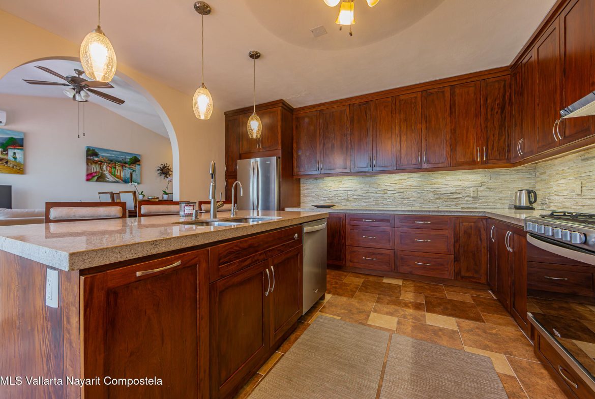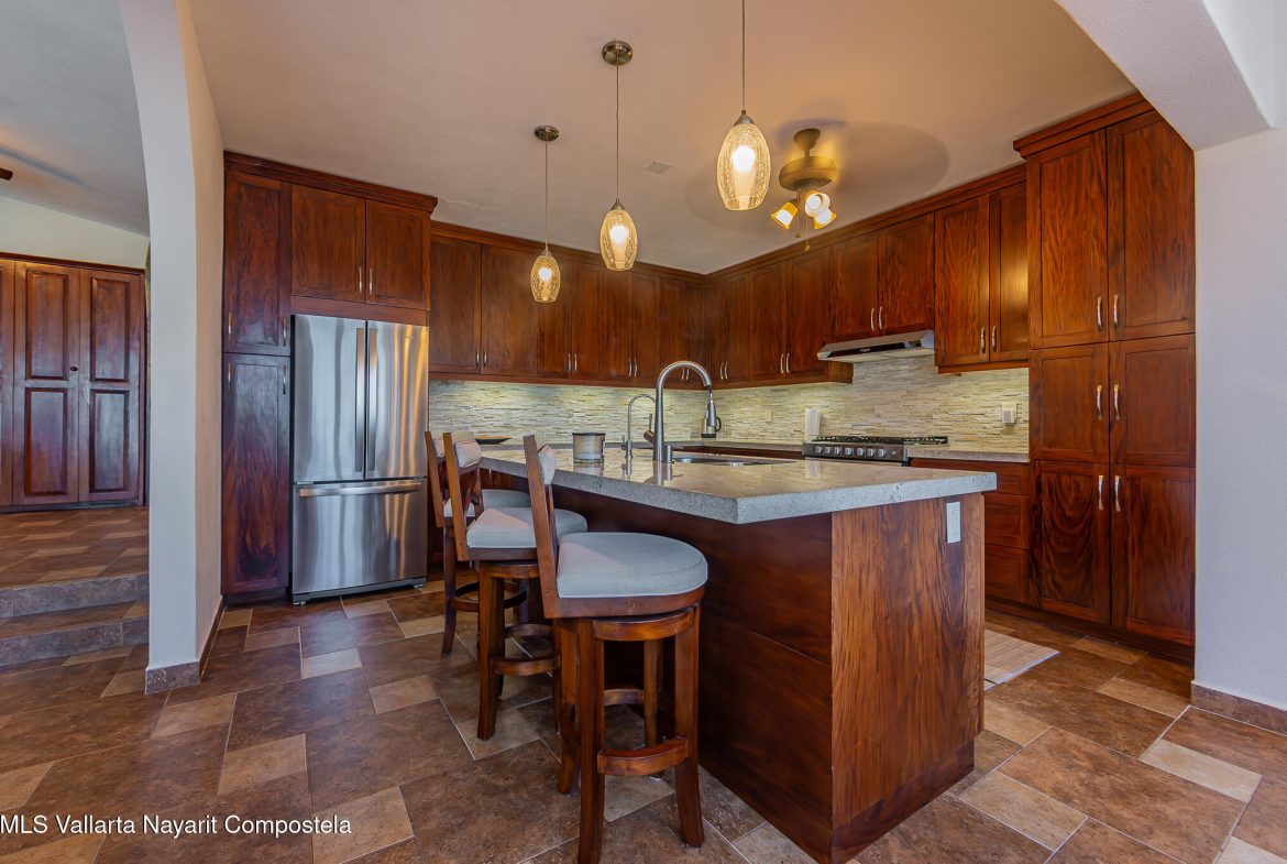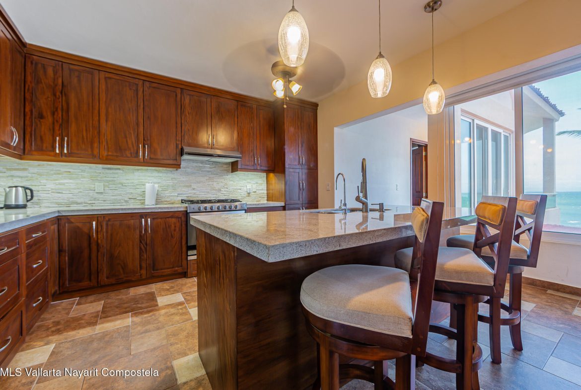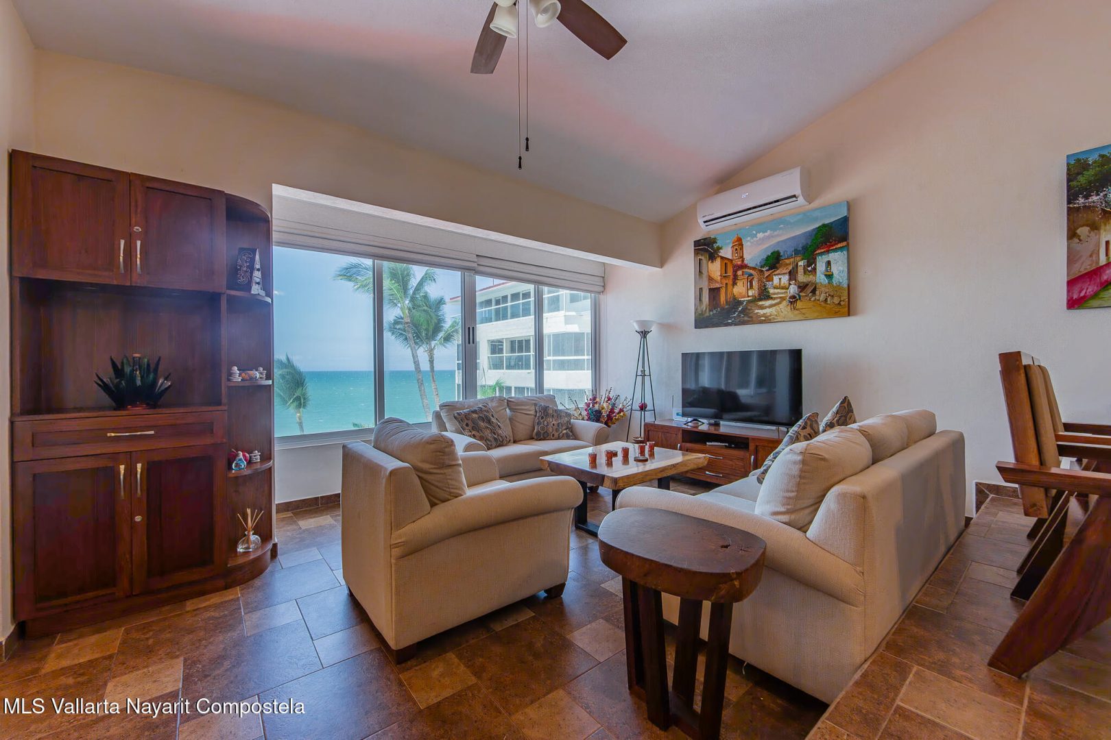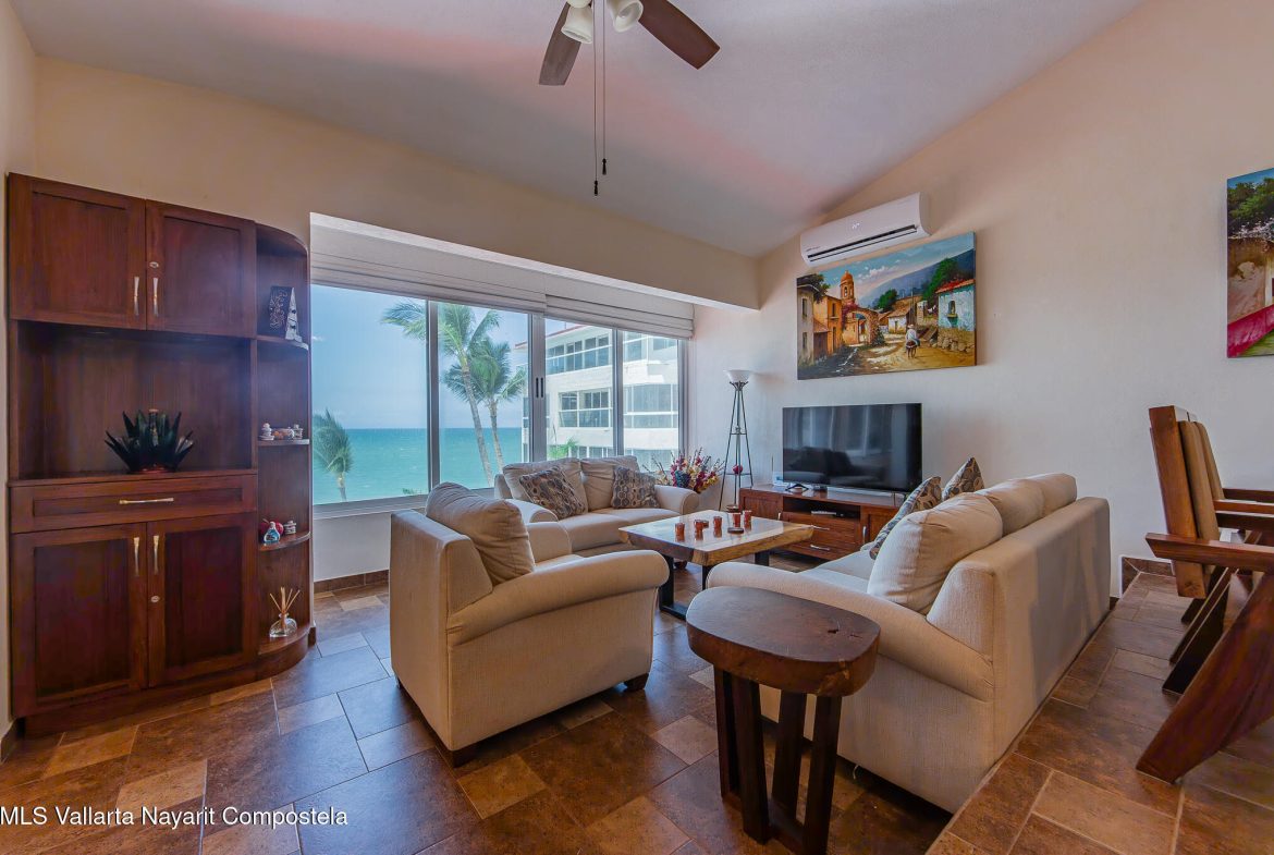 English below. Este no es un condominio cualquiera. Ubicado en el codiciado edificio Suites Atlas, este exclusivo penthouse frente al mar ofrece dos condominios independientes con una sola escritura, lo que lo convierte en la opcion ideal para quienes necesitan espacio adicional o una fuente de ingresos integrada.This isn’t your average condo. Located in the coveted Suites Atlas building, this unique beachfront penthouse gives you two separate condos on a single deed, making it the ultimate setup for anyone needing extra space or a built-in income stream.The main unit is a stunning 1,700 sq. ft. home with two bedrooms and 2.5 baths, with vaulted ceilings. The open living area flows out to a terrace with an outdoor kitchen, perfect for watching sunsets over the Bay of Banderas.