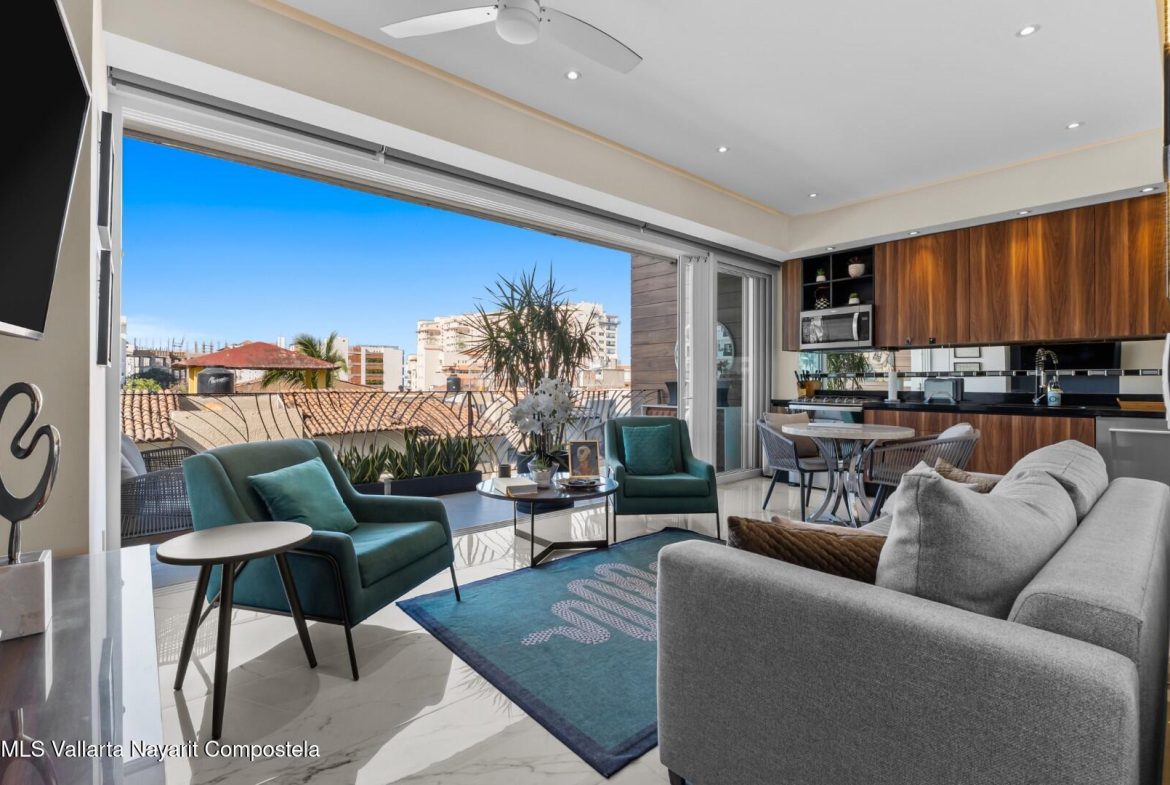 Luminoso y moderno condominio de 1 recamara y 2 banos con aproximadamente 78.92 metros cuadrados de espacio abierto en el corazon de la Zona Romantica, a pasos de la playa, el malecon, clubes, galerias y restaurantes de primera. Muy rentable y con una ubicacion centrica, esta unidad bellamente decorada muestra atencion al detalle. Disfrute de un ”resort” en la azotea con sala de estar, alberca infinita, bar y barman, ademas de un gimnasio bien equipado, todo en un edificio moderno y elegante, perfecto para vivir o invertir.
