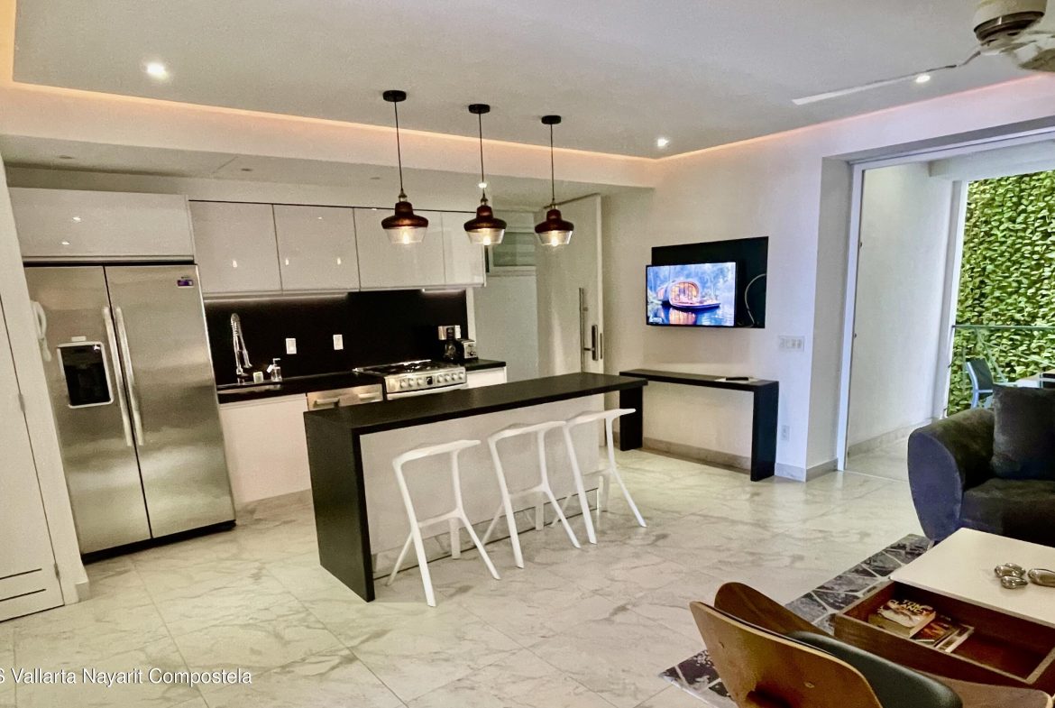 Amazing Rentals with this 1-bedroom, 2-bathroom condo at D’Terrace. One block from Los Muertos Beach and Restaurants, bars, galleries and more. Close to the Zona Romantica activities without the congestion or noise. Fully furnished and ready for you to move in or start making income. Enjoy the ocean and city views from the rooftop terrace, with a large infinity pool, two jacuzzis along with seating areas, and a fire pit. The rooftop gym offers beautiful views. Don’t miss out on this opportunity.