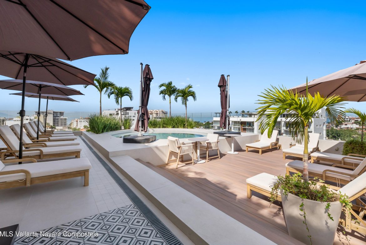 Developed by the renowned developer D Group, D’Vine is located in the heart of Zona Romantica, this corner unit on the third floor offers 2 bedrooms, 2 bathrooms, and over 1,400 sq.ft. Filled with natural light and featuring a wraparound terrace, it showcases beautiful city and mountain views.Designed to impress the most discerning buyers, D’Vine offers a stunning rooftop pool, lounge, hot tub, and entertainment areas. The condo features fully equipped kitchen, premium cabinetry and appliances, quartz countertops, indirect lighting, and a storage unit in the basement.A perfect blend of comfort and sophistication, just five blocks from Los Muertos Beach and the vibrant shops and restaurants that make this area so desirable, making this property an excellent investment for rentals.