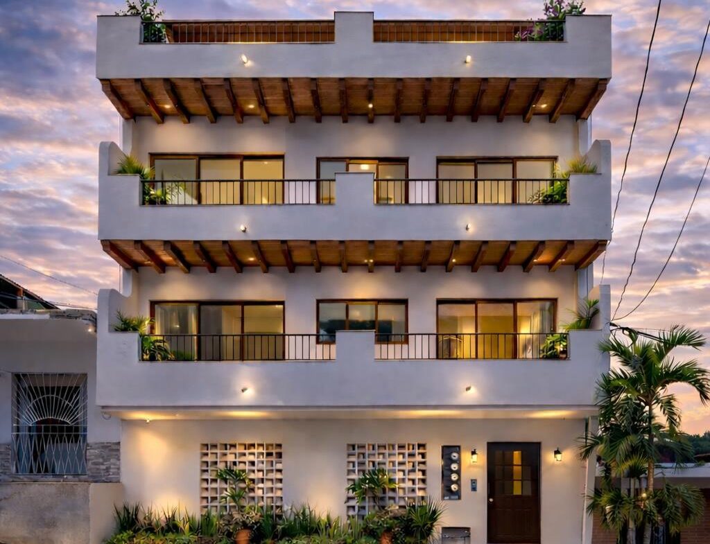 Palmares Building is an exclusive investment opportunity located at Rio Ameca 762, Puerto Vallarta, in a local, peaceful area just minutes from the beach. Its privileged position offers beautiful mountain views, creating a serene and attractive environment for residents and guests. Designed by the renowned architect Alonso Sosa of Flower Buildings, the project blends contemporary architecture, high functionality, and refined finishes. Built on a 1097.5 sqFt lot, this brand-new construction features three independent apartments, each offering 1202 sqFt space. Every unit showcases premium finishes, exceptional attention to detail, security intercom, and full gas installation throughout the building. The property also includes a rooftop with a swimming pool and common areas