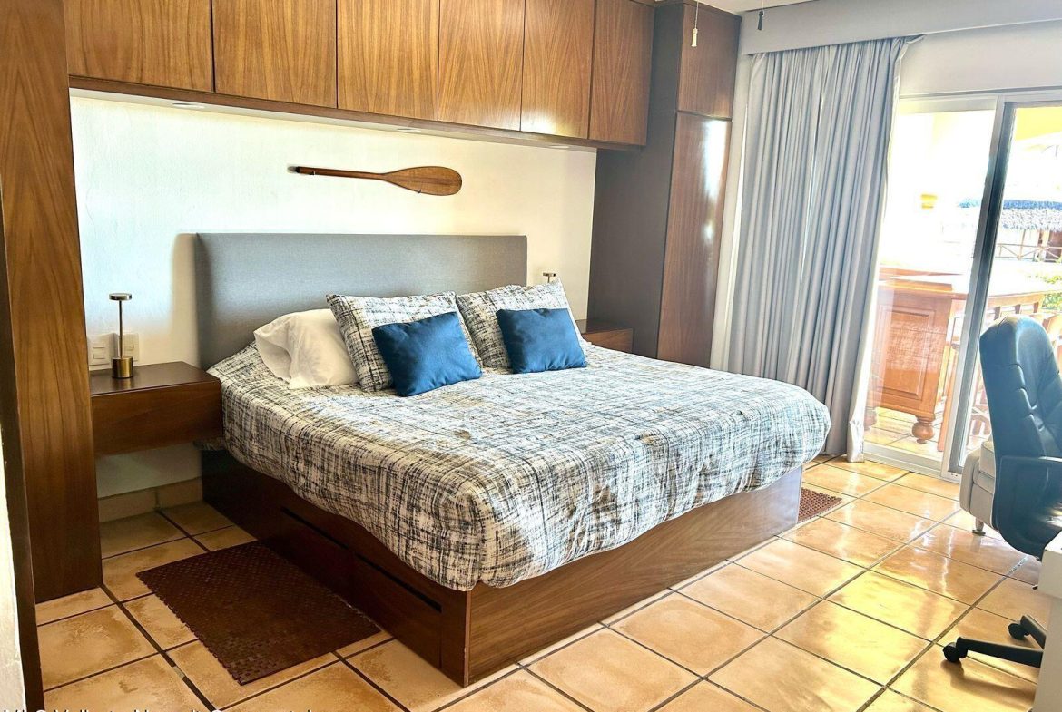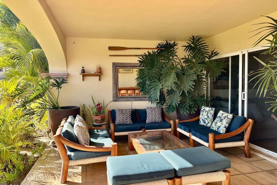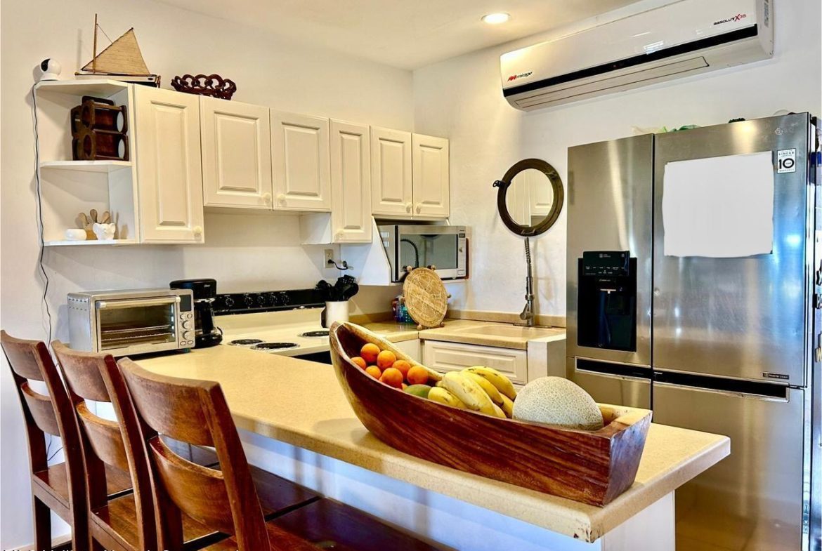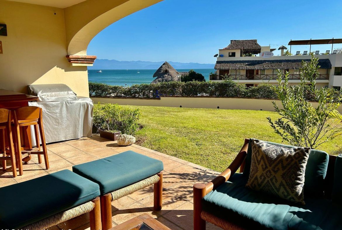 Move-in ready condo at El Anclote 1104, featuring two bedrooms, two bathrooms, and a full laundry room. Located on the first floor, it offers access to a 50-foot garden, providing a sense of extra space from your terrace.This unit comes with numerous upgrades, including independent mini-split air conditioning in every room, rustic Mexican wood furniture, a terrace cantina, ceiling fans, and televisions. Enjoy stunning ocean views of Anclote Bay, one car parking space and walking distance to several surf spots.Condominio El Anclote is a beautiful, high-end development featuring 24-hour security, a 20-meter pool, and spacious grassy areas, tennis court all located in the heart of El Anclote