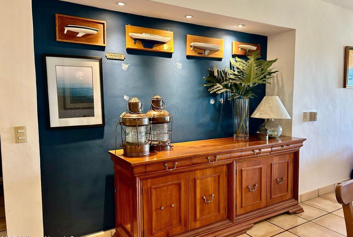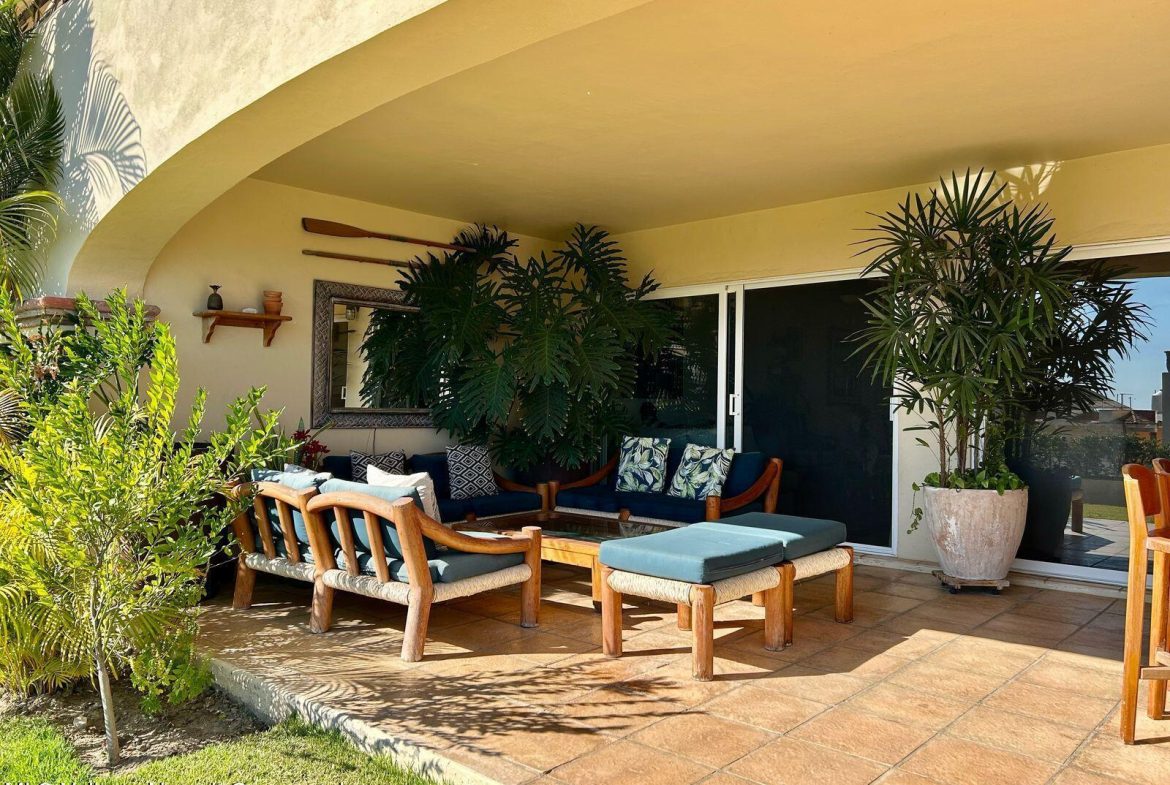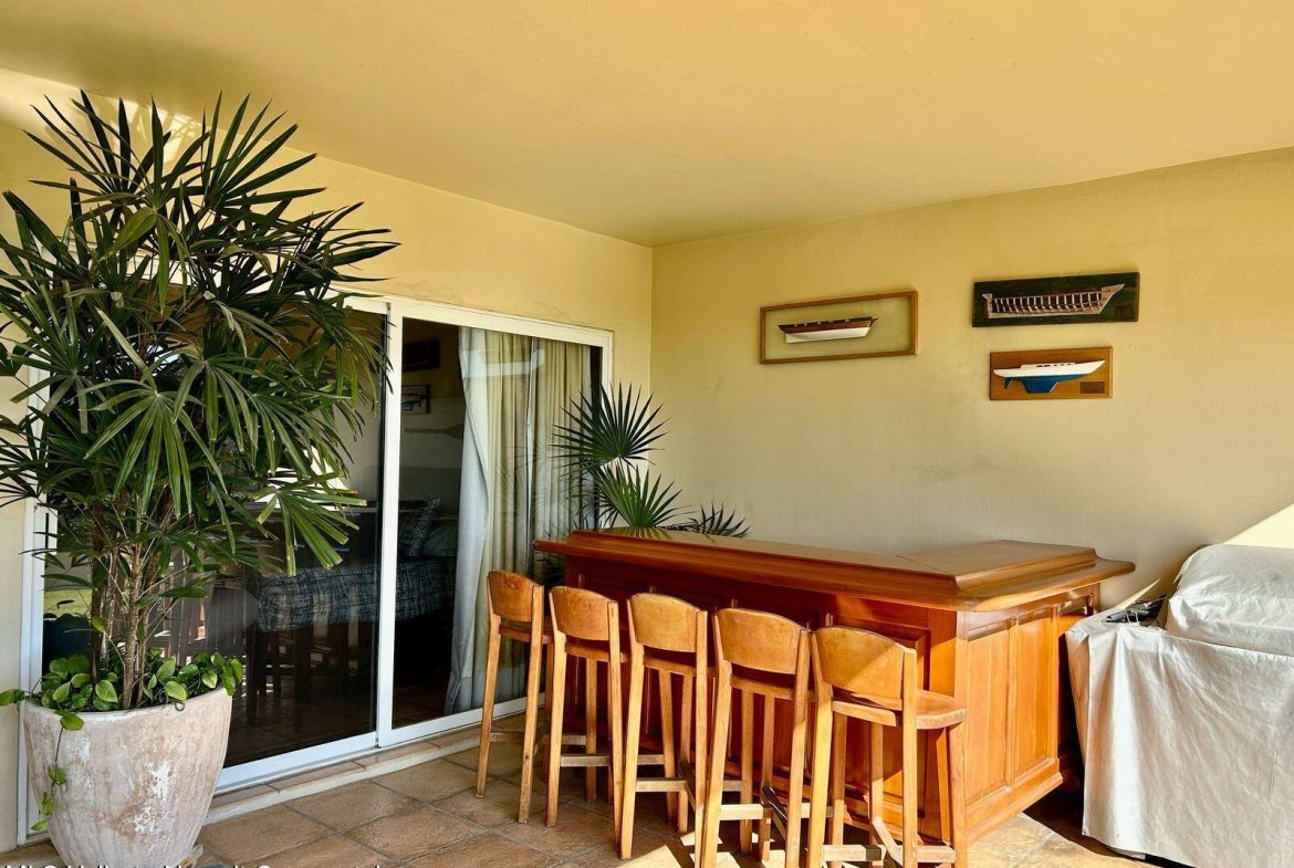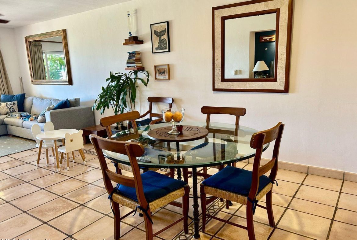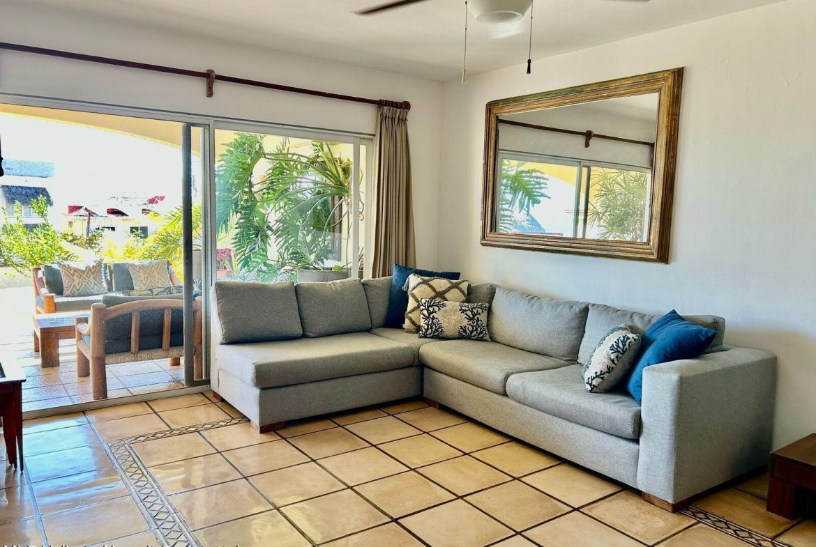 Move-in ready condo at El Anclote 1104, featuring two bedrooms, two bathrooms, and a full laundry room. Located on the first floor, it offers access to a 50-foot garden, providing a sense of extra space from your terrace.This unit comes with numerous upgrades, including independent mini-split air conditioning in every room, rustic Mexican wood furniture, a terrace cantina, ceiling fans, and televisions. Enjoy stunning ocean views of Anclote Bay, one car parking space and walking distance to several surf spots.Condominio El Anclote is a beautiful, high-end development featuring 24-hour security, a 20-meter pool, and spacious grassy areas, tennis court all located in the heart of El Anclote