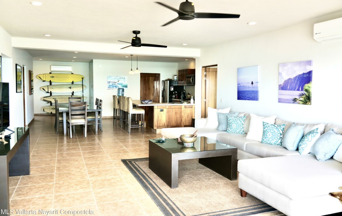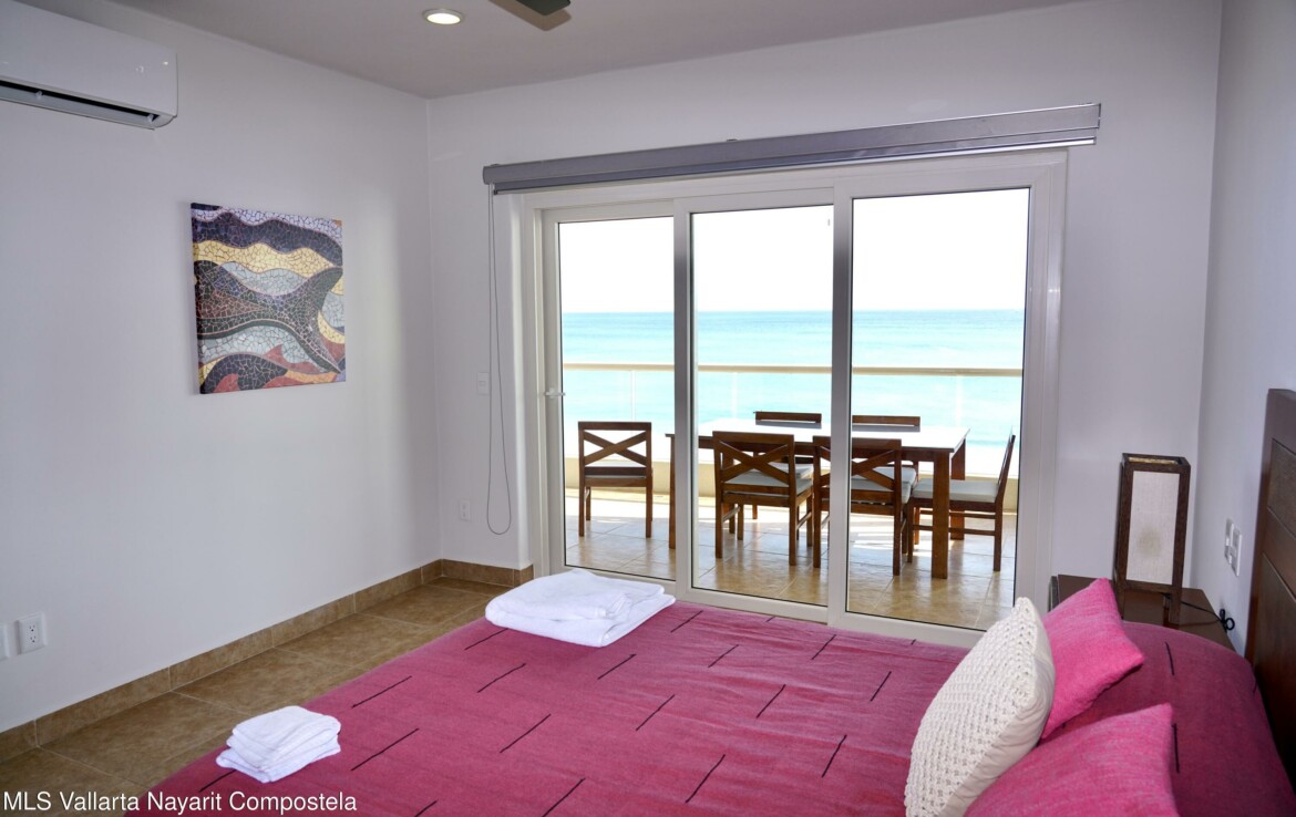 Welcome to your dream coastal getaway! Located in the sought-after El Faro Real I complex in Punta de Mita, this stunning 2-bedroom, 2-bathroom beachfront condo offers an unbeatable combination of comfort, style, and breathtaking ocean views.Perched on the third level (6 floors), this beautifully maintained residence boasts panoramic views of the Pacific Ocean, just steps from the soft sands and gentle surf. The open-concept living and dining area flows effortlessly onto a spacious private terrace, perfect for enjoying morning coffee or sunset cocktails.Whether you’re looking for a vacation retreat, a full-time residence, or an investment opportunity, this condo delivers coastal living at its finest.”Each condo occupies an entire floor so no common walls with neighbors”