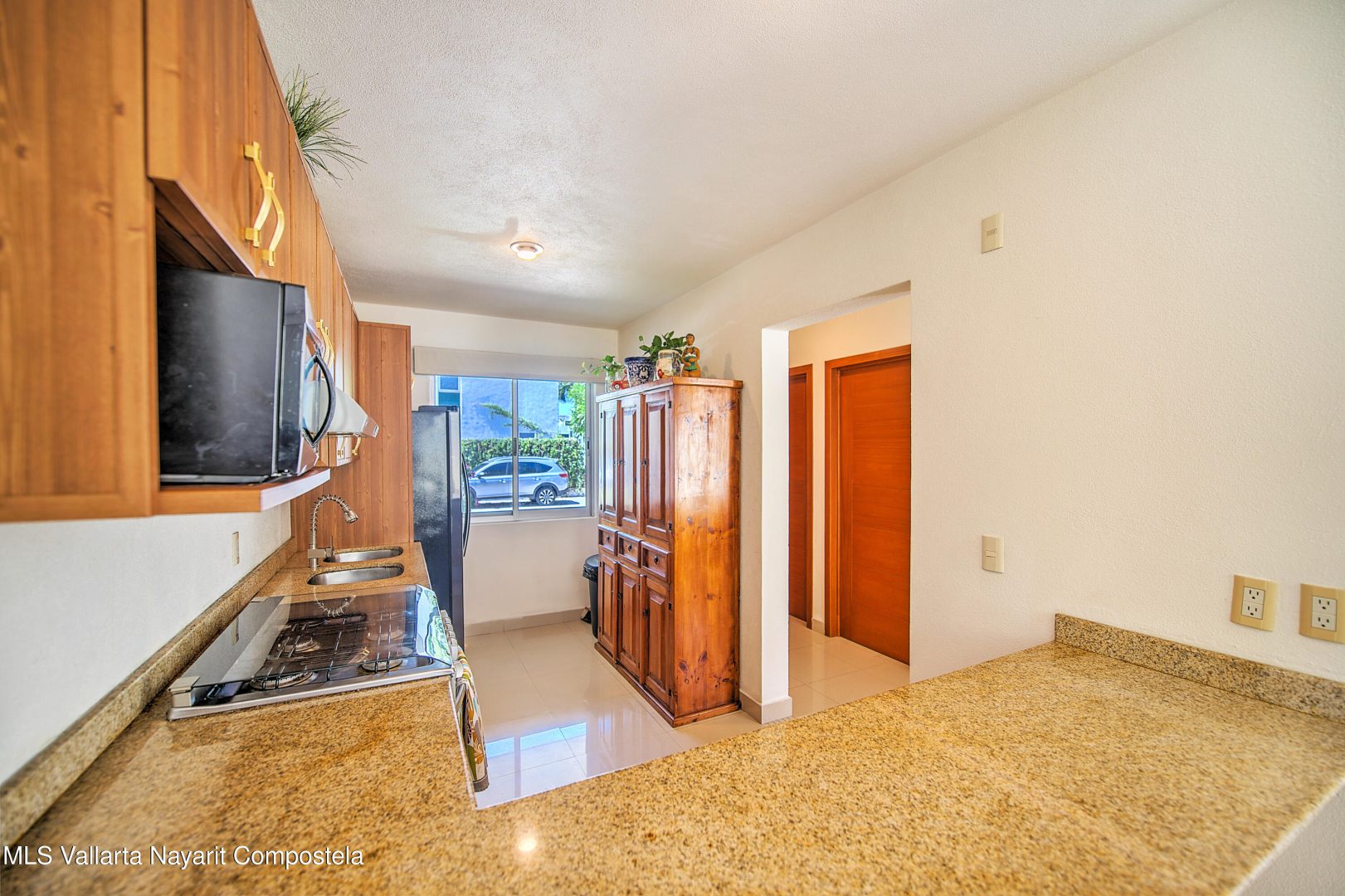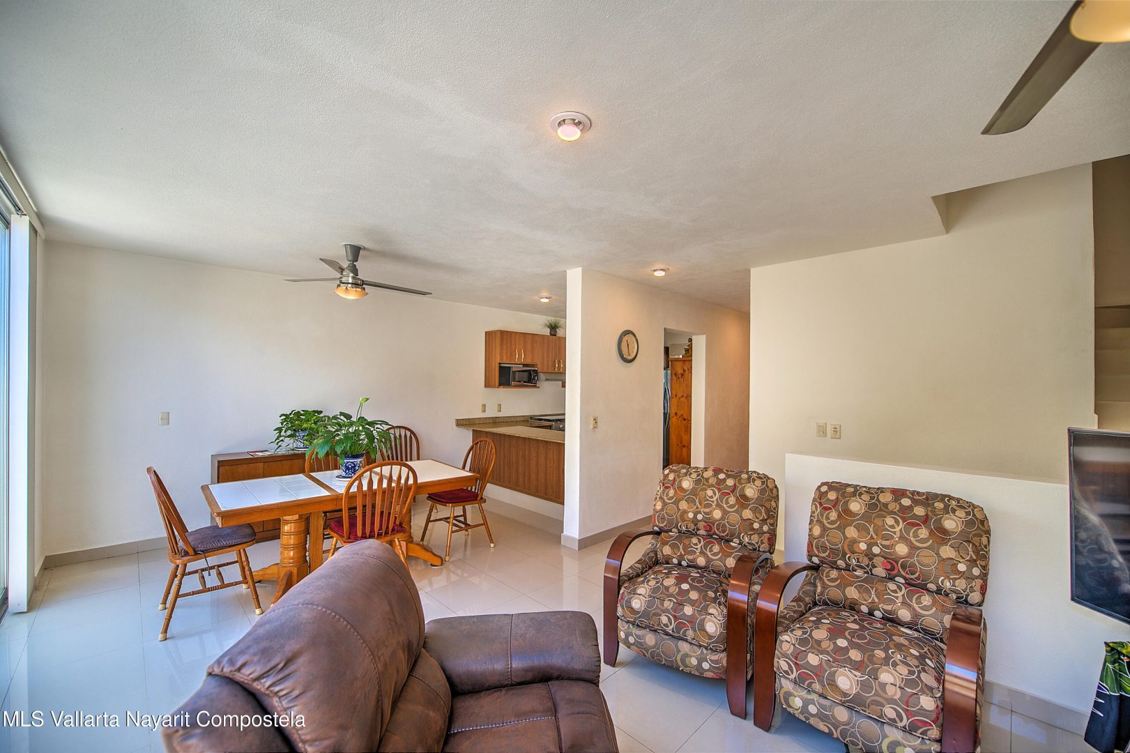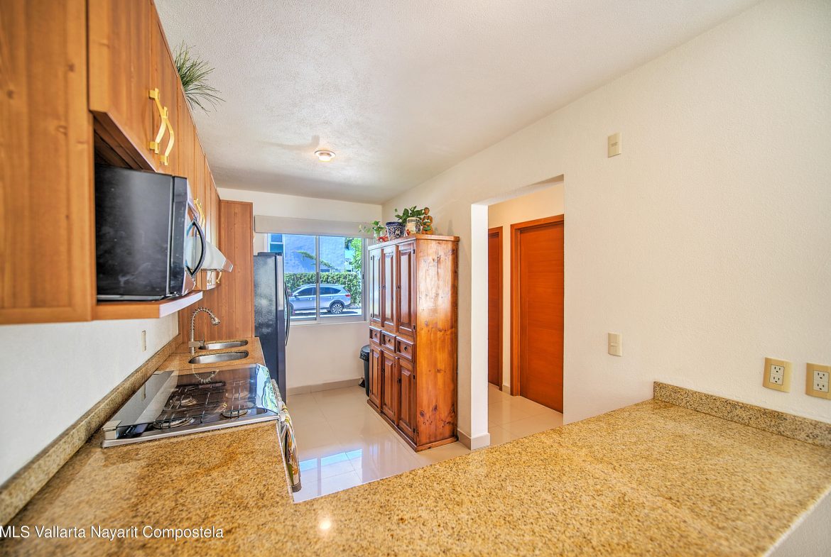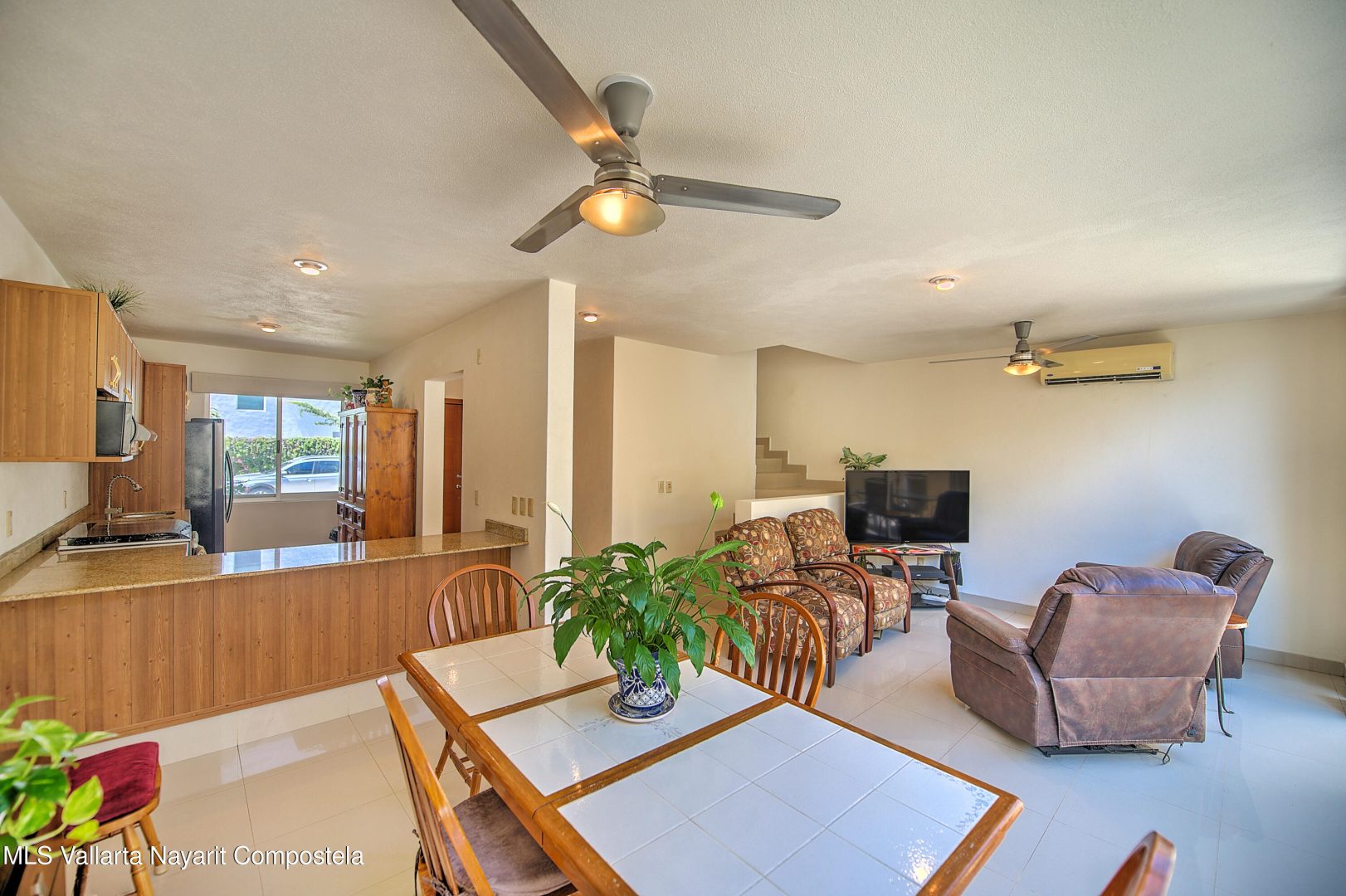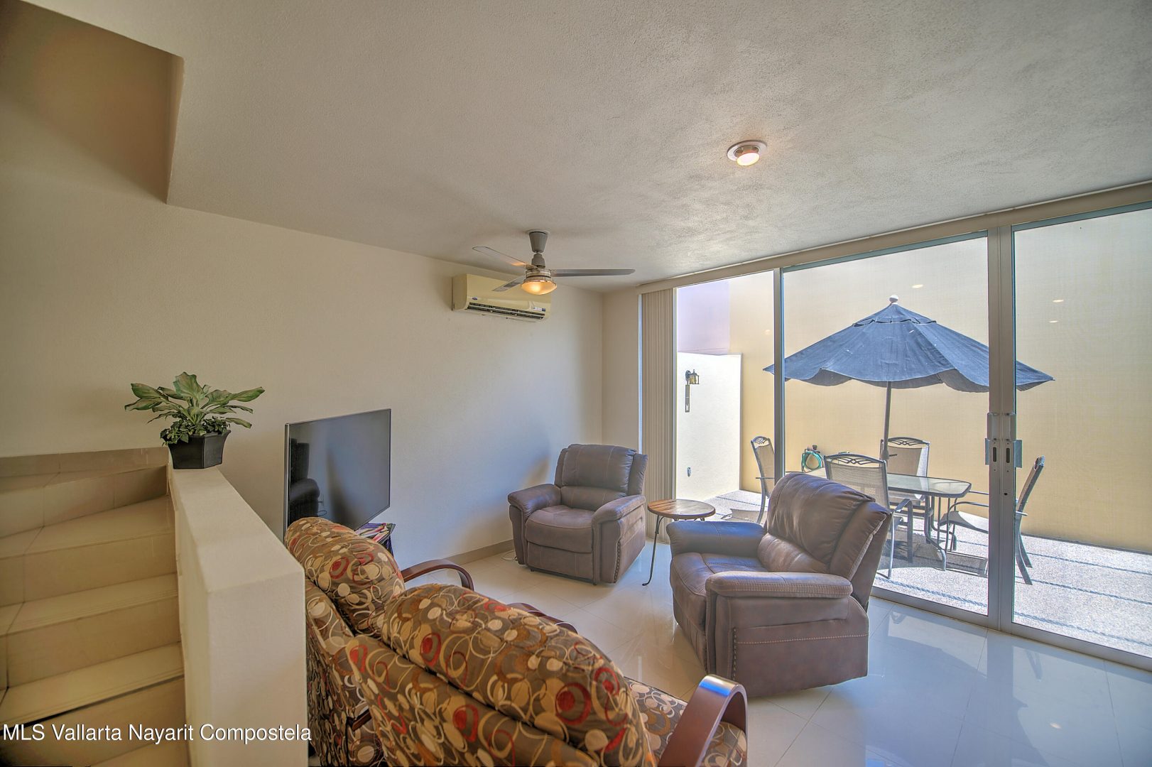 Espanol abajo. Beautiful 3-bedroom, 3-full-bath home nestled in the gated community of Entre Rios, located in the tranquil and conveniently accessible area of Fluvial Vallarta. Perfect for a family or a couple, this ideally situated residence features a comfortable layout with three spacious bedrooms upstairs, including a serene and elegant primary suite with an ensuite bathroom and walk-in closet. Downstairs, the living room opens to a private, peaceful patio–perfect for entertaining and enjoying the seamless indoor-outdoor living that tropical homes offer. The fully renovated kitchen boasts high-quality finishes, complemented by a spacious laundry room with storage. Upgrades throughout, make this a truly exceptional and value-packed property to enjoy all the best