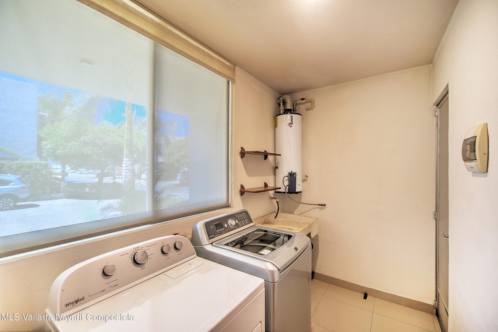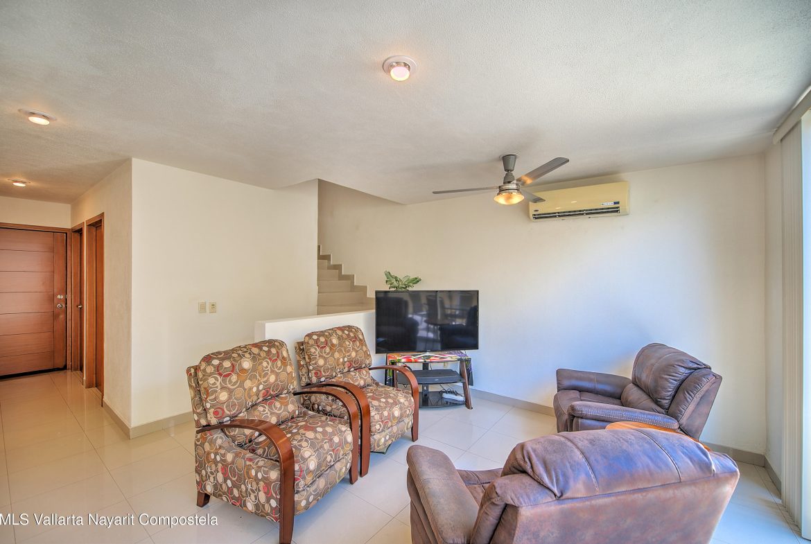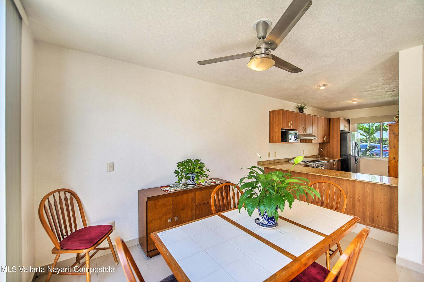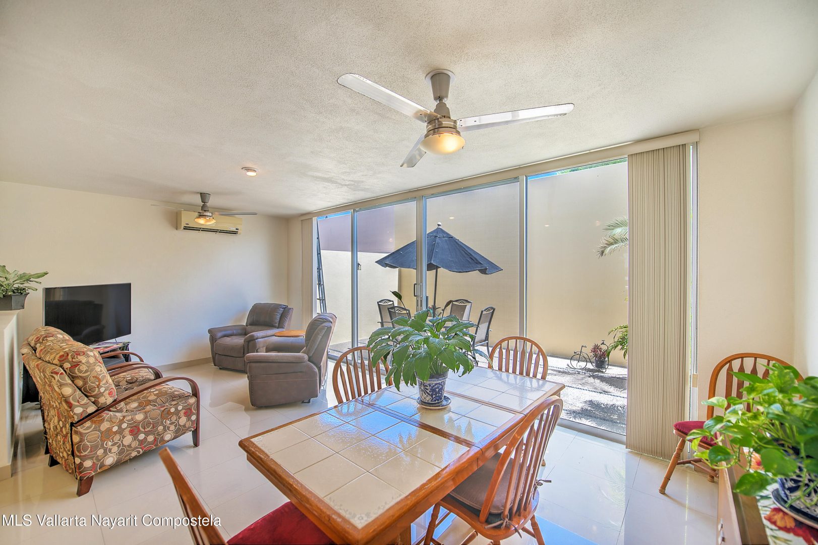 Espanol abajo. Beautiful 3-bedroom, 3-full-bath home nestled in the gated community of Entre Rios, located in the tranquil and conveniently accessible area of Fluvial Vallarta. Perfect for a family or a couple, this ideally situated residence features a comfortable layout with three spacious bedrooms upstairs, including a serene and elegant primary suite with an ensuite bathroom and walk-in closet. Downstairs, the living room opens to a private, peaceful patio–perfect for entertaining and enjoying the seamless indoor-outdoor living that tropical homes offer. The fully renovated kitchen boasts high-quality finishes, complemented by a spacious laundry room with storage. Upgrades throughout, make this a truly exceptional and value-packed property to enjoy all the best