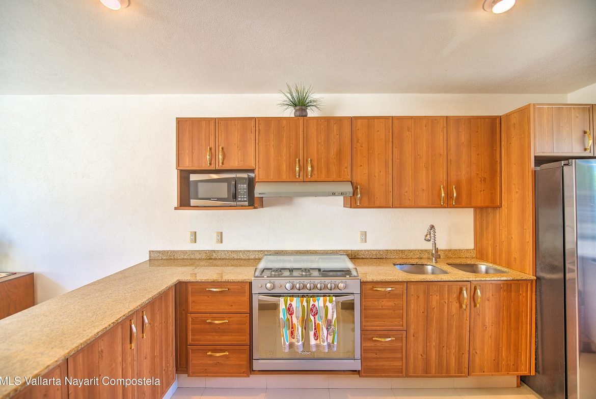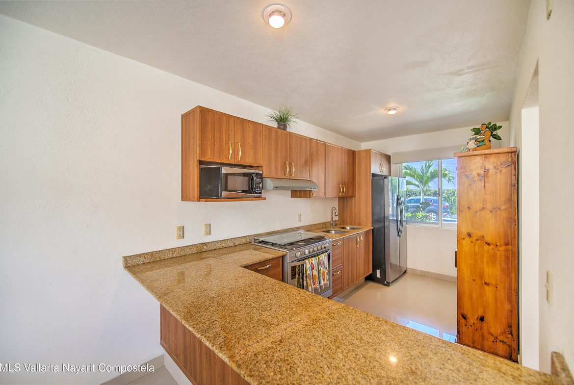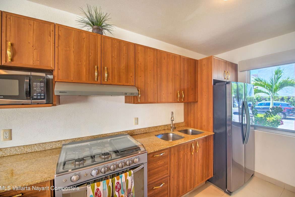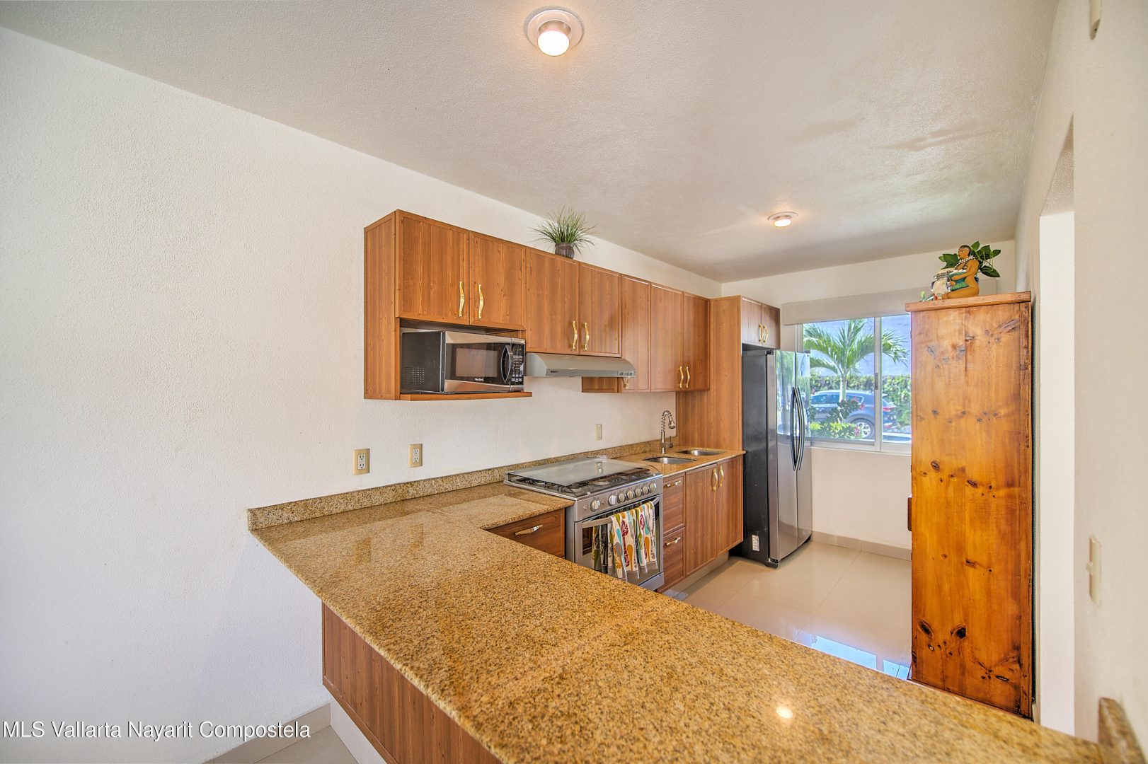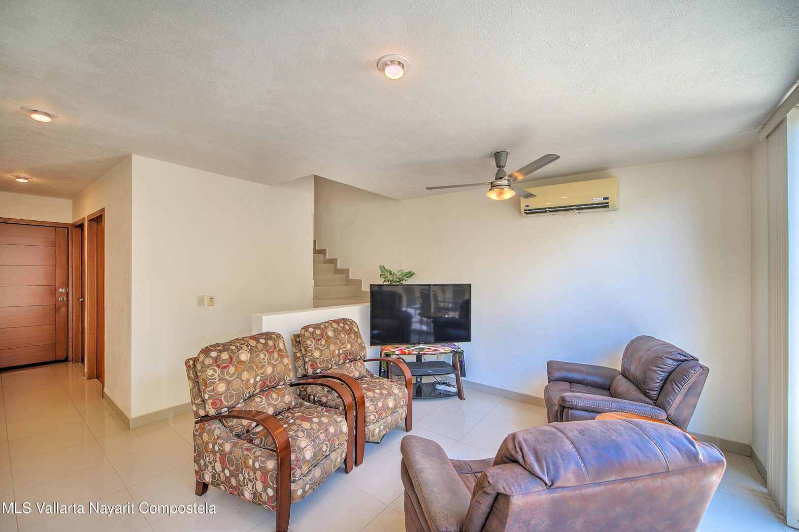 Espanol abajo. Beautiful 3-bedroom, 3-full-bath home nestled in the gated community of Entre Rios, located in the tranquil and conveniently accessible area of Fluvial Vallarta. Perfect for a family or a couple, this ideally situated residence features a comfortable layout with three spacious bedrooms upstairs, including a serene and elegant primary suite with an ensuite bathroom and walk-in closet. Downstairs, the living room opens to a private, peaceful patio–perfect for entertaining and enjoying the seamless indoor-outdoor living that tropical homes offer. The fully renovated kitchen boasts high-quality finishes, complemented by a spacious laundry room with storage. Upgrades throughout, make this a truly exceptional and value-packed property to enjoy all the best