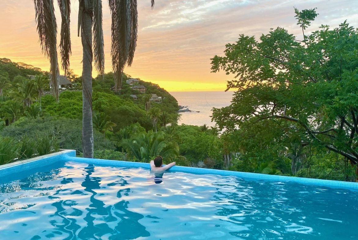 Stunning private two-home retreat just a short walk to Sayulita’s plaza but worlds away! Contemporary Estrella del Mar sits in an exclusive neighborhood directly above Playa Los Muertos, Sayulita’s best swimming beach. It boasts sweeping views of open ocean and virgin jungle. Its elegant interiors are carefully designed to frame the gorgeous views. And the expansive, private infinity pool is simply spectacular!Provides a lucrative, turnkey 5-star rental business AND offers room to grow with a dramatic ocean-view home site. Includes plans for a large home, existing foundation, satellite internet, whole-house a/c in both homes, solar-heated pool, 2 car garage, security system & website. Wired with cat 6e & ready for high-speed fiber optic internet. A rare opportunity for digital nomads!