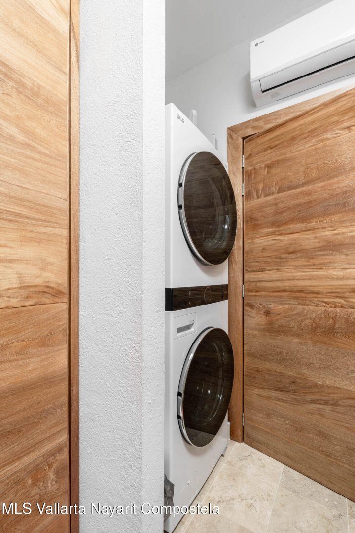 Biggest Unit at Faro de Mita, this beautiful 2 bedroom, 2 bathroom Condo, on the first floor of the Faro de Mita complex, with an excellent location, close to the town center of Punta de Mita, with direct access to the beach. The Unit is decorated with designer furnishings and high-end appliances. The both master bedroom and second bedroom have a king-sized bed, private bath with a large walk-in shower, large closet and additional storage. Laudry room has bunk beds that can be pulled up and down to accommodate guest comfortably. It has a fantastic private balcony, comfortable and spacious living spaces.