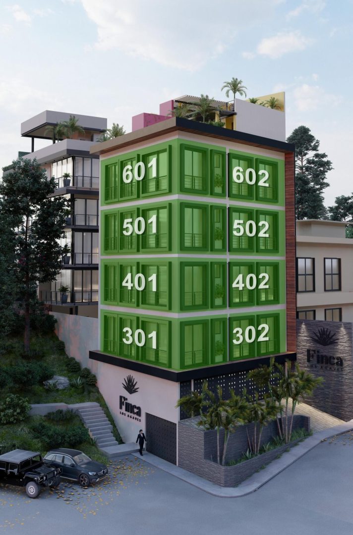 La esencia de la vida tropical le espera en esta nueva coleccion boutique de solo 8 apartamentos, donde la vitalidad de Mexico se combina con la comodidad moderna. Con una ubicacion privilegiada cerca de la Zona Romantica y vistas a la ciudad, la montana y el mar, en Finca Los Agaves se sentira en casa.Podra elegir entre dos planos de planta que ofrecen disenos bien pensados orientados hacia la ciudad, las montanas y el mar, todos ellos con ventanales de suelo a techo que permiten la entrada de luz natural y unas vistas increibles. Acabados de alta calidad y una paleta de colores organica realzada con una rica carpinteria daran la bienvenida a sus toques de diseno personal, para crear un hogar que sea exclusivamente suyo.Inspirada en la vitalidad y el espiritu de