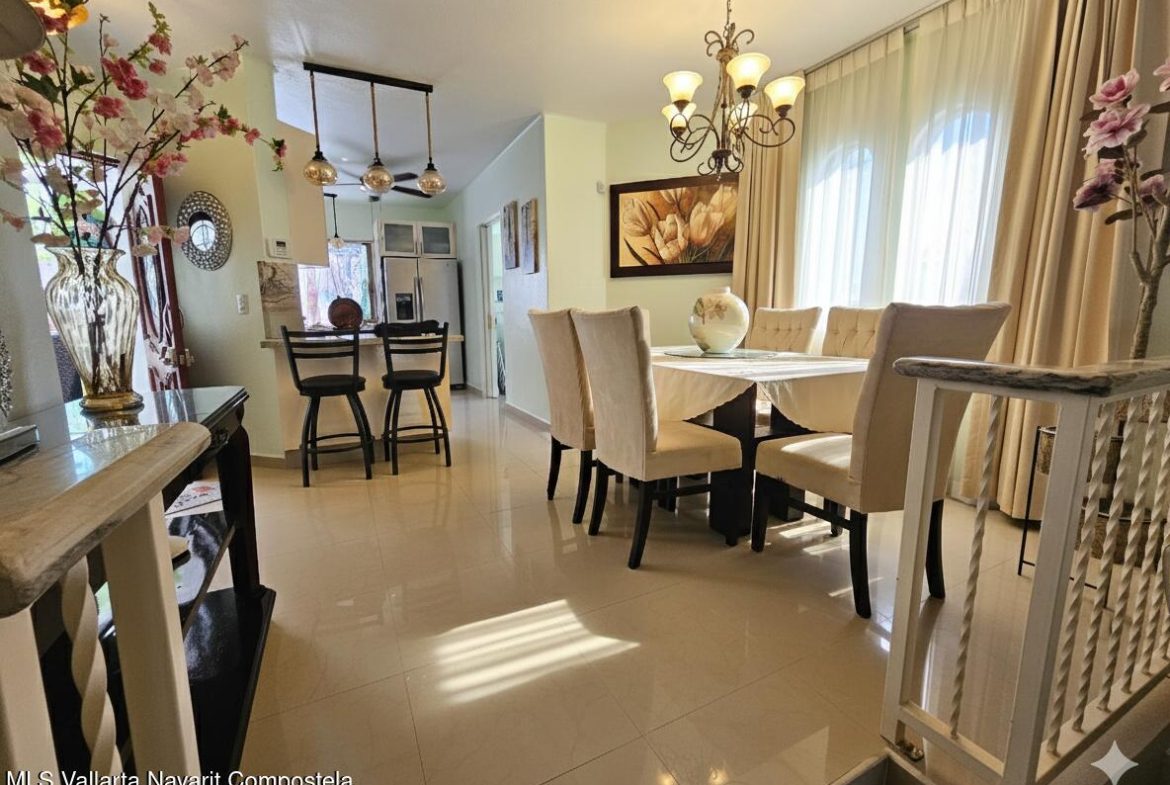 ENGLISH BELOW – SEE THE VIDEO: Oportunidad Unica! Casa Exclusiva en Flamingos Golf. Ubicada en Flamingos Golf, esta casa ofrece un estilo de vida de tranquilidad y conveniencia. Se encuentra justo frente al nuevo Home Depot y a solo minutos de La Comer de Nayarit. Disfrute de un area excepcionalmente tranquila y segura.Lista para Habitar! Se Vende Amueblada: Esta hermosa residencia ha sido decorada con muy buen gusto y se entrega completamente amueblada. Simplemente trae tus maletas y comienza a disfrutar.Caracteristicas Clave del InmuebleTerreno 305 m2Construccion 193.5 m2Recamaras 3 (uno en primer piso)Banos: 2.5 mas una regadera en lavanderiaPark: Asignada y TechadaMascota bienvenido. Jardin privado cercada
