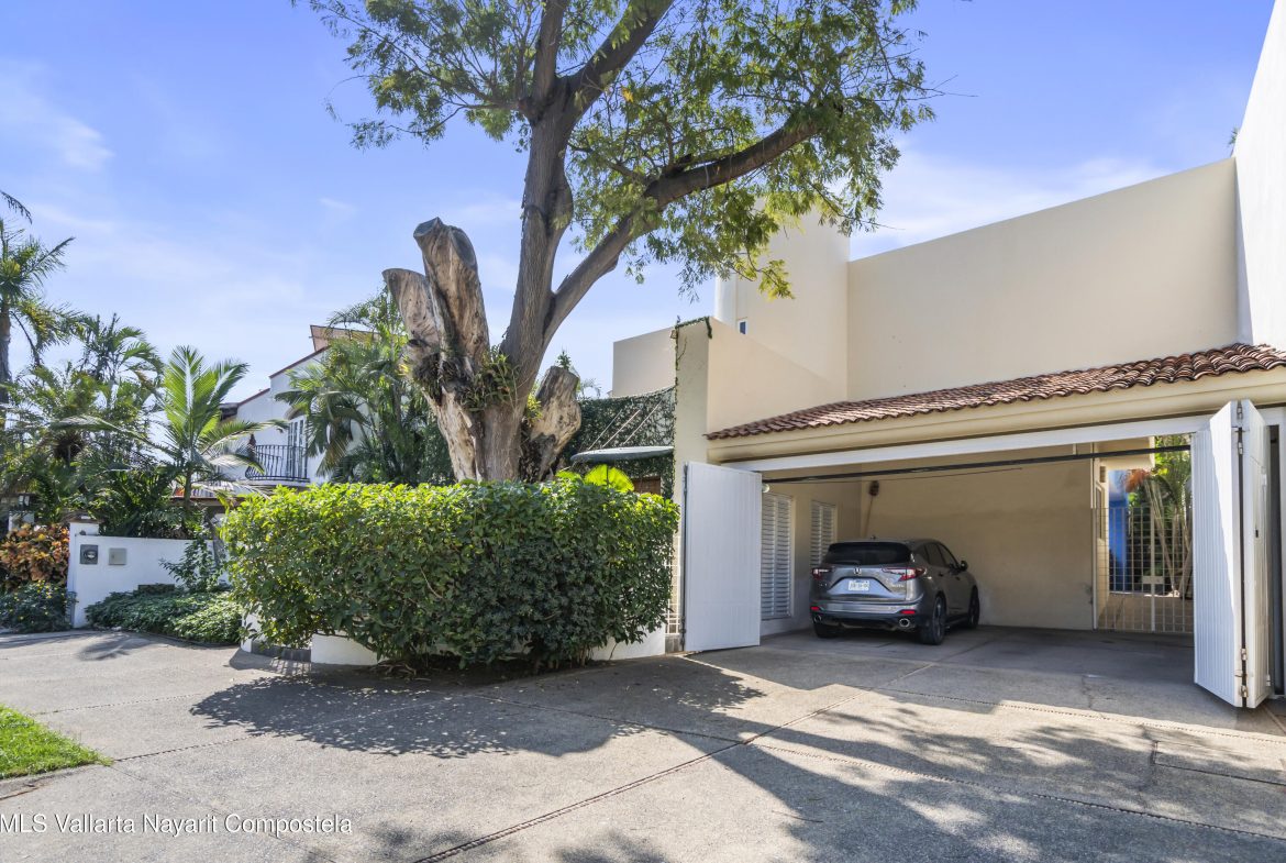 Casa con Jardin y Alberca Privada en el Hoyo 7 – Marina VallartaUbicada frente al Hoyo 7 del campo de golf de Marina Vallarta, esta residencia de dos niveles ofrece una combinacion perfecta de confort, privacidad y estilo de vida resort, dentro de una de las comunidades mas codiciadas de Puerto Vallarta.Desde su majestuosa entrada con un imponente arbol de parota, esta propiedad refleja el equilibrio entre naturaleza y elegancia tropical, ideal para quienes buscan una vida relajada pero cerca de todo.Casa de 2 niveles con diseno funcional y espacios amplios.Cuarto de servicio con acceso independiente, ideal para personal domestico o visitas largas.Cochera cubierta para 2 autos.2 recamaras en planta baja, perfectas para huespedes o adultos mayores.2 recamaras en planta a