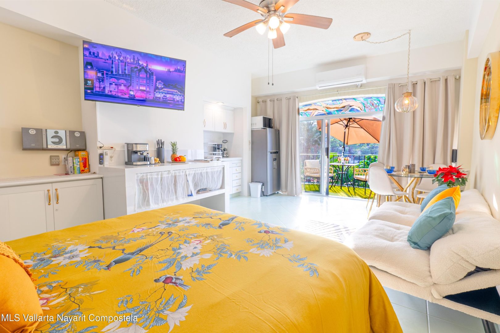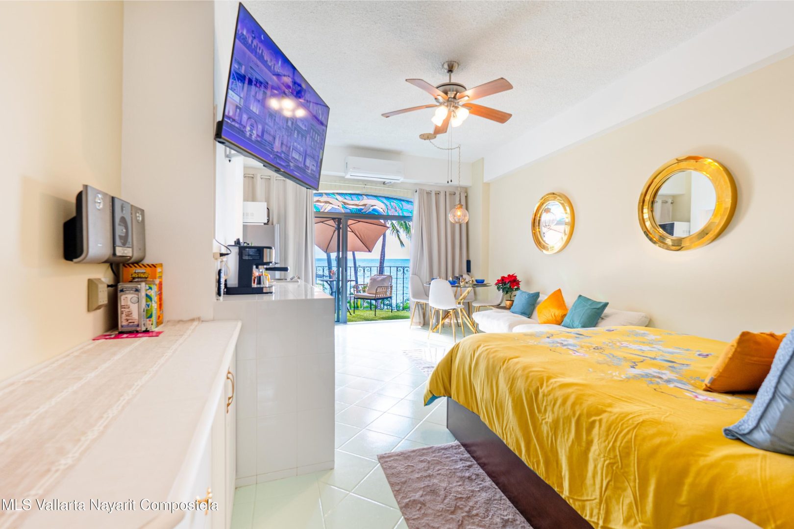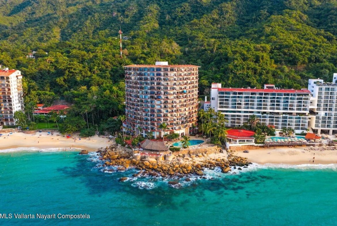 Estudio frente al mar en venta en Playas Gemelas Puerto Vallarta. Con 45.45 m2 fue totalmente renovado en diciembre de 2025 y ofrece vistas panoramicas al oceano acceso directo a la playa y excelente iluminacion natural. Diseno bohemio chic con texturas naturales y tonos azules. Se vende completamente amueblado y listo para operar con cocina equipada utensilios nuevos electrodomesticos blancos y decoracion todo adquirido en diciembre de 2025. Ideal como propiedad de descanso o para renta vacacional a minutos del centro.