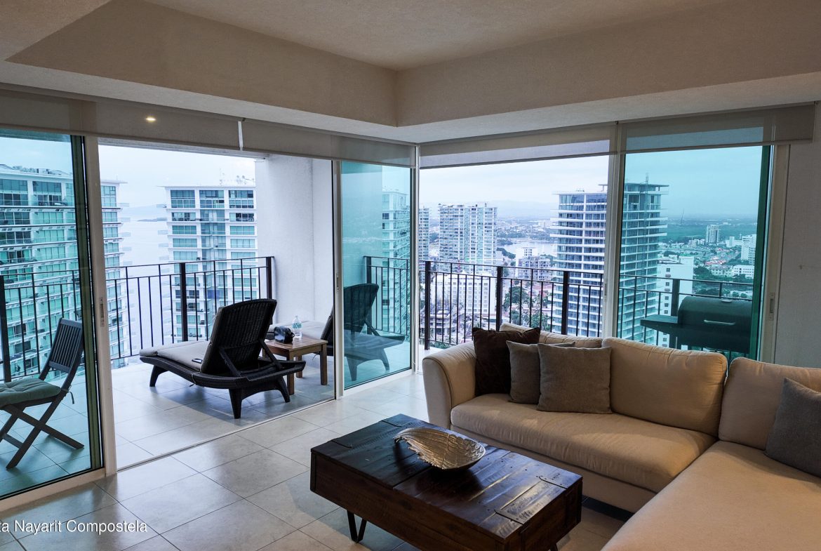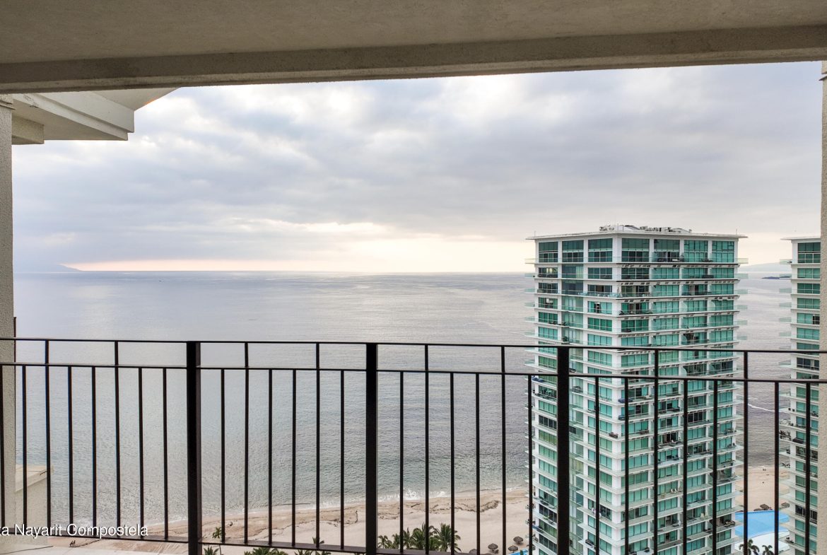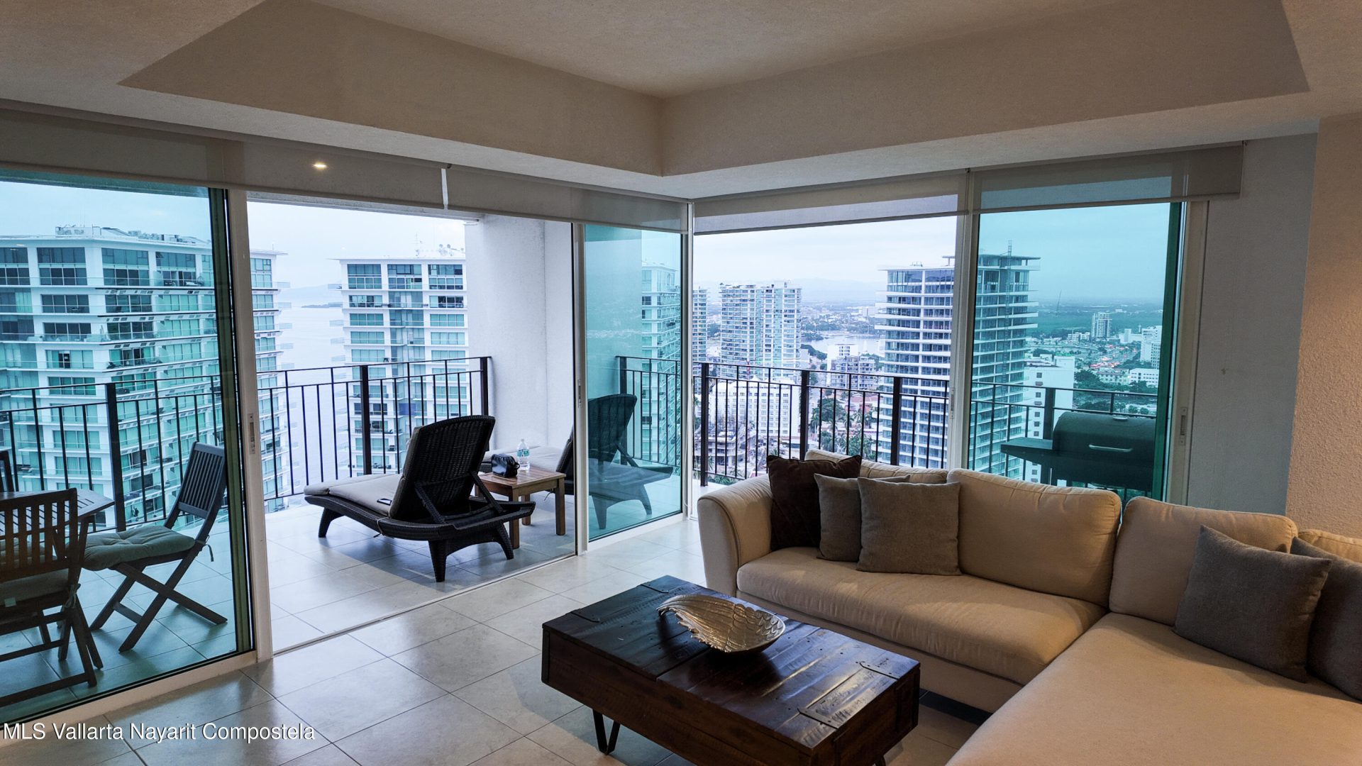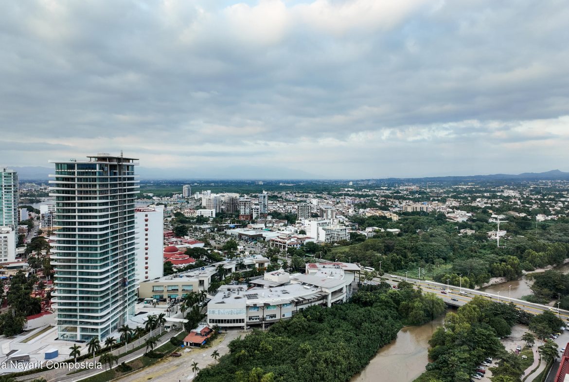 Experience elevated coastal living in this exquisite two-bedroom, two-bathroom residence perched on the 25th floor of the prestigious Grand Venetian. This luxurious oceanfront condo showcases breathtaking views of both the Pacific Ocean and El Pitillal River, beautifully framed by its expansive wraparound terrace–ideal for entertaining or unwinding against the backdrop of vibrant sunsets. The open-concept living area seamlessly integrates indoor and outdoor spaces, creating an inviting ambiance of comfort and sophistication. Each bedroom features its own private balcony, offering sweeping vistas of the city skyline and the majestic Sierra Madre mountains. Residents enjoy access to world-class, resort-style amenities, including three beachfront infinity pools, beautifully landscaped garden