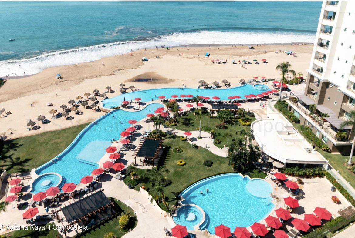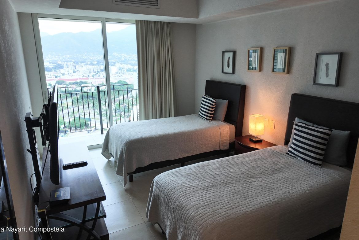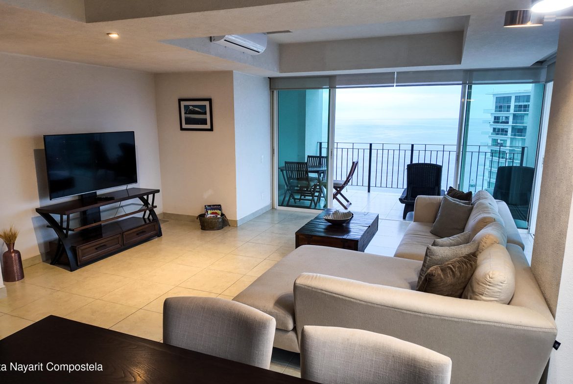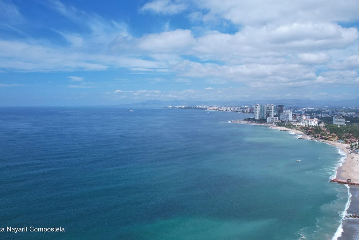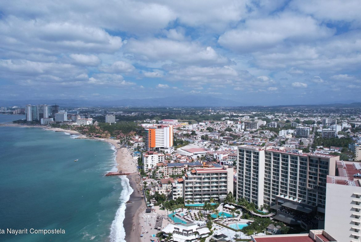 Experience elevated coastal living in this exquisite two-bedroom, two-bathroom residence perched on the 25th floor of the prestigious Grand Venetian. This luxurious oceanfront condo showcases breathtaking views of both the Pacific Ocean and El Pitillal River, beautifully framed by its expansive wraparound terrace–ideal for entertaining or unwinding against the backdrop of vibrant sunsets. The open-concept living area seamlessly integrates indoor and outdoor spaces, creating an inviting ambiance of comfort and sophistication. Each bedroom features its own private balcony, offering sweeping vistas of the city skyline and the majestic Sierra Madre mountains. Residents enjoy access to world-class, resort-style amenities, including three beachfront infinity pools, beautifully landscaped garden
