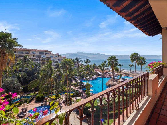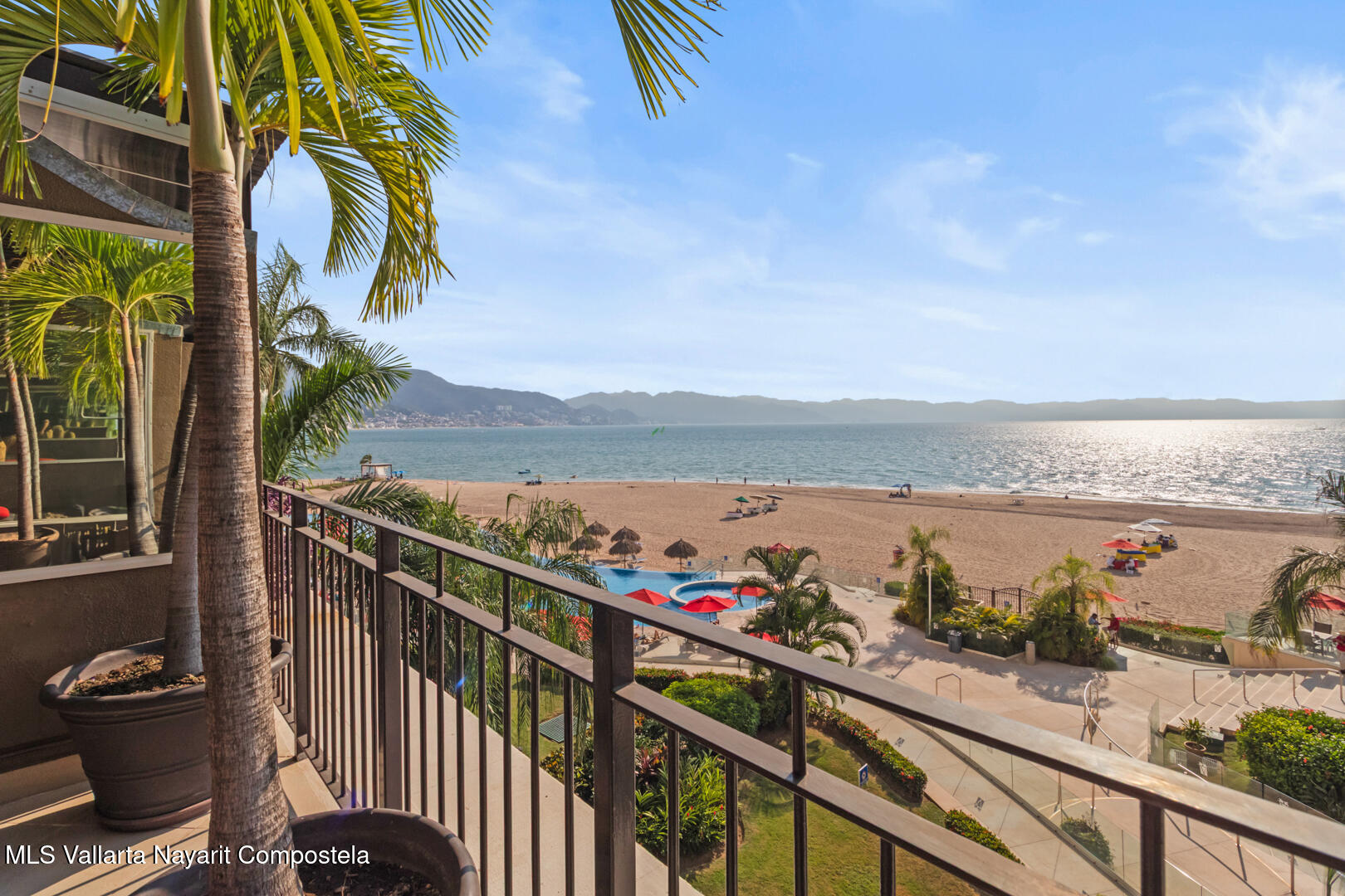Enjoy beautiful bay, beach and town views from this third-floor unit in this elegant beachfront complex. The open floor plan features a kitchen with stainless appliances, custom cabinets and bar seating; comfortable and ample dining/living room which opens to a huge outdoor terrace with panoramic views. The restful master suite with king sized bed features mountain views, spacious closet, and a second outdoor terrace. A stackable washer/dryer, zoned air conditioning and easy care tile floors are just some of the features of this great home. The elegant beachfront complex features 24 hr. security, underground parking, high speed elevators, amazing lobby reception areas and unbelievable pools surrounded by tropical gardens.