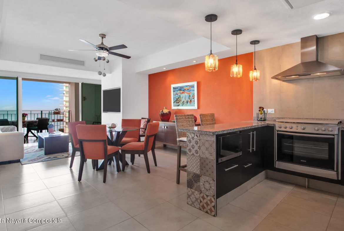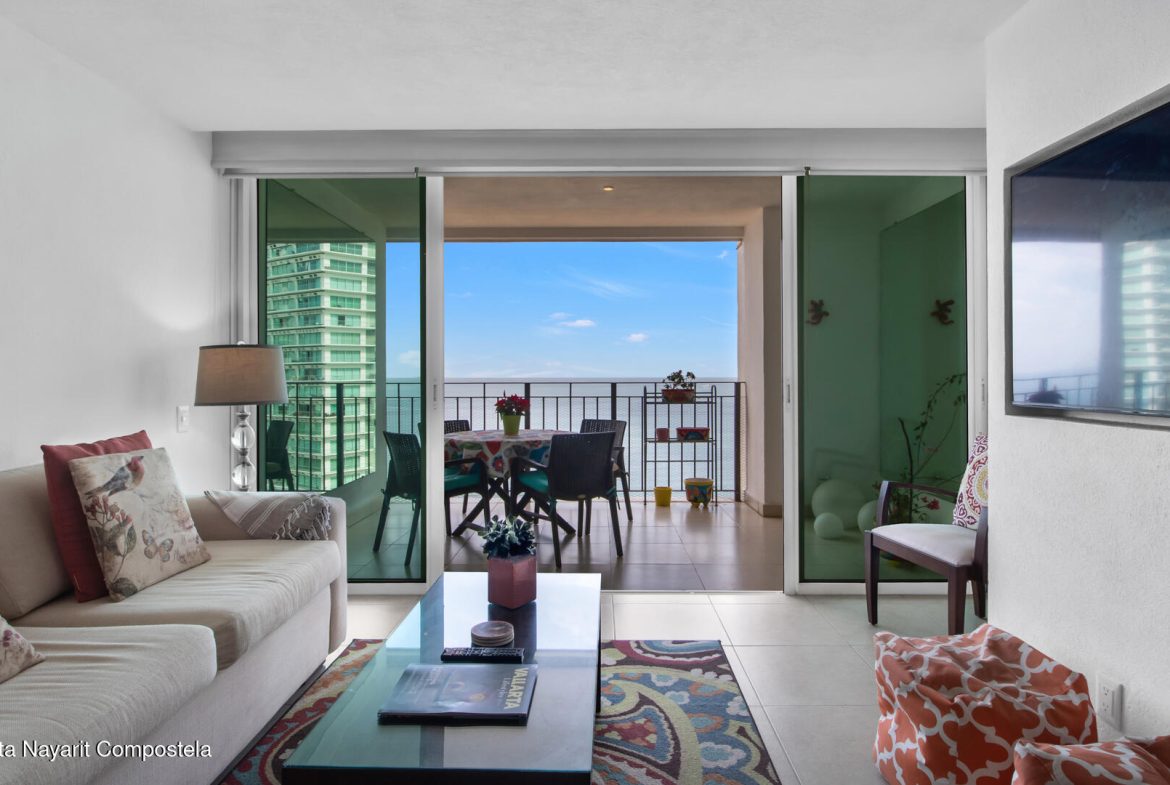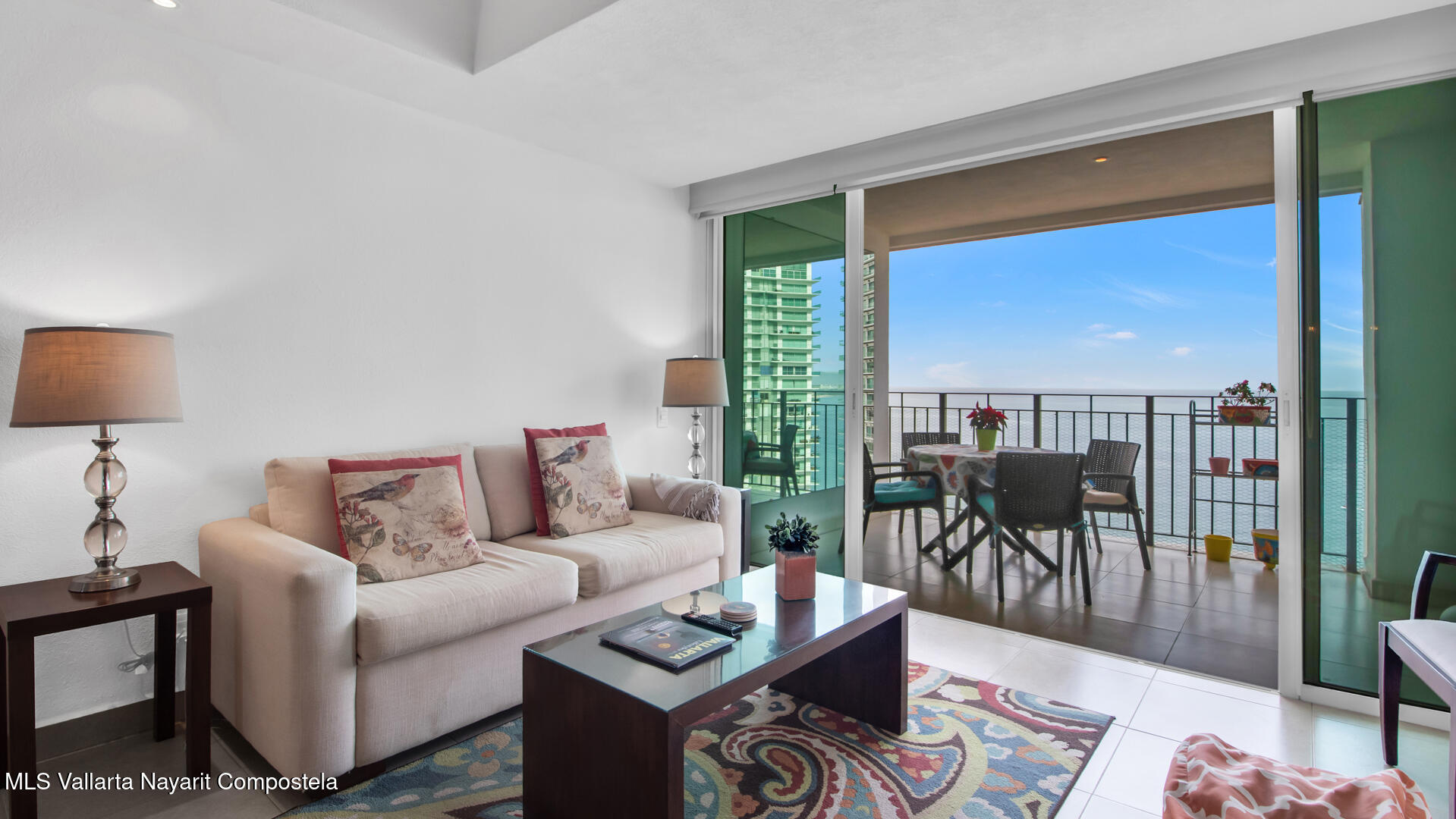 Turnkey and beautifully furnished, this one-bedroom, one-bath condo at the sought-after Grand Venetian offers stunning panoramic views of the bay and mountains. The open layout features a bright living area, a modern kitchen with granite counters, and a spacious terrace perfect for outdoor dining and sunset watching. The bedroom enjoys terrace access and sweeping city and mountain views.Grand Venetian offers resort-style amenities including multiple pools, a gym, tennis court, on-site restaurant and bar, lush common areas, and secured access. Ideal as a vacation home, full-time residence, or investment property in one of Vallarta’s most desirable beachfront communities.