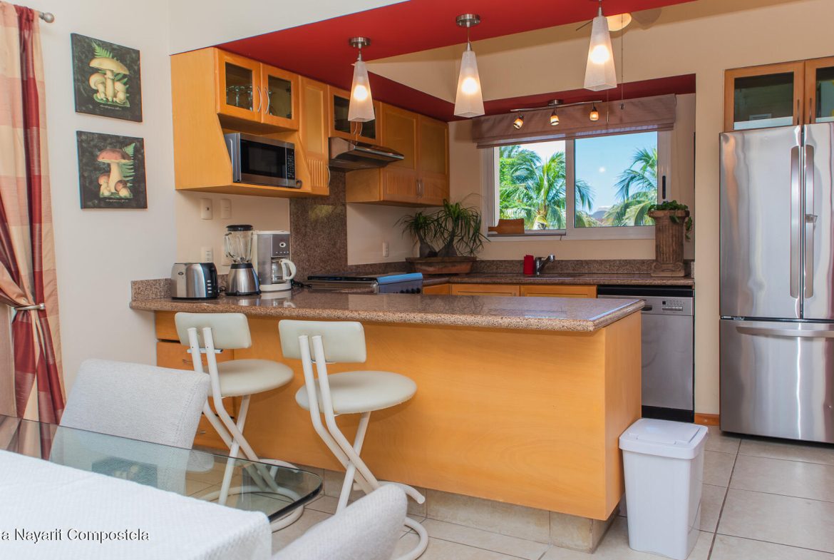 A great corner unit for sale inside the most desirable community as El Tigre in Nuevo Nayarit, this turn key condo in Green Bay II offers a peacefully living with 1 bedrooms, and 1.5 bathrooms, with a nice kitchen fully equipped and a nice balcony overlooking the green area. El tigre is close by shopping mall, restaurants, bars, beach access, airport its about 30 minutes driving. The most affordable condo in the area with a living that El Tigre offers.