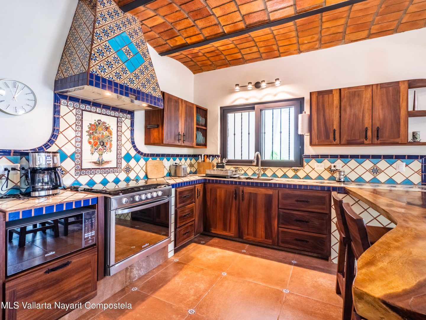 Hacienda Katherine is an architectural gem nestled in the peaceful residential area of Sayulita. Designed by renowned architect Estela Mendoza, it blends authentic Mexican charm with functionality and investment potential. The property features 5 independent casitas, a pool, lounge area, beverage bar, gardens, solar panels, laundry area, covered parking, and a secure garage. Perfect for a boutique hotel, vacation rental, or multigenerational retreat. With mountain views, privacy, and unique design, this property is a rare opportunity. Each casita offers private access and unique features. Enjoy open-air living, lush landscaping, and versatile spaces ideal for both personal use and income generation. This property offers endless potential to bring your vision to life.