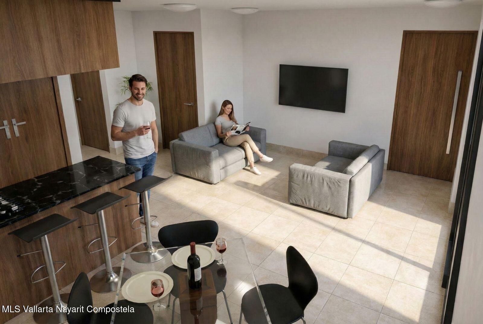 HARAMARA BUCERIAS | Boutique Pre-construction & PH Residence An exclusive, low-density pre-construction development featuring only 4 units with high-end contemporary finishes. This PH Residence is located on the second level, offering an elevated living experience with superior privacy and exclusivity. The unit features 2 bedrooms, 2 full baths, an integral kitchen, and a bright open layout. Its standout features are the outdoor living spaces: a private balcony and a stunning private terrace with wooden pergolas, specifically designed to provide shade and comfort for effortless outdoor entertaining. Includes 1 parking space.