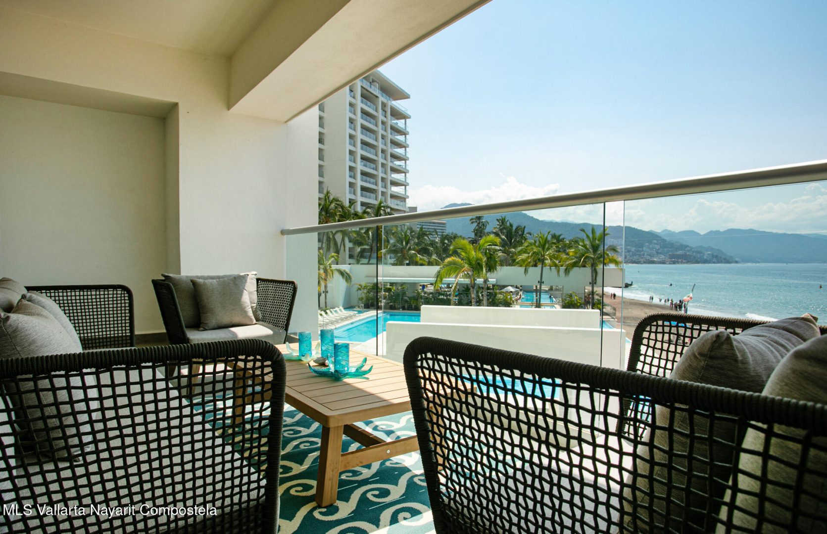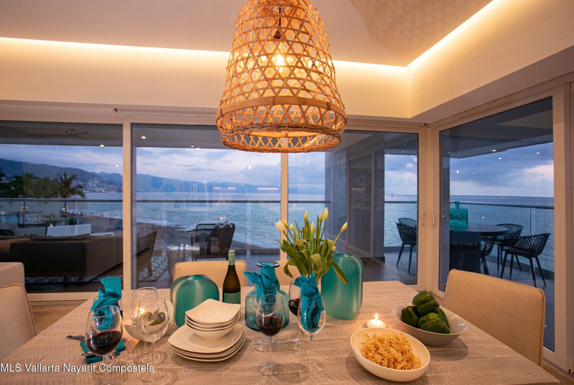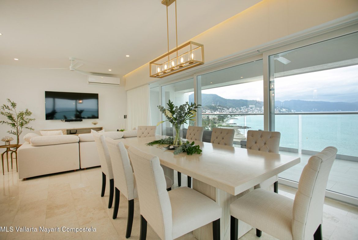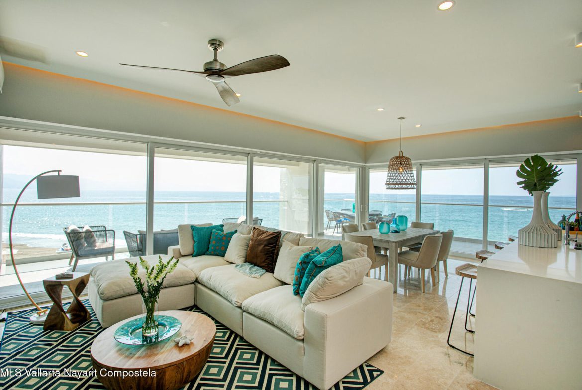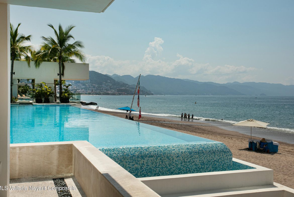 Nestled along the pristine shores of Puerto Vallarta, this brand-new beachfront condo is a serene sanctuary where modern elegance meets coastal charm. Boasting four spacious bedrooms and four luxurious bathrooms, it offers an ideal retreat for those seeking both comfort and sophistication.Floor-to-ceiling windows invite the golden glow of the Pacific sunset into expansive living spaces, seamlessly blending indoor and outdoor living. The open-concept design flows effortlessly, with a sleek, contemporary kitchen that inspires culinary creativity, leading to a sun-drenched terrace where the rhythmic sound of waves soothes the soul.Each bedroom is a private haven, adorned with thoughtful details, serene color palettes, and en-suite bathrooms that exude spa-like tranquility.