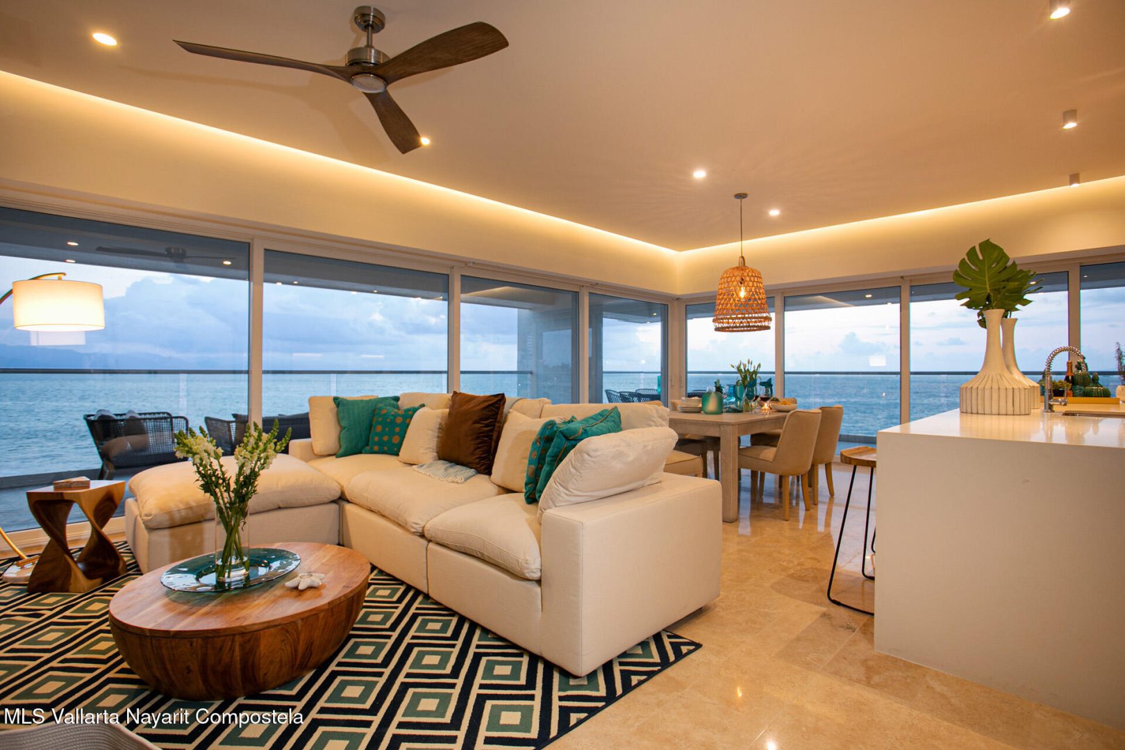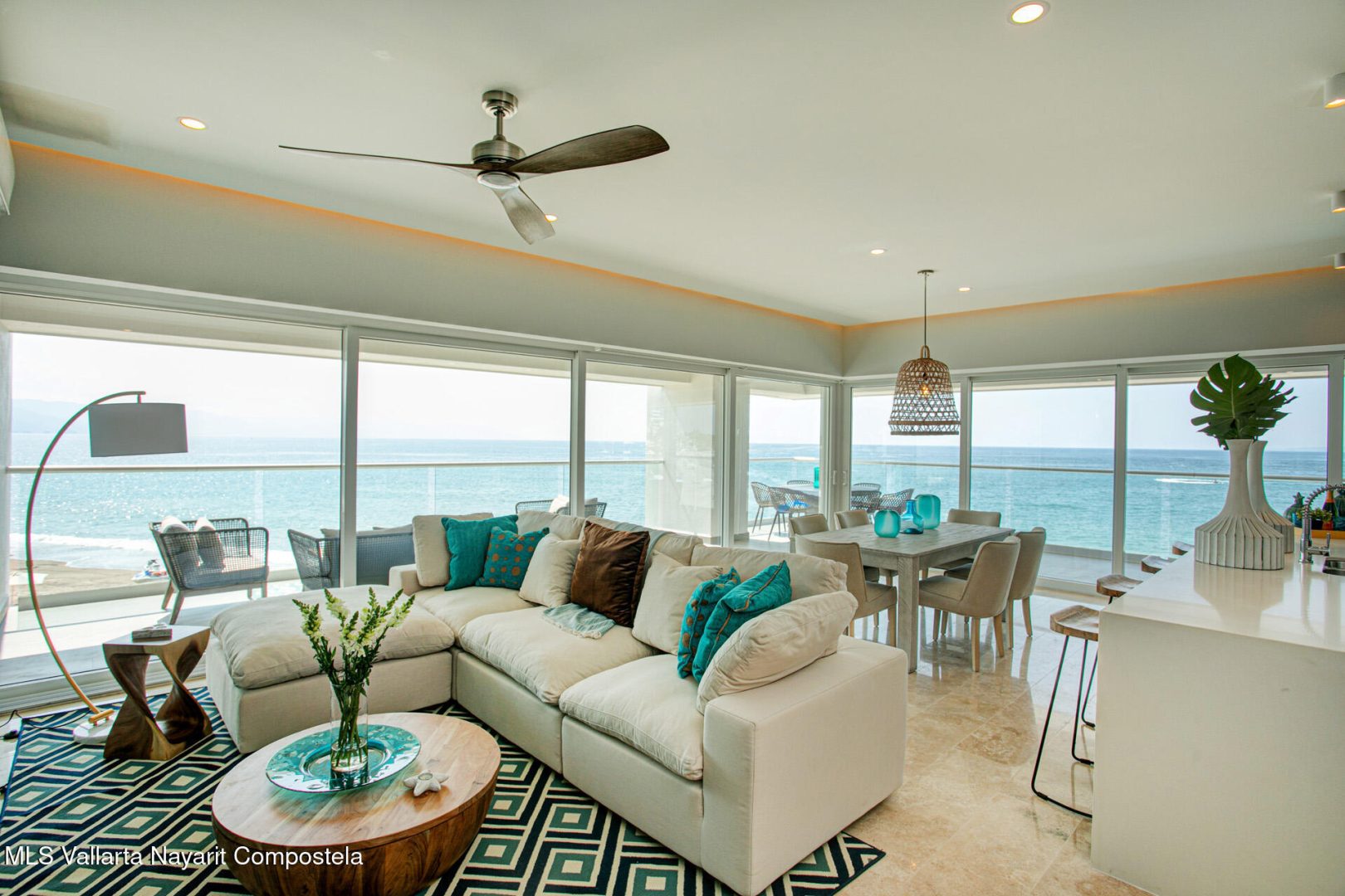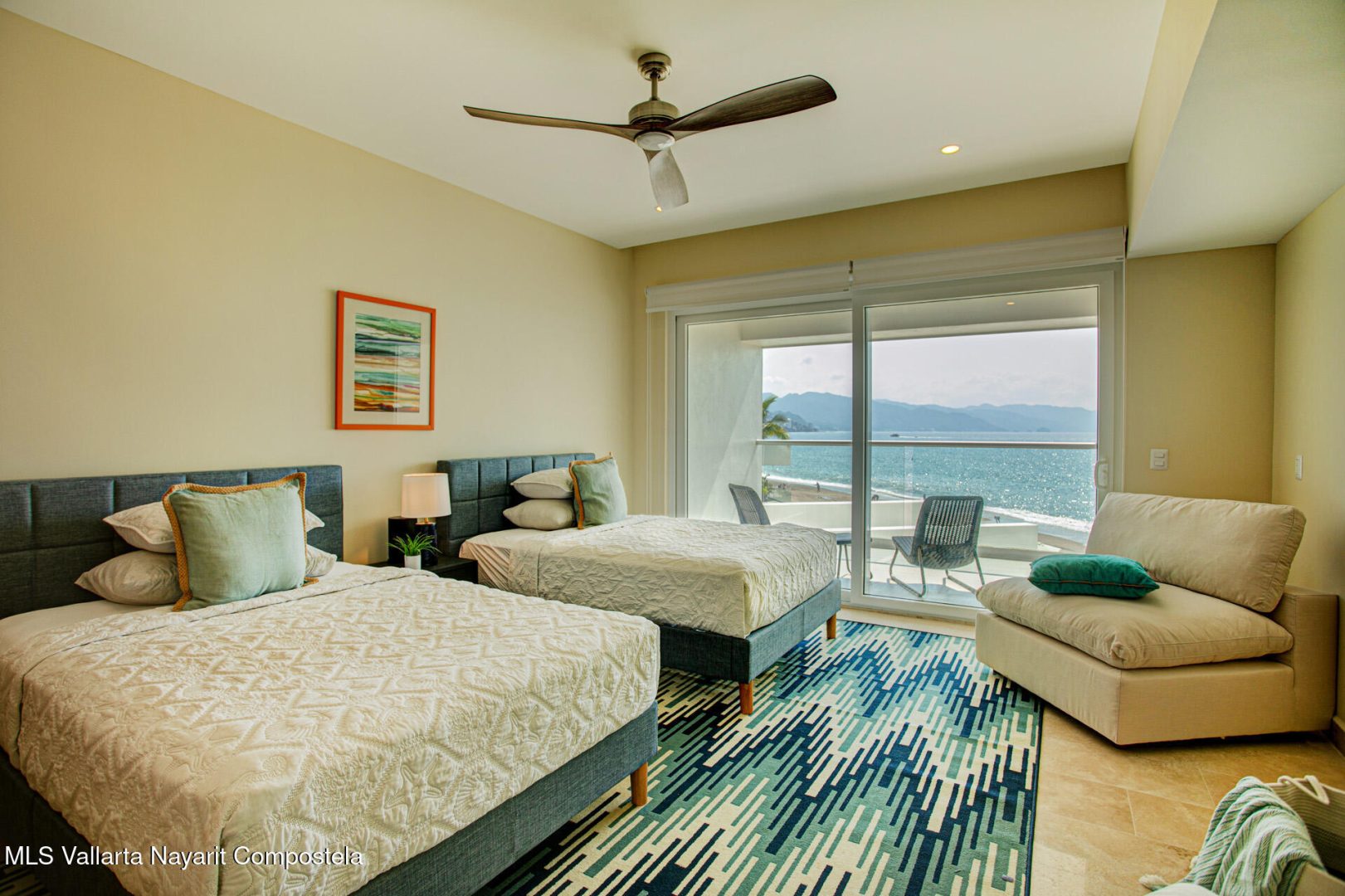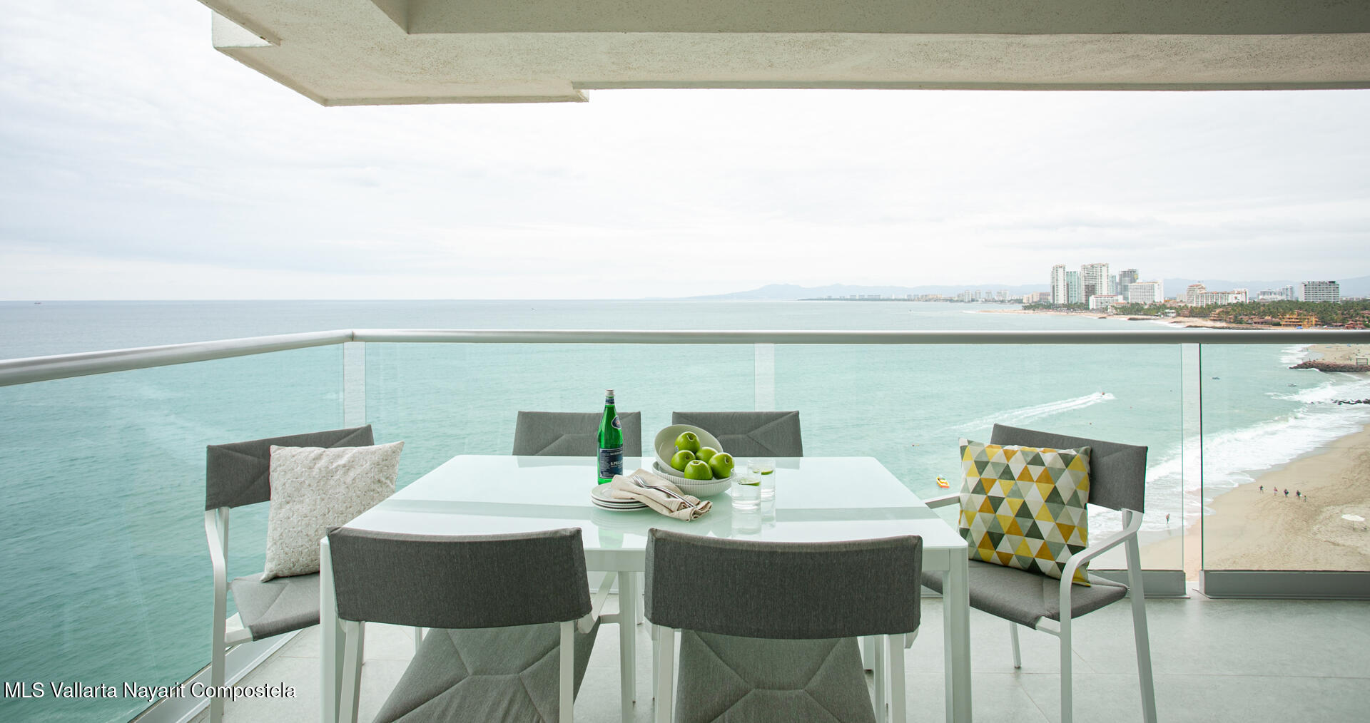 Nestled along the pristine shores of Puerto Vallarta, this brand-new beachfront condo is a serene sanctuary where modern elegance meets coastal charm. Boasting four spacious bedrooms and four luxurious bathrooms, it offers an ideal retreat for those seeking both comfort and sophistication.Floor-to-ceiling windows invite the golden glow of the Pacific sunset into expansive living spaces, seamlessly blending indoor and outdoor living. The open-concept design flows effortlessly, with a sleek, contemporary kitchen that inspires culinary creativity, leading to a sun-drenched terrace where the rhythmic sound of waves soothes the soul.Each bedroom is a private haven, adorned with thoughtful details, serene color palettes, and en-suite bathrooms that exude spa-like tranquility.