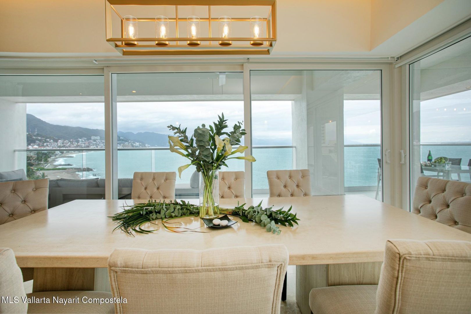 This is a brand new, stunningly beautiful, large beachfront 4 bedroom 4 bathroom condo, with 230 degree generous wrap-around terraces that will leave you in awe when you see it. With a lovely professional furniture package included, this amazing, near downtown Puerto Vallarta oceanfront condo cannot only be understood properly without seeing it in person.This stunning, brand-new beachfront condo near downtown Puerto Vallarta offers the ultimate in luxury coastal living. Boasting four spacious bedrooms and four elegant bathrooms, this residence is perfect for families or those who love to entertain. The open-concept design seamlessly connects the indoor and outdoor spaces, with expansive wraparound terraces that provide breathtaking panoramic views of the ocean, city, and mountains.