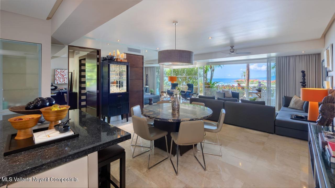 Bienvenido a Horizon 105!Esta magnifica unidad de planta baja, amueblada por disenadores, cuenta con 2 recamaras, 2 banos, una amplia sala de estar y una amplia terraza con hermosas vistas al mar desde casi todas las habitaciones. Gracias a su ubicacion en planta baja, se puede acceder comodamente tanto a la piscina como al estacionamiento (esta propiedad incluye un espacio de estacionamiento seguro) sin necesidad de usar el ascensor ni las escaleras.Horizon es un impresionante edificio ubicado en las colinas de Amapas, a unos 5 minutos en auto de la Zona Romantica. Ademas de seguridad las 24 horas, el edificio cuenta con una gran piscina (y varias piscinas mas pequenas) y un gimnasio bien equipado.