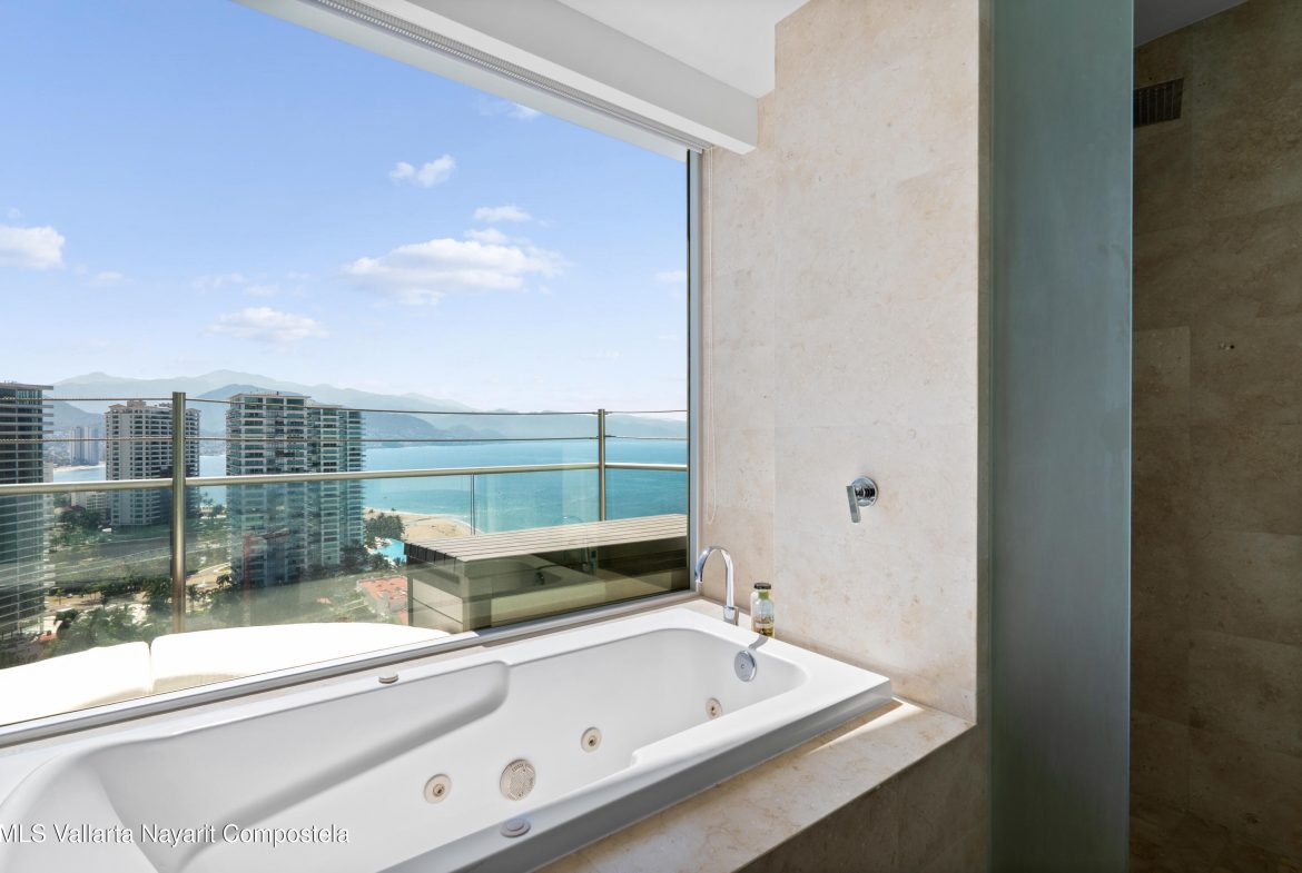 Este departamento en torre #1 piso #24 frente al mar, ofrece unas vistas increibles. Disfrute de la comodidad del acceso directo en ascensor, una elegante cocina con isla, su balcon de esquina a esquina recorre desde la sala, hasta las recamaras. Te permitira disfrutar de la vista al mar, a la ciudad y a la montana, ademas cuenta con un cuarto de servicio que puede adaptarse al uso que sea necesario. La propiedad tiene asignado un espacio de aparcamiento subterraneo. Ubicado en uno de los complejos residenciales mas exclusivos de la bahia, servicios de primera clase, como un club de playa, cine privado, gimnasio, spa, restaurante, biblioteca, sala de juegos y relajantes jacuzzis.The ”PROPERTY” shall be offered for sale at a price of $29,000,000.00 PESOS MXN