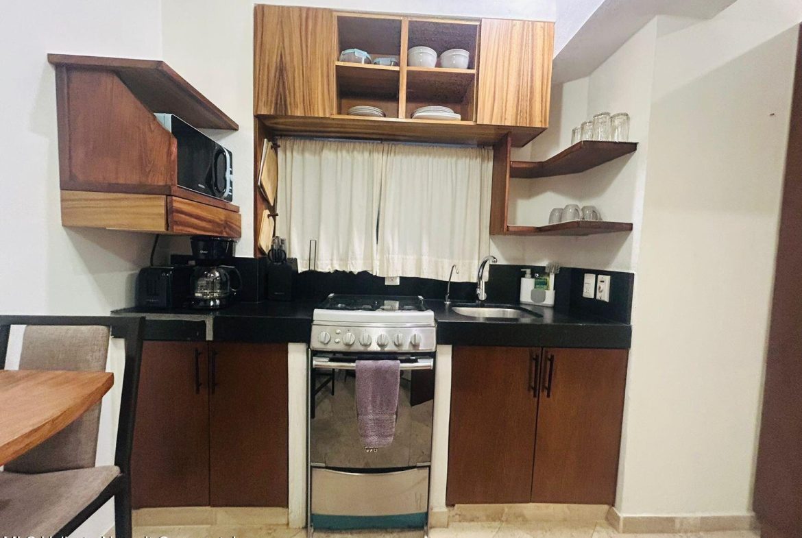 Inglis below Encantador condominio de una recamara cerca de la playaA solo 5 minutos a pie de la hermosa playa Los Camarones, este moderno condominio de una recamara ofrece la combinacion perfecta de comodidad, conveniencia y vida costera. Su diseno de concepto abierto incluye una luminosa y acogedora sala de estar con una elegante cocina.