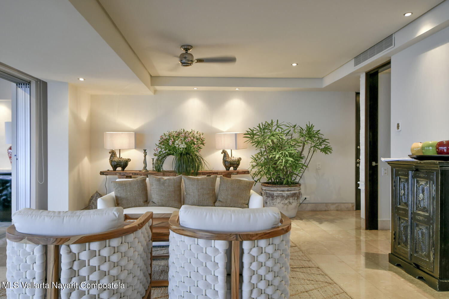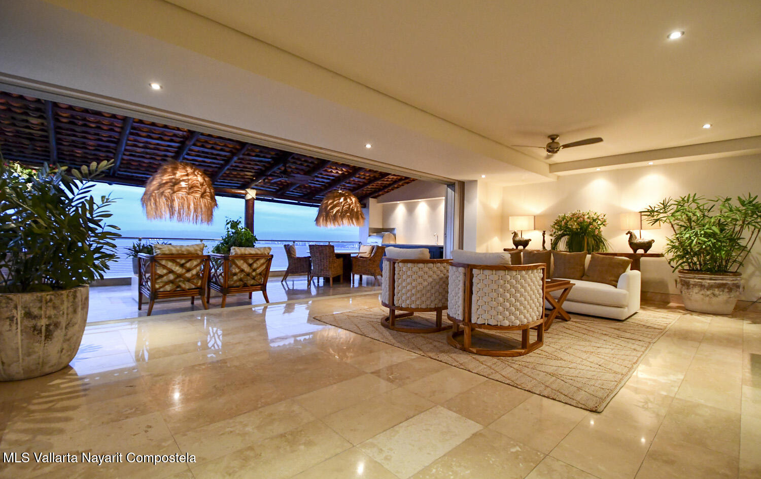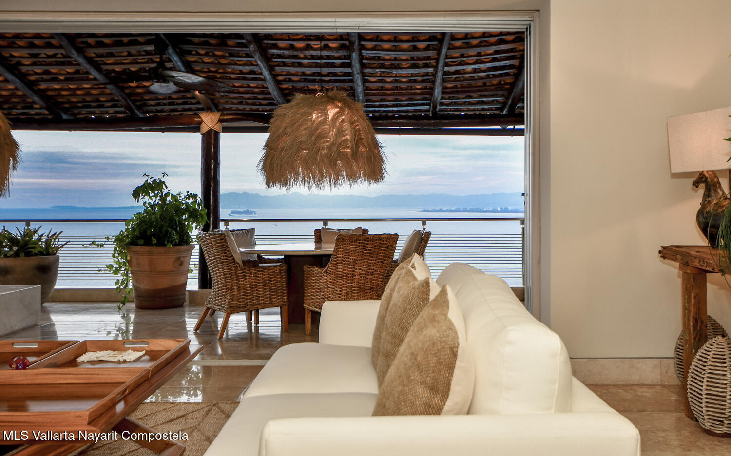 Tu refugio tropical, luminoso y fresco!Enclavada en las colinas de Amapas, esta lujosa residencia de 2 recamaras, mas estudio y habitacion flexible, y 2.5 banos, se extiende sobre mas de 3600 pies cuadrados de espacio fluido y acogedor, con impresionantes vistas a la bahia y al oceano desde Los Arcos hasta Punta Mita y el Casco Antiguo de Puerto Vallarta, el muelle de Los Muertos y la Zona Romantica, ideal para avistar ballenas de dia e impresionantes fuegos artificiales de noche.Recientemente renovada con colores mas claros y una nueva decoracion relajante, ofrece el entorno ideal para disfrutar de una vida tropical relajada y elegante.Ubicada en la soleada zona A del edificio, se bana de luz invernal (a diferencia de las unidades de la zona B, que tienen sombra) y su terraza de 15