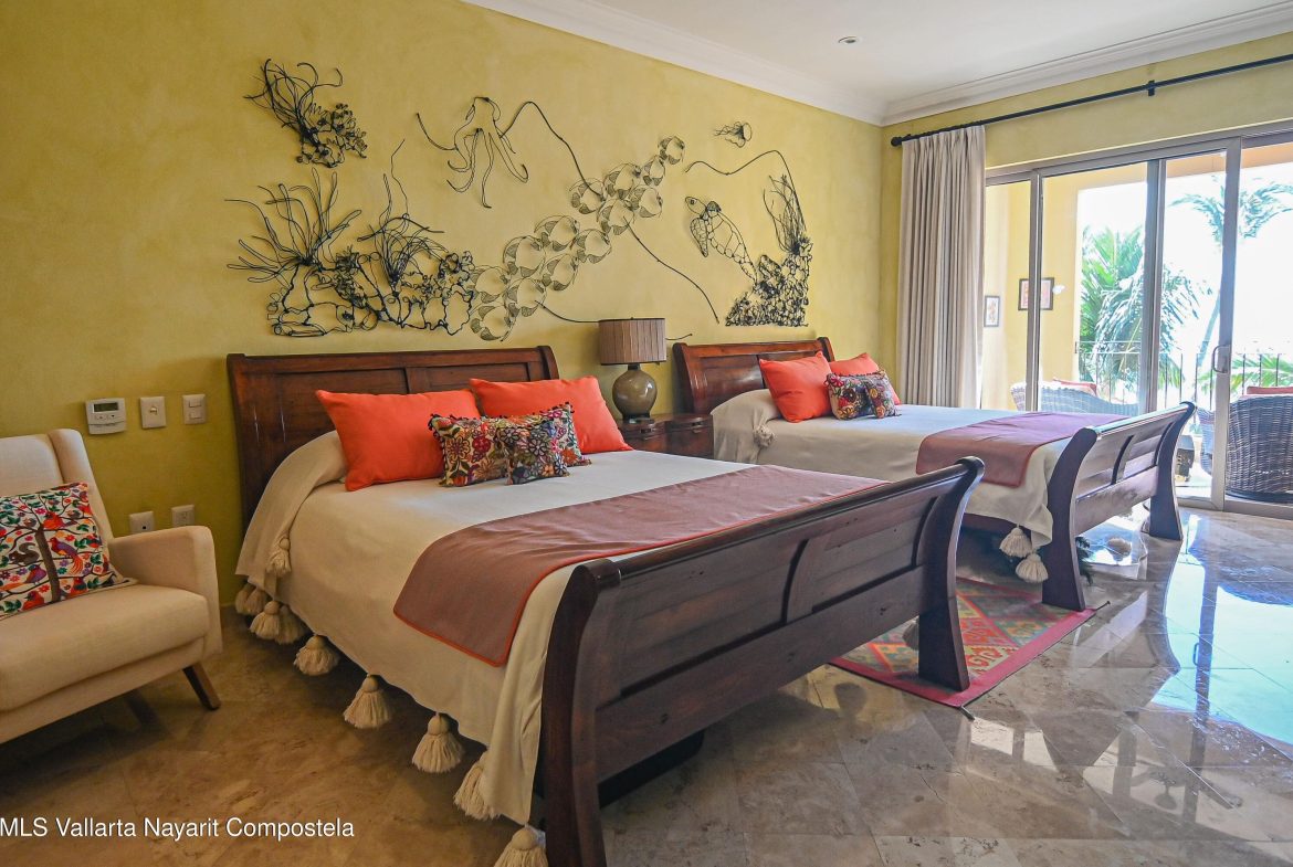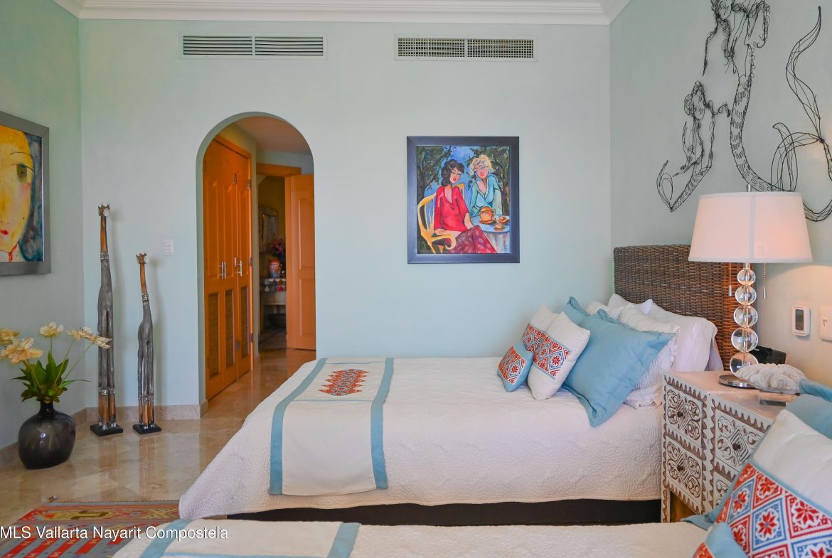 Villa La Estancia 3401 (Bucerias, Nayarit) Villa La Estancia 3401, where luxury meets paradise. This condo is located in an exclusive community, nestled between the lush Sierra Madre mountains and the pristine shores of Banderas Bay, which offers a unique and unforgettable living experience. With a wide variety of upscale properties, world-class amenities, and breathtaking surroundings, it’s no wonder why so many people are eager to call this place home.This luxury oceanfront 3 bedroom, 3.5 bathroom, 4050 square foot villa is furnished in the elegant Spanish Colonial and Hacienda style, and provides every amenity imaginable. The villa features a master bedroom with king sized bed and ensuite bathroom. The master spa bathroom offer you a whirlpool tub and pristine shower.